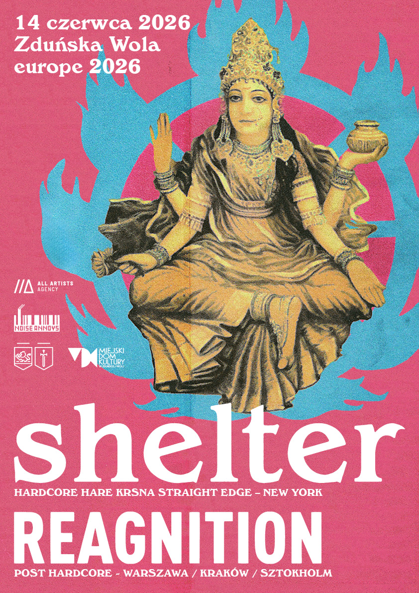 SHELTER – powracający po wielu latach na jedyny koncert w Polsce zespół, którego szerzej przedstawiać nie potrzeba. Ray Cappo i John Porcell, to osoby bez których trudno sobie wyobrazić historię klasycznego hardcora. To legendy tworzące przed laty kultowe Youth of Today i trzon nie mniej kultowego Sheltera – zespołu, który wstrząsnął hardcorowym światem i od ponad trzydziestu lat buduje i kształtuje scenę. Ich przystępna dla odbiorcy krysznaicka odmiana otwartego hardcora oraz nagrane płyty, z których część uważna jest za najlepsze w historii tego nurtu muzycznego, stawiają zespół w gronie weteranów i jednego z ważniejszych zespołów na światowej scenie hardcore punk. Żywa legenda na żywo na jednym koncercie w Polsce – w Zduńskiej Woli. HERE WE GO AGAIN!