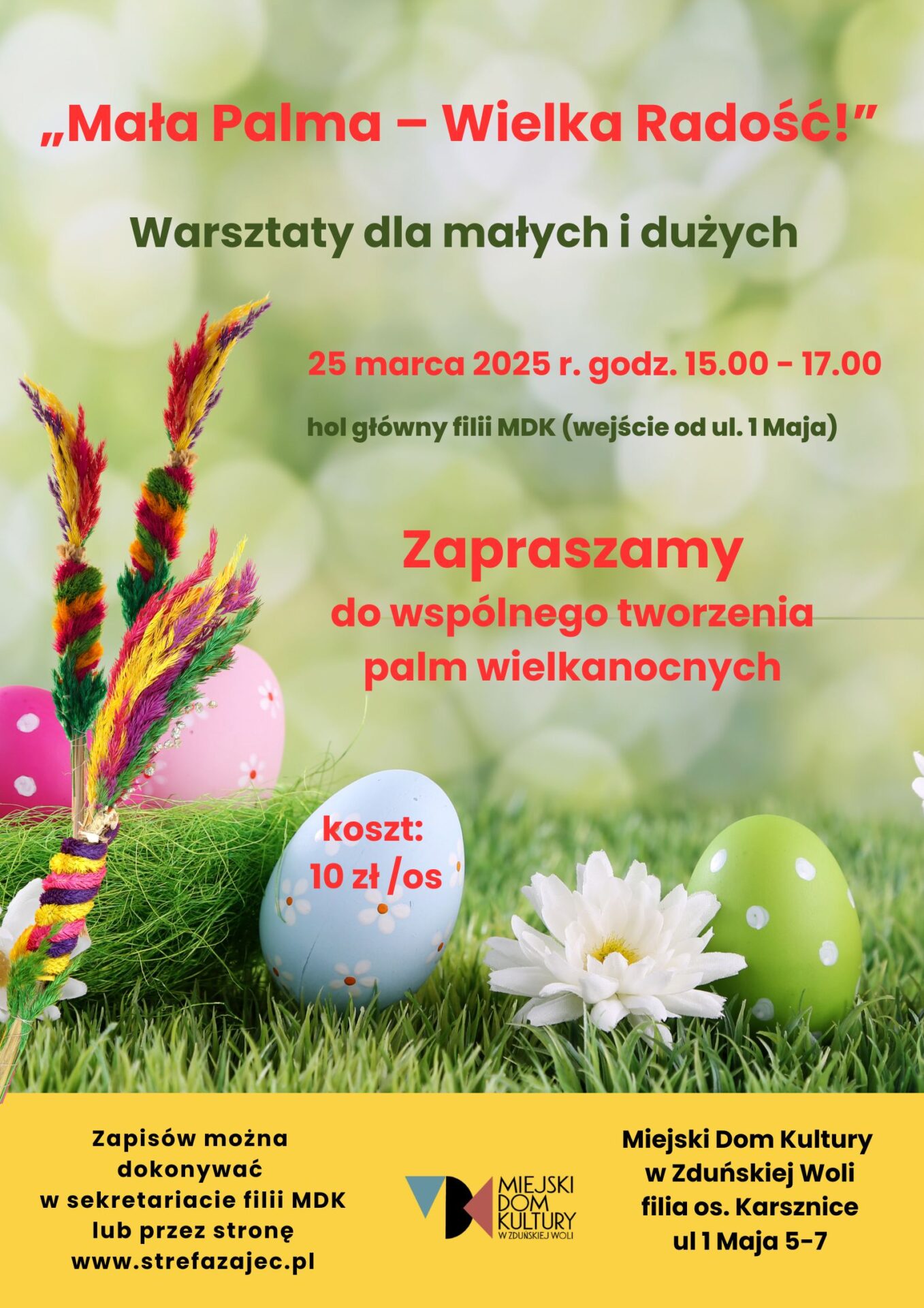 Serdecznie zapraszamy na warsztaty wielkanocne tworzenia palemek, podczas których wspólnie przygotujemy kolorowe, tradycyjne palmy wielkanocne.