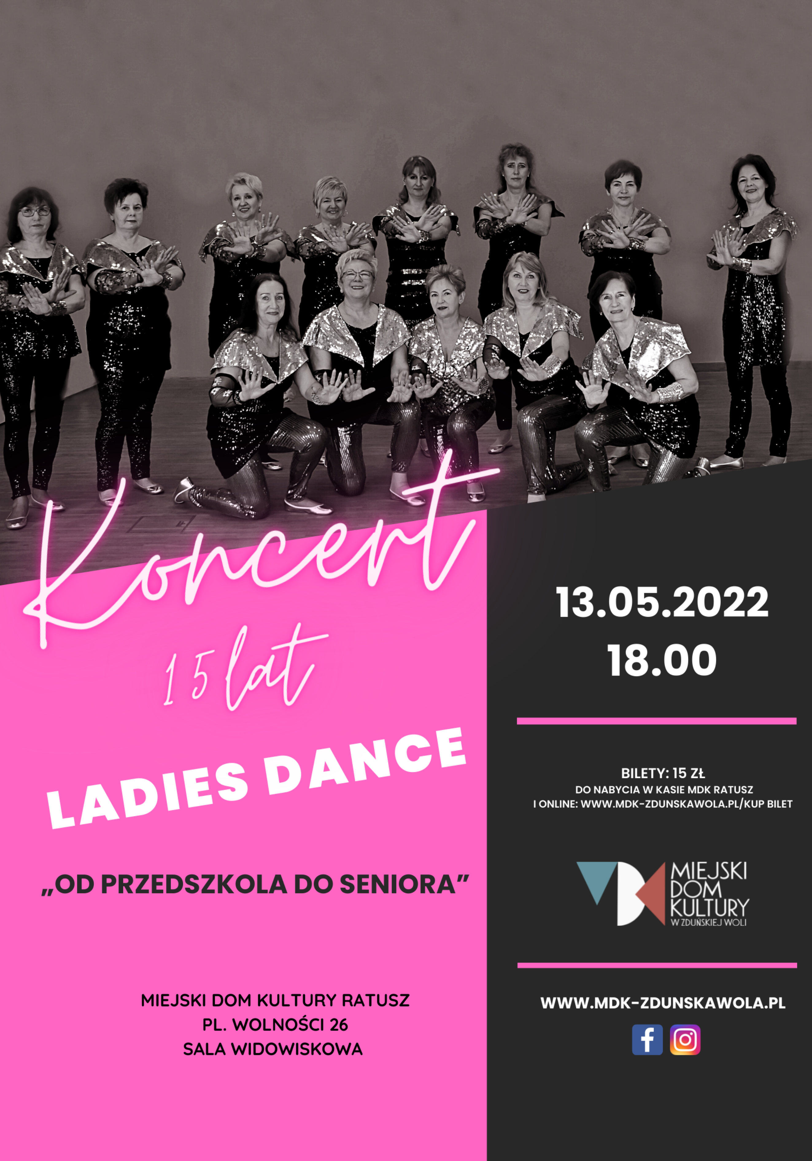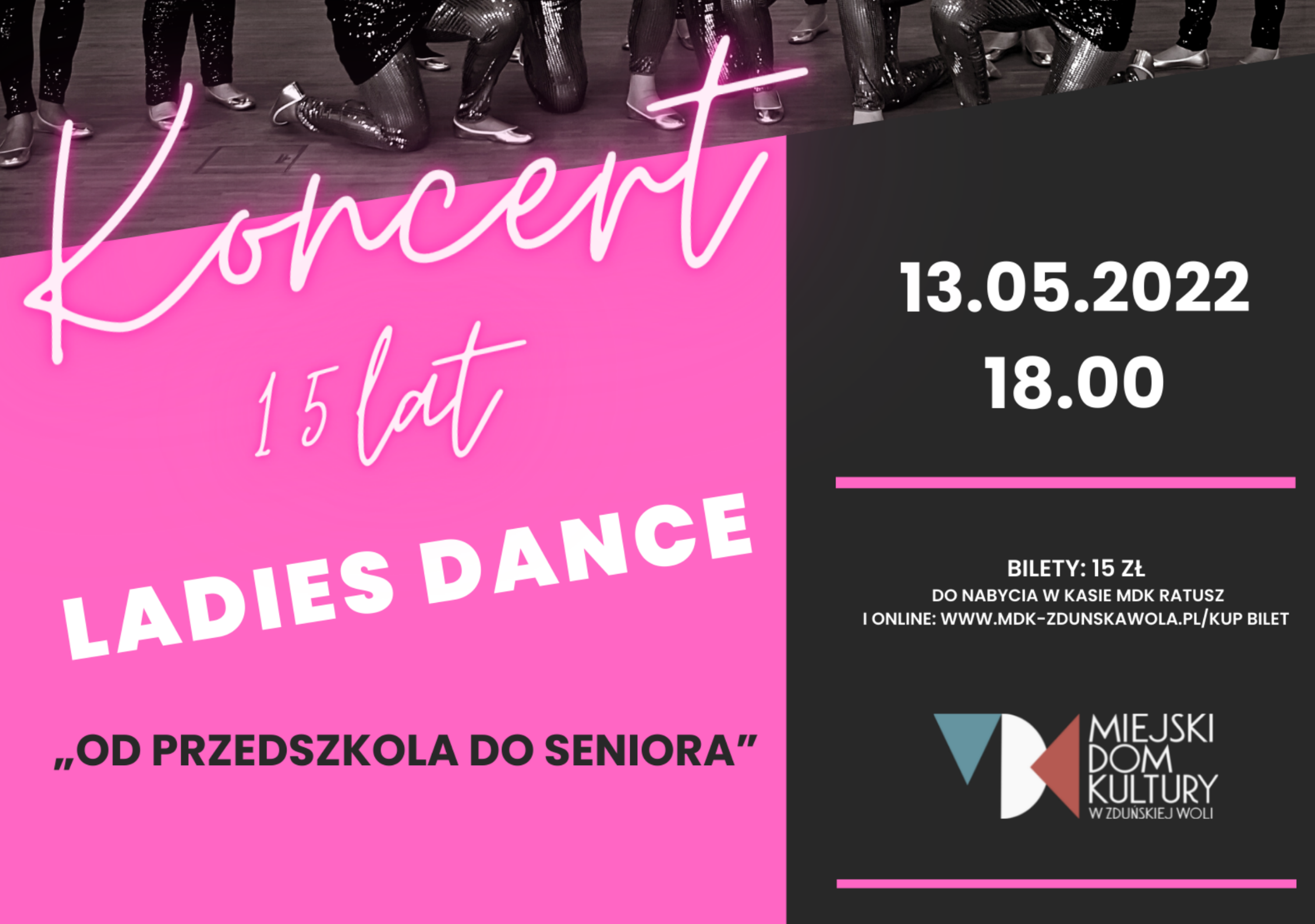 Koncert Formacji Tanecznej ,,Ladies Dance” pt. ,,Od przedszkola do seniora” odbędzie się 13 maja o godz. 18:00 w sali widowiskowej MDK Ratusz.