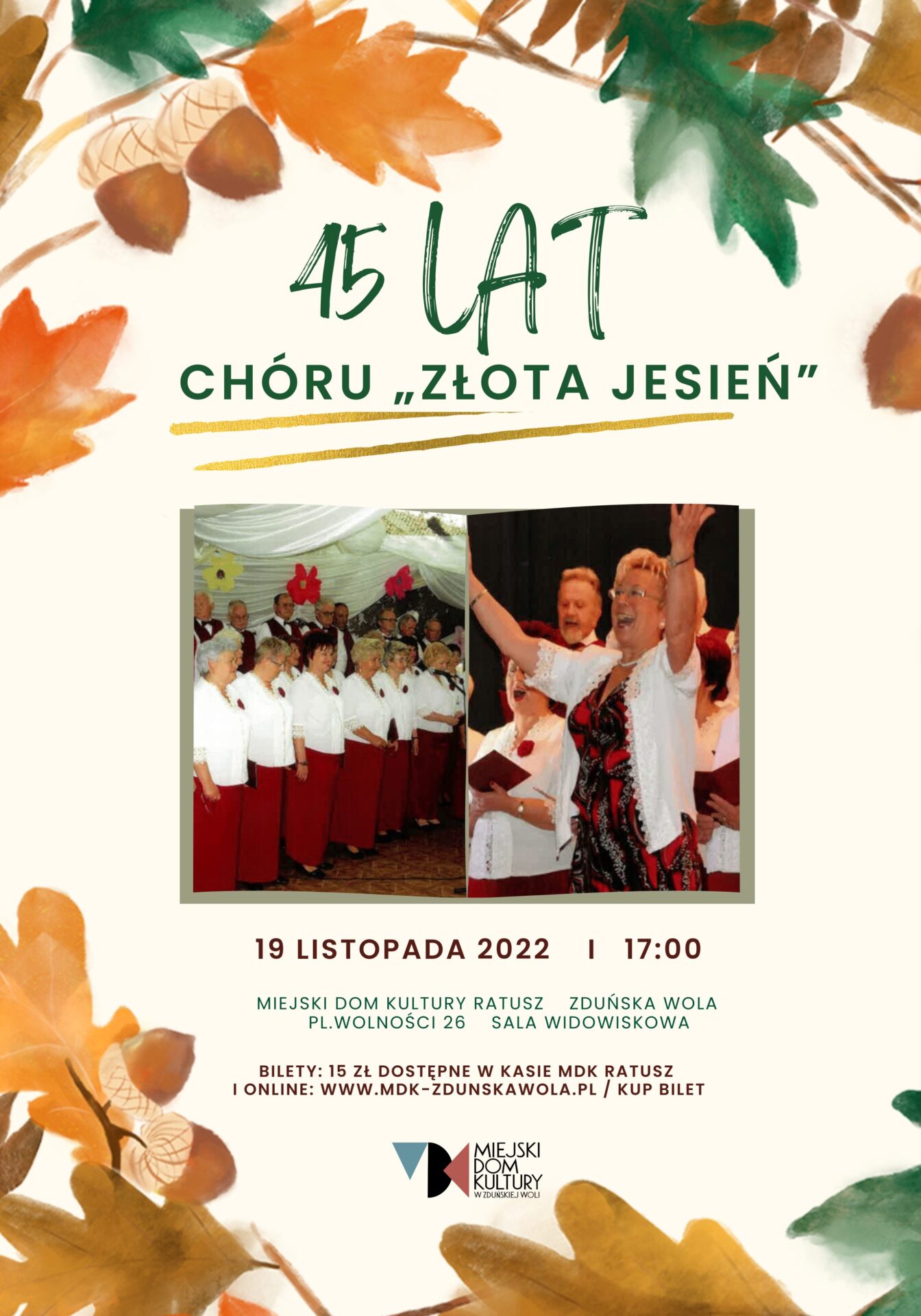 Koncert jubileuszowy z okazji 45-lecia działalności Chóru ,,Złota Jesień” odbędzie się 19 listopada o godzinie 17.00, sala widowiskowa MDK Ratusz.