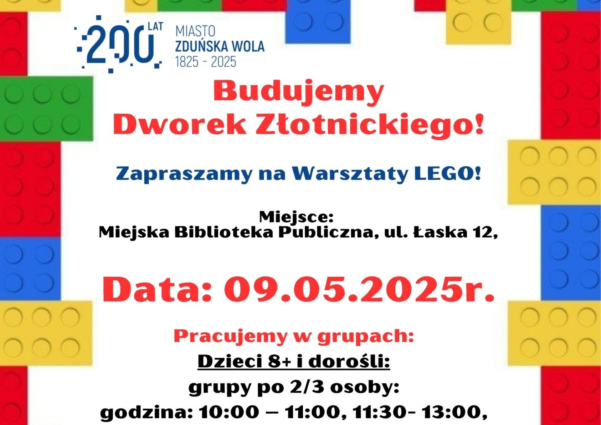 Z okazji 200-lecia naszego miasta odbędą się wyjątkowe warsztaty LEGO.