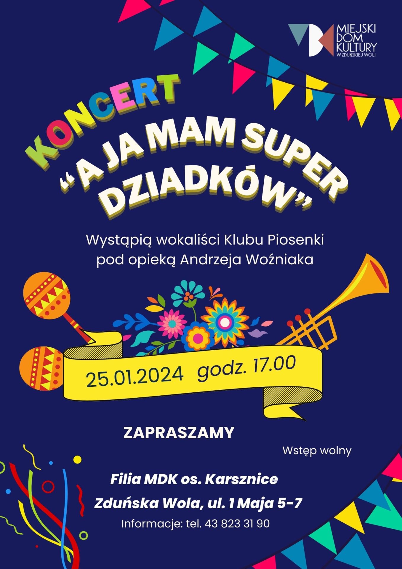 25 stycznia 2024 r., godzina 17.00, filia Miejskiego Domu Kultury w Zduńskiej Woli os. Karsznice, sala widowiskowa.