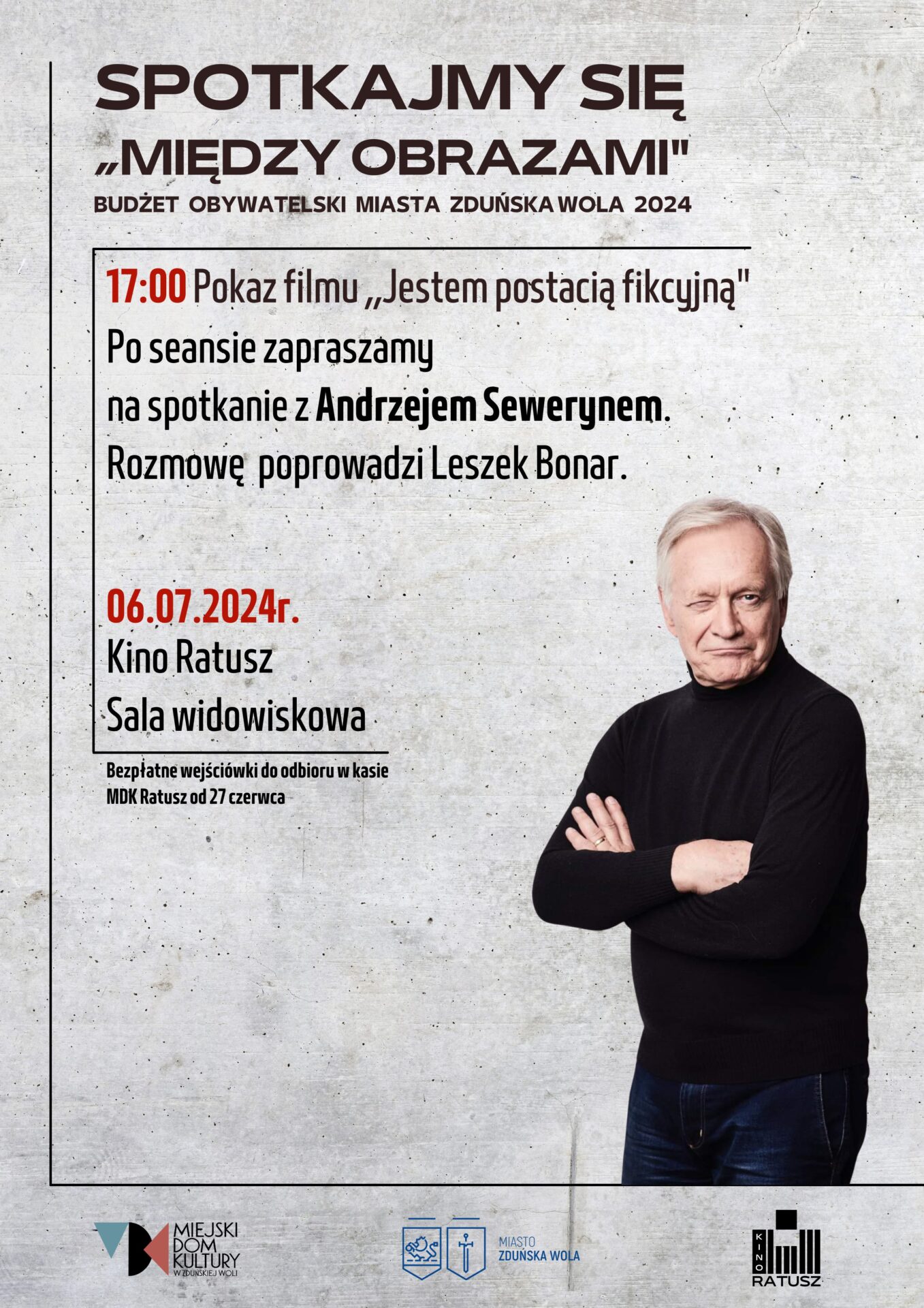 6 lipca w Kinie Ratusz gościć będziemy Andrzeja Seweryna i obejrzymy film ,,Jestem postacią fikcyjną”. Początek: godzina 17.00. Spotkanie poprowadzi dziennikarz Leszek Bonar.