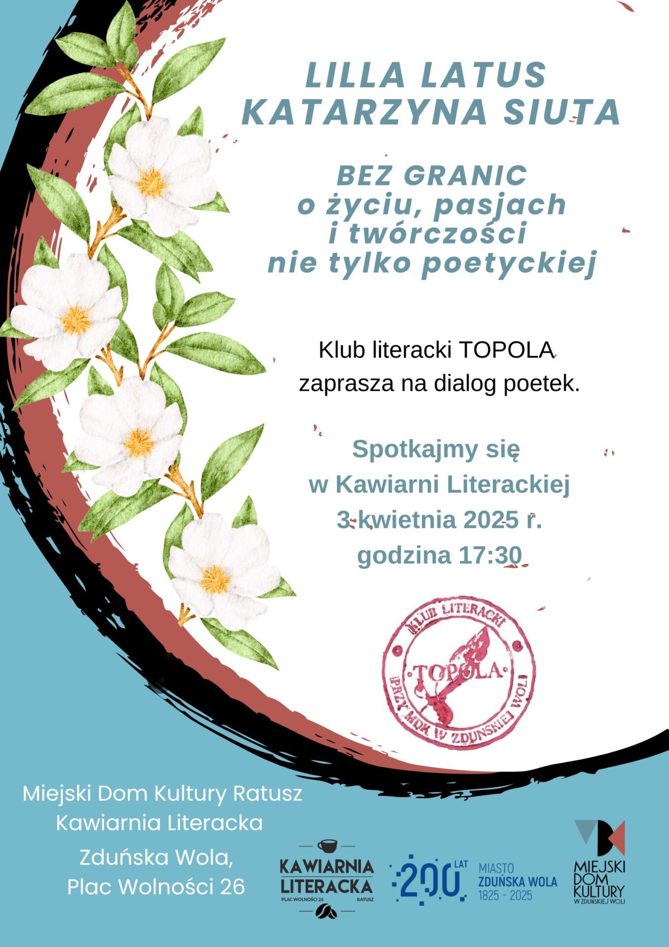 Kolejne spotkanie z cyklu organizowanych od dwóch lat w Kawiarni Literackiej przez Klub Literacki Topola odbędzie się 3 kwietnia (czwartek) o godzinie 17.30.