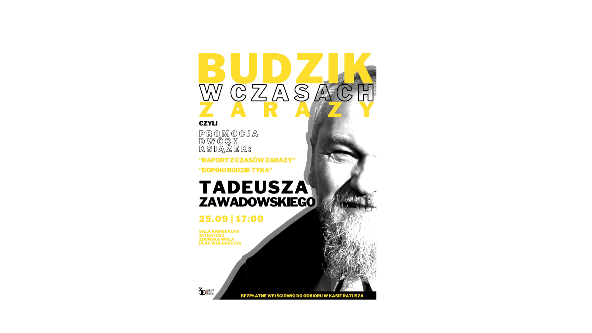 BUDZIK W CZASACH ZARAZY, czyli promocja dwóch najnowszych książek Tadeusza Zawadowskiego odbędzie się 25 września o godzinie 17.00 w sali kameralnej Ratusza.
