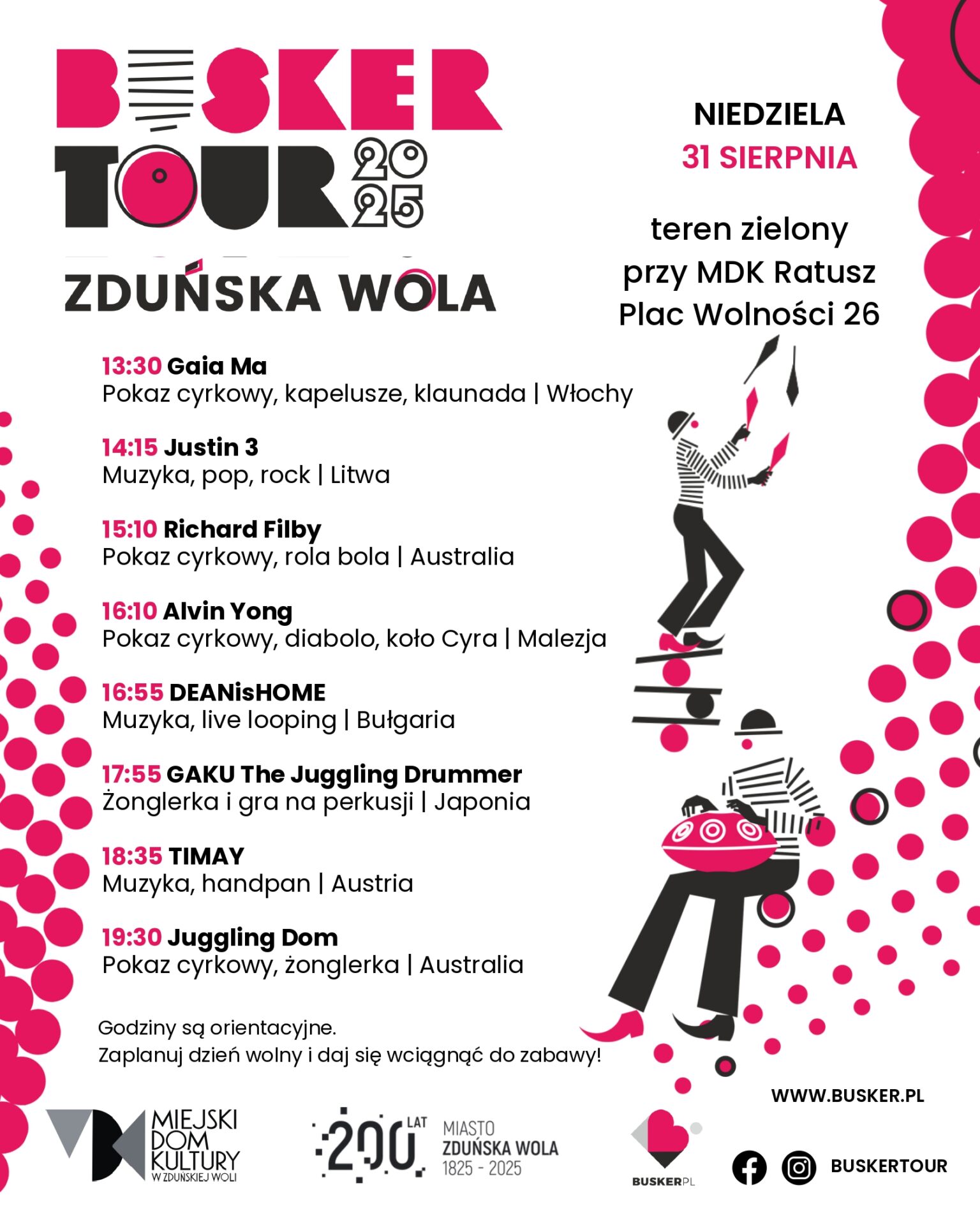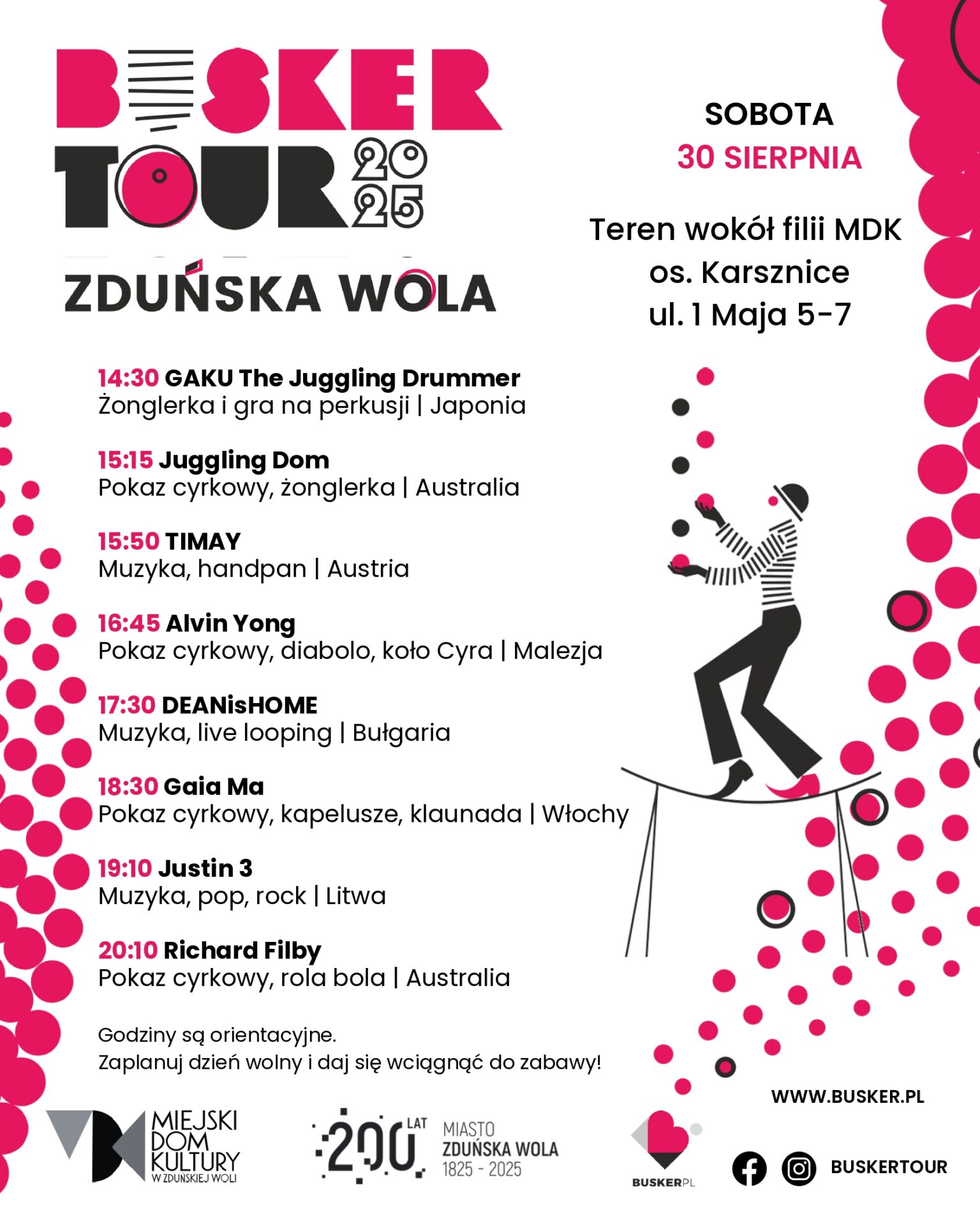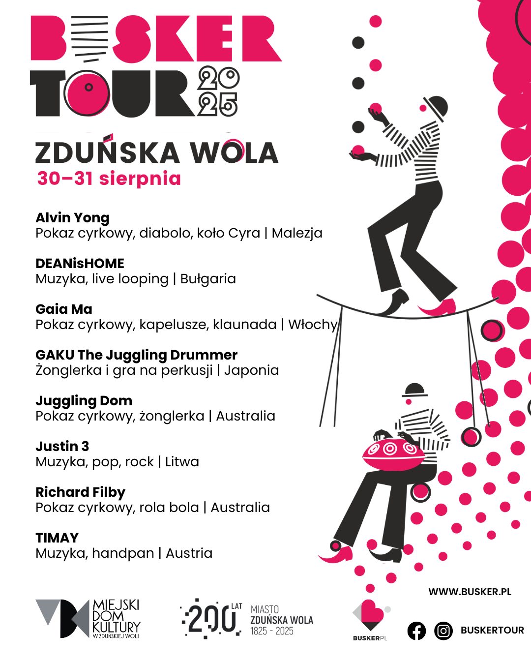 Line-up festiwalu Busker Tour 2025 w Zduńskiej Woli