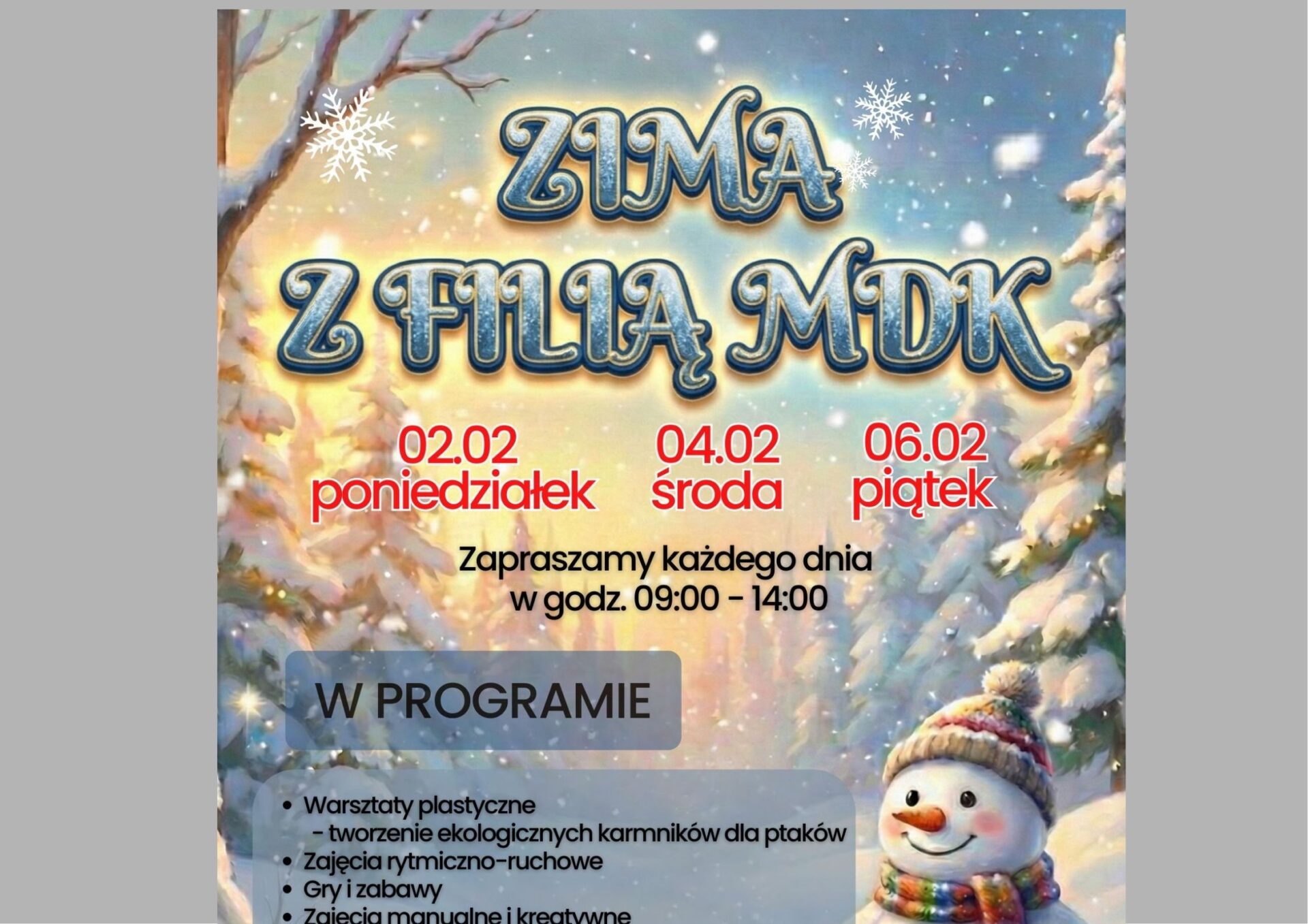 Pełne radości i kreatywnej zabawy ferie zimowe! Takie na pewno będą warsztaty i zajęcia w Filii MDK os. Karsznice.