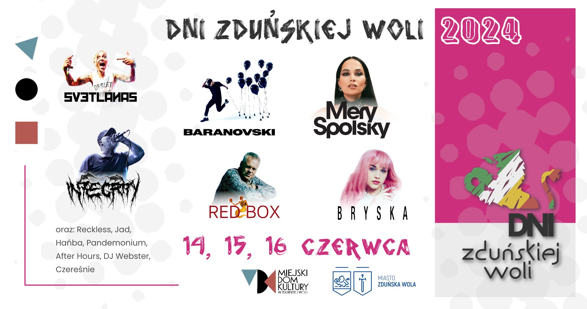 – Niedzielę 16 czerwca również rozpoczynamy strefą różnych animacji dla dzieci o godzinie 15.00. O godzinie 16.00 na scenie również propozycja muzyczna dla dzieci – zespół CZEREŚNIE, który proponuje muzykę dla dzieci z bardzo ciekawymi, edukacyjnymi tekstami. O godzinie 19.00 jedna z topowych wykonawczyń, jeżeli chodzi o muzykę popową, młodzieżową, klubową – BRYSKA, a o 21.00 sceną zawładnie MERY SPOLSKY. Ten koncert zakończy Dni Zduńskiej Woli 2024. To będzie doskonała okazja do integracji, do zabawy, bo o to przecież w Dniach Zduńskiej Woli, żeby mieszkańcy byli razem i wspólnie się ze sobą bawili – zapraszał dyrektor MDK.