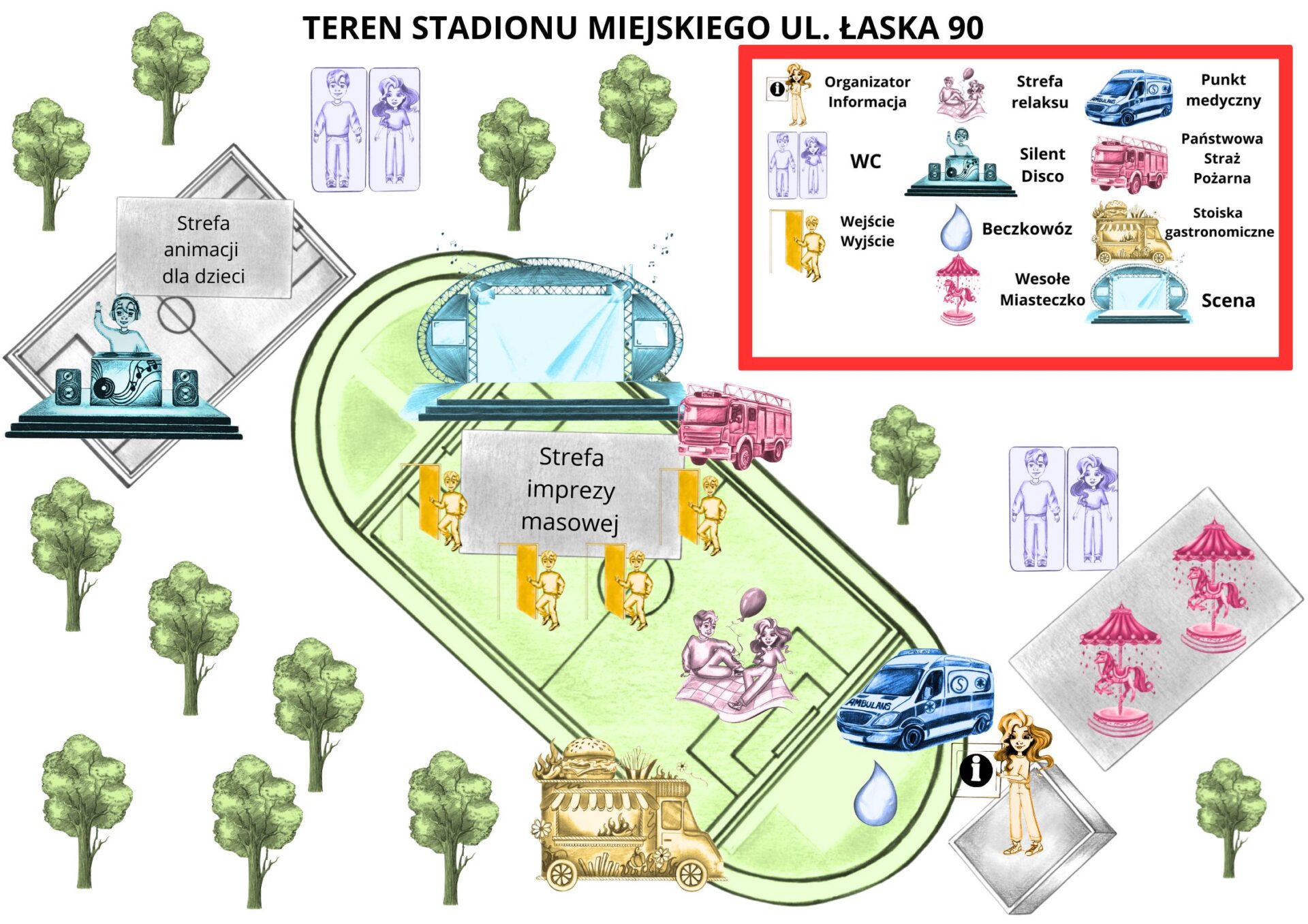 MAPA STADIONU, UL. ŁASKA 90