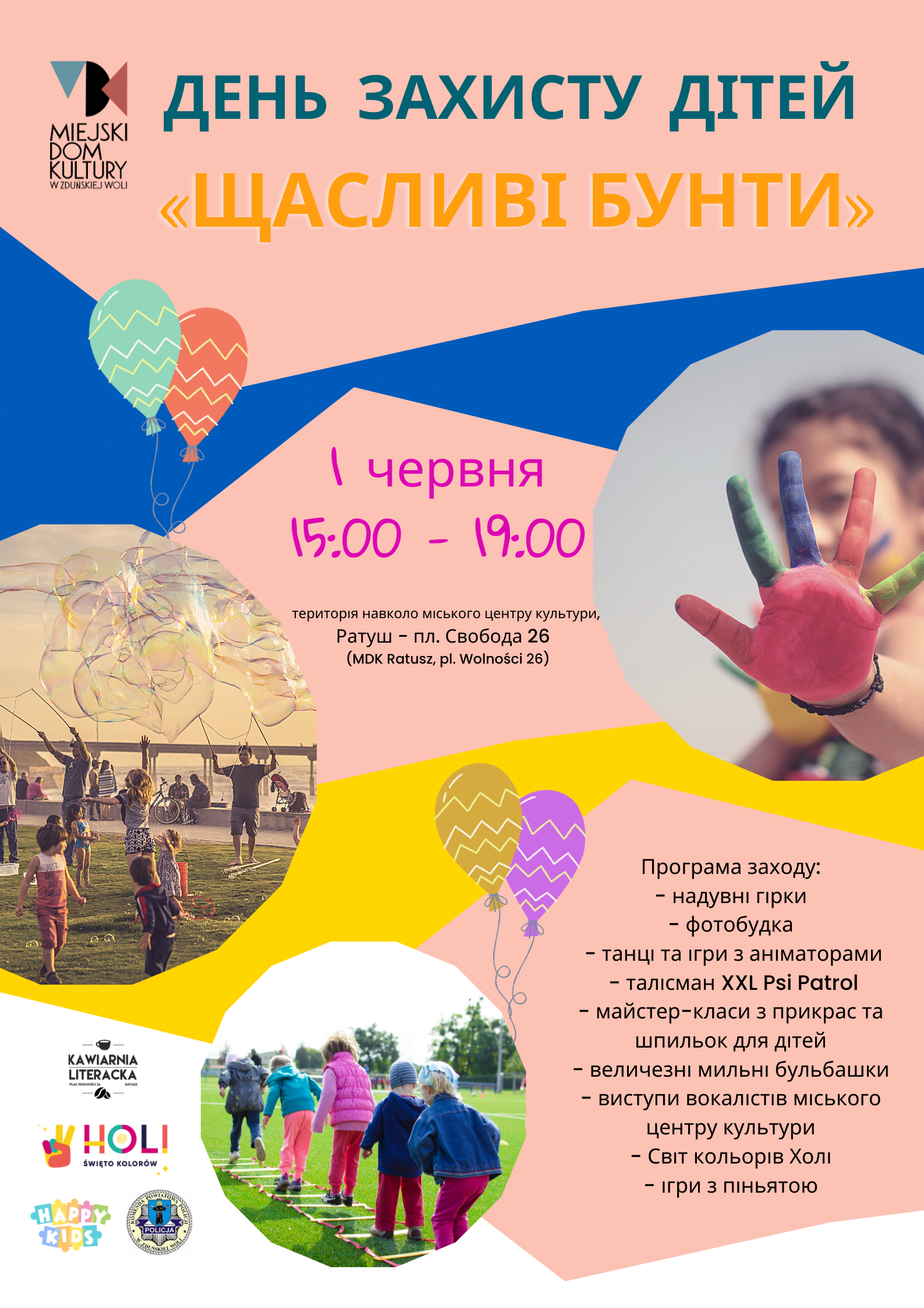 Запрошуємо Вас та Ваші родини приєднатися до веселощів 1 червня з 15.00 до 19.00 MDK Ratusz, пл. Свобода 26.