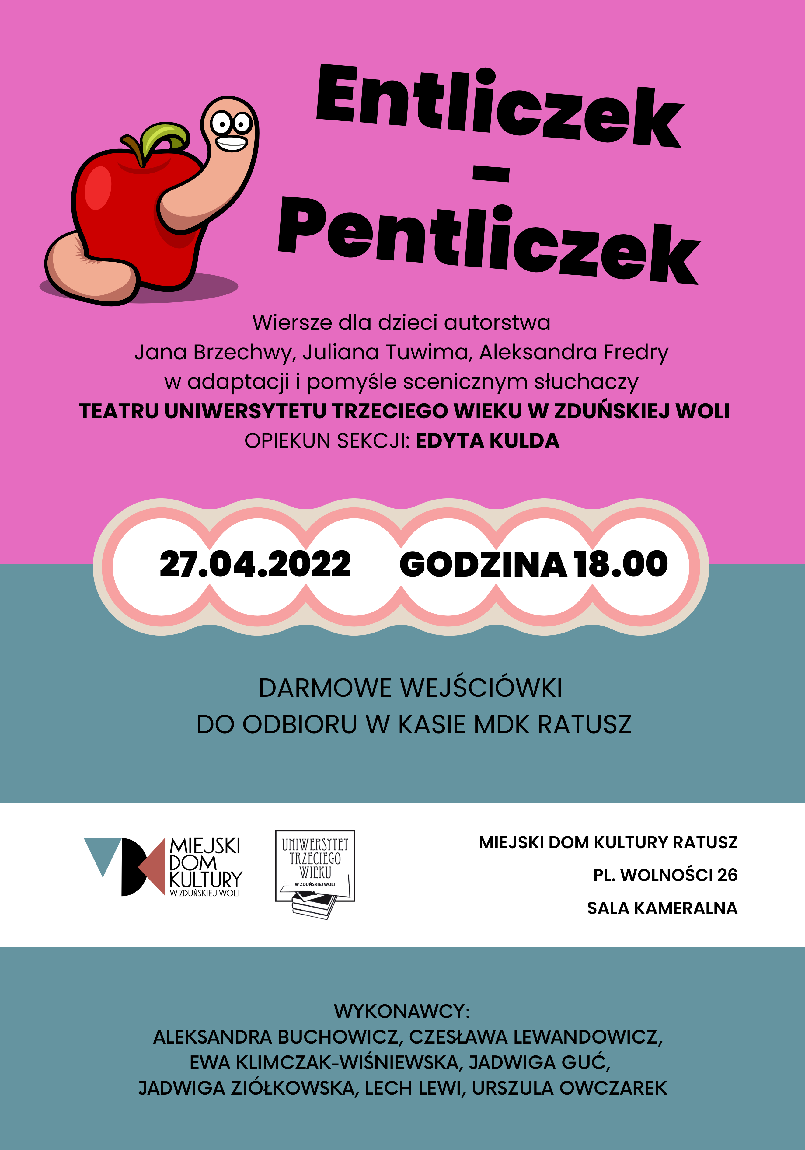 Spektakl ,,Entliczek-Pentliczek” odbędzie się 27 kwietnia o godzinie 18.00 w sali kameralnej MDK Ratusz.