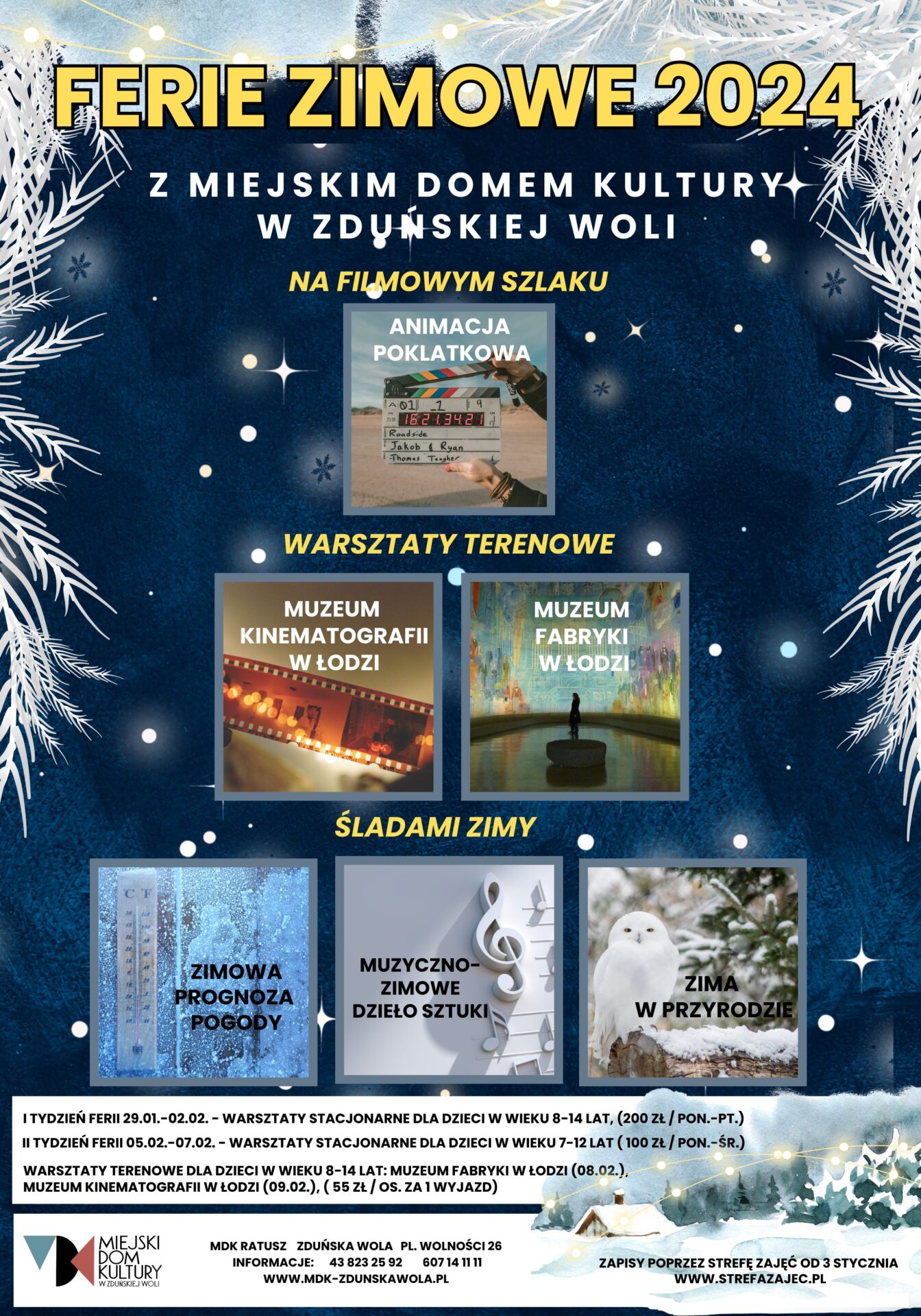 Link do zapisów na ferie tutaj: https://www.strefazajec.pl/company/MDK-Zdunska-Wola-id1164.html