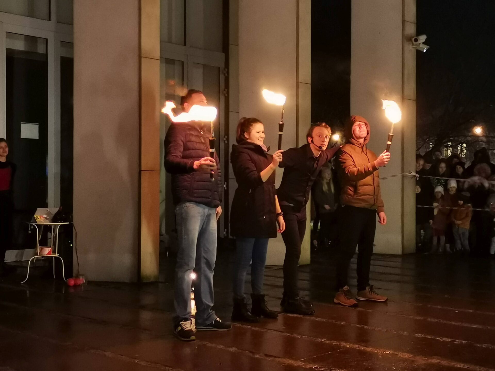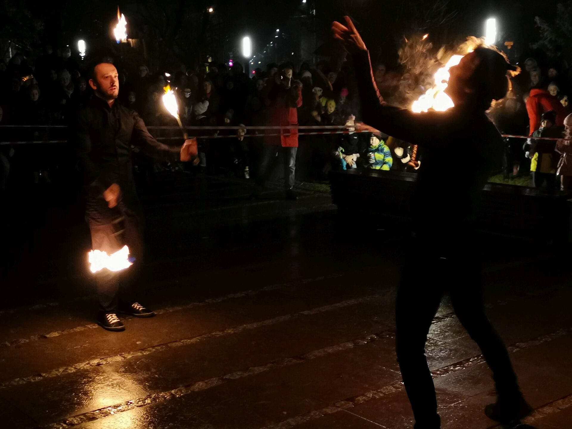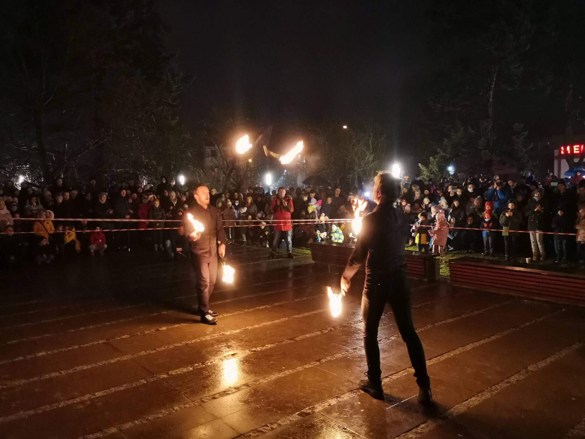 Czworo artystów Fundacji ,,Sztukmistrze” z Lublina rozgrzało zduńskowolską publiczność swoim zadziwiającym fireshow.