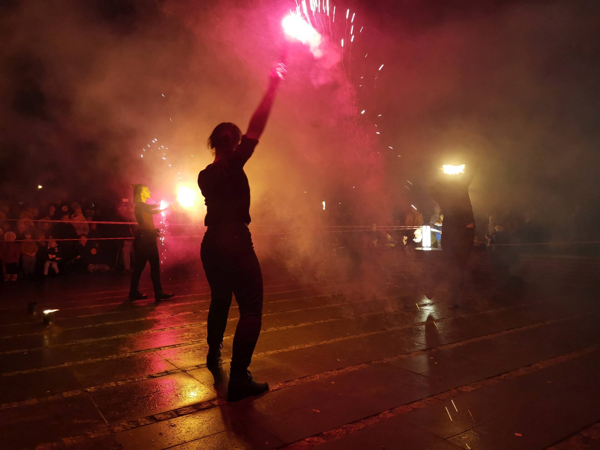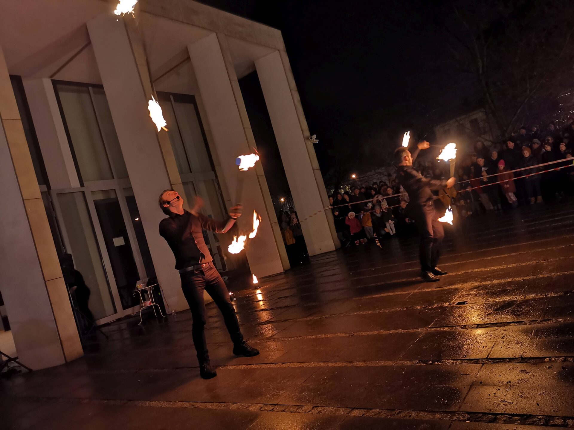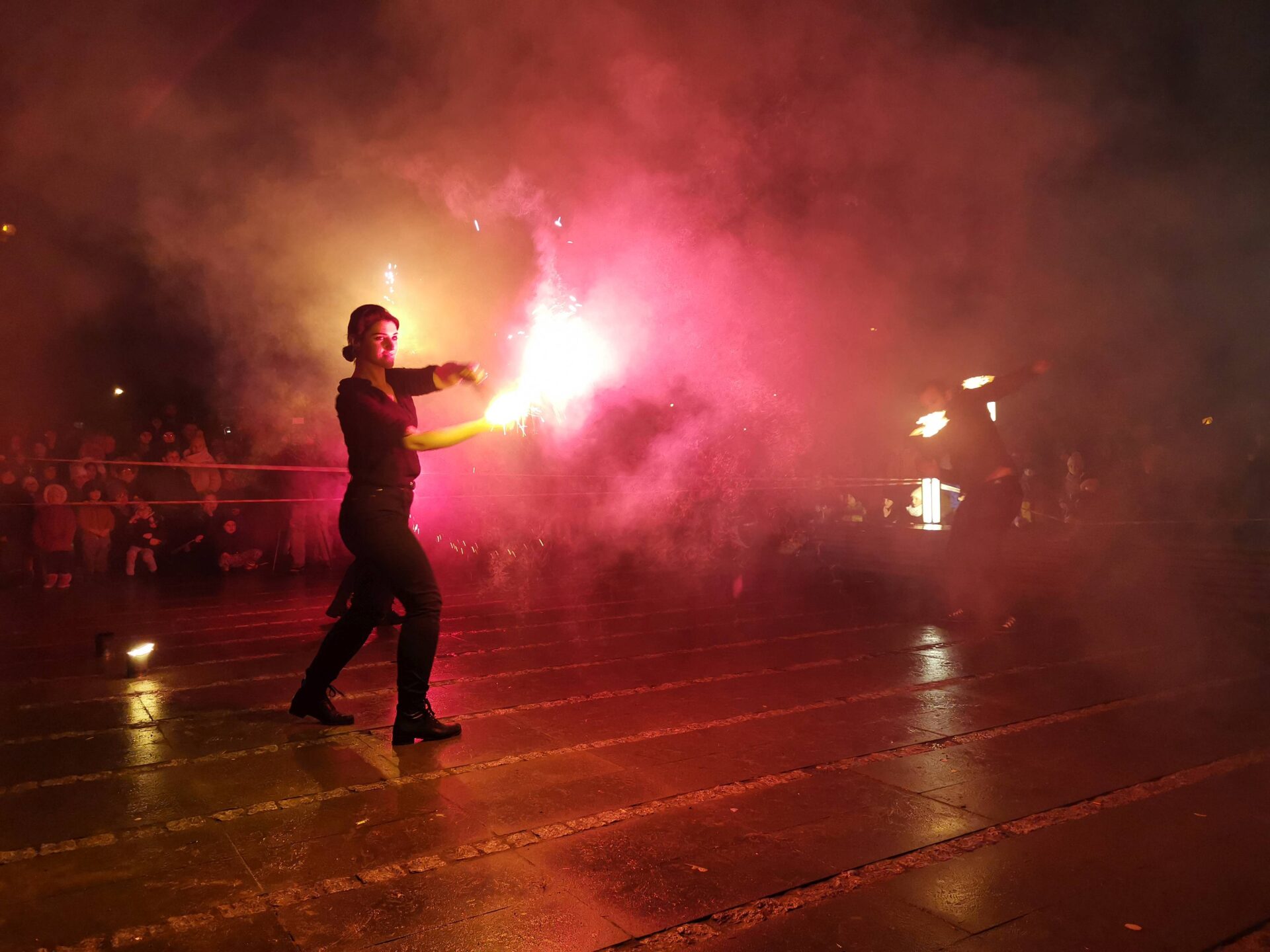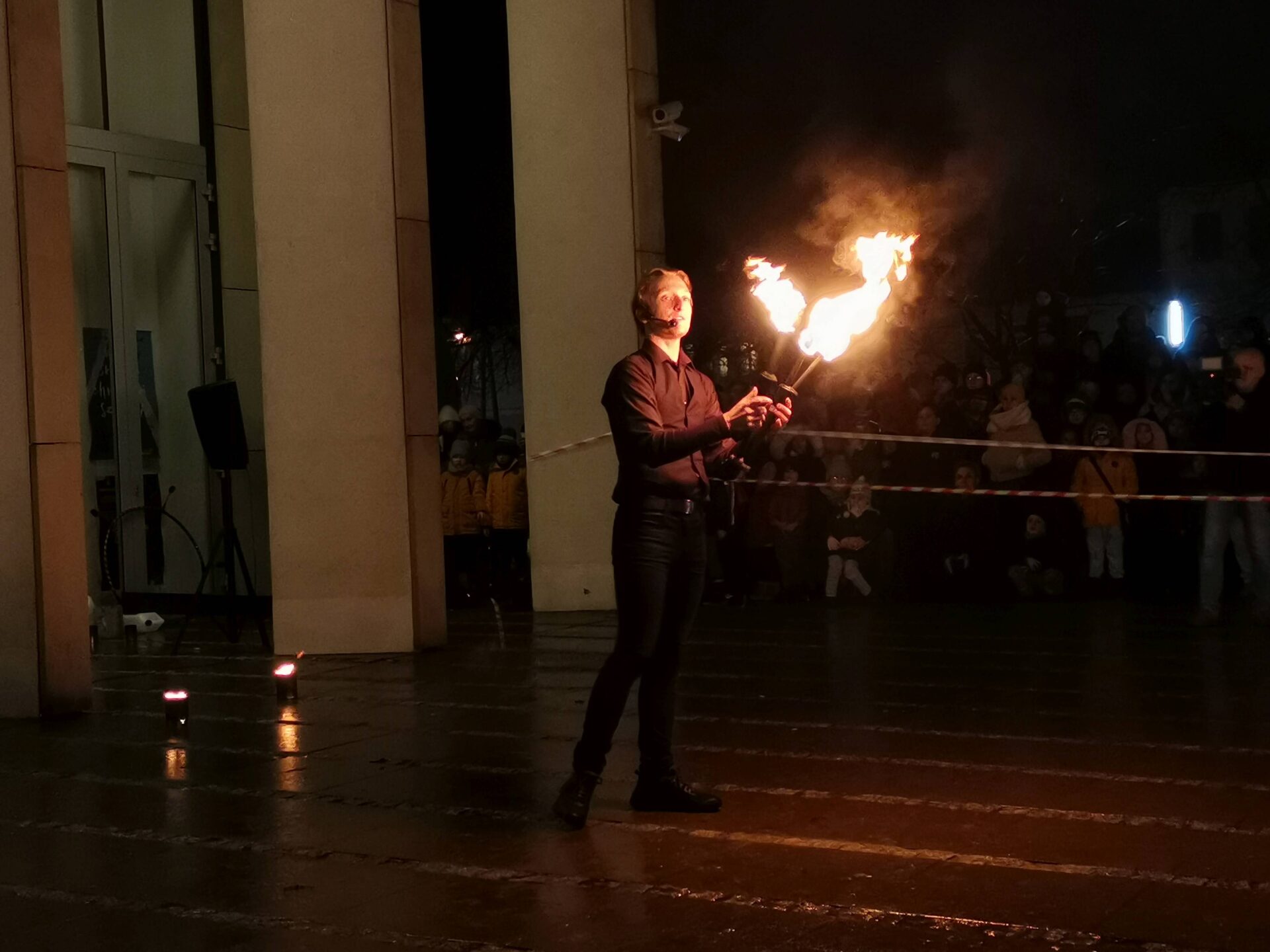 Czworo artystów Fundacji ,,Sztukmistrze” z Lublina rozgrzało zduńskowolską publiczność swoim zadziwiającym fireshow.