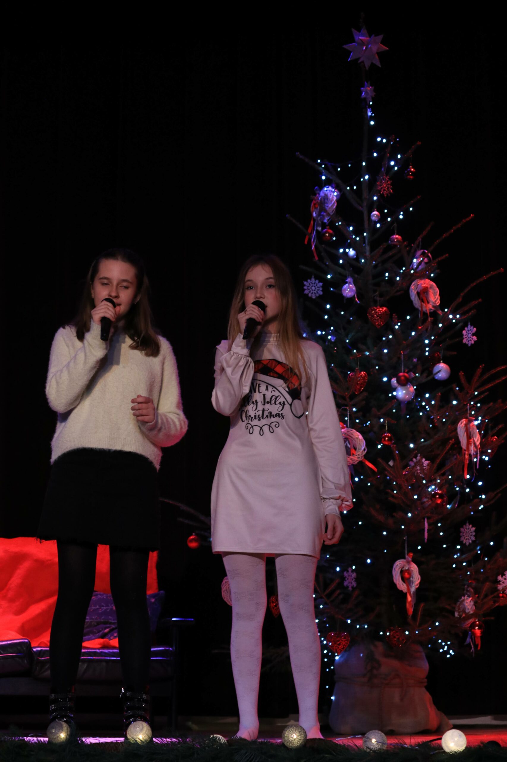 Usłyszeliśmy uwielbiane kolędy ,,Lulajże Jezuniu”, ,,W żłobie leży”, ,,Cicha noc” oraz mniej znane: ,,Szarą kolędę” i ,,A tu już święta”.