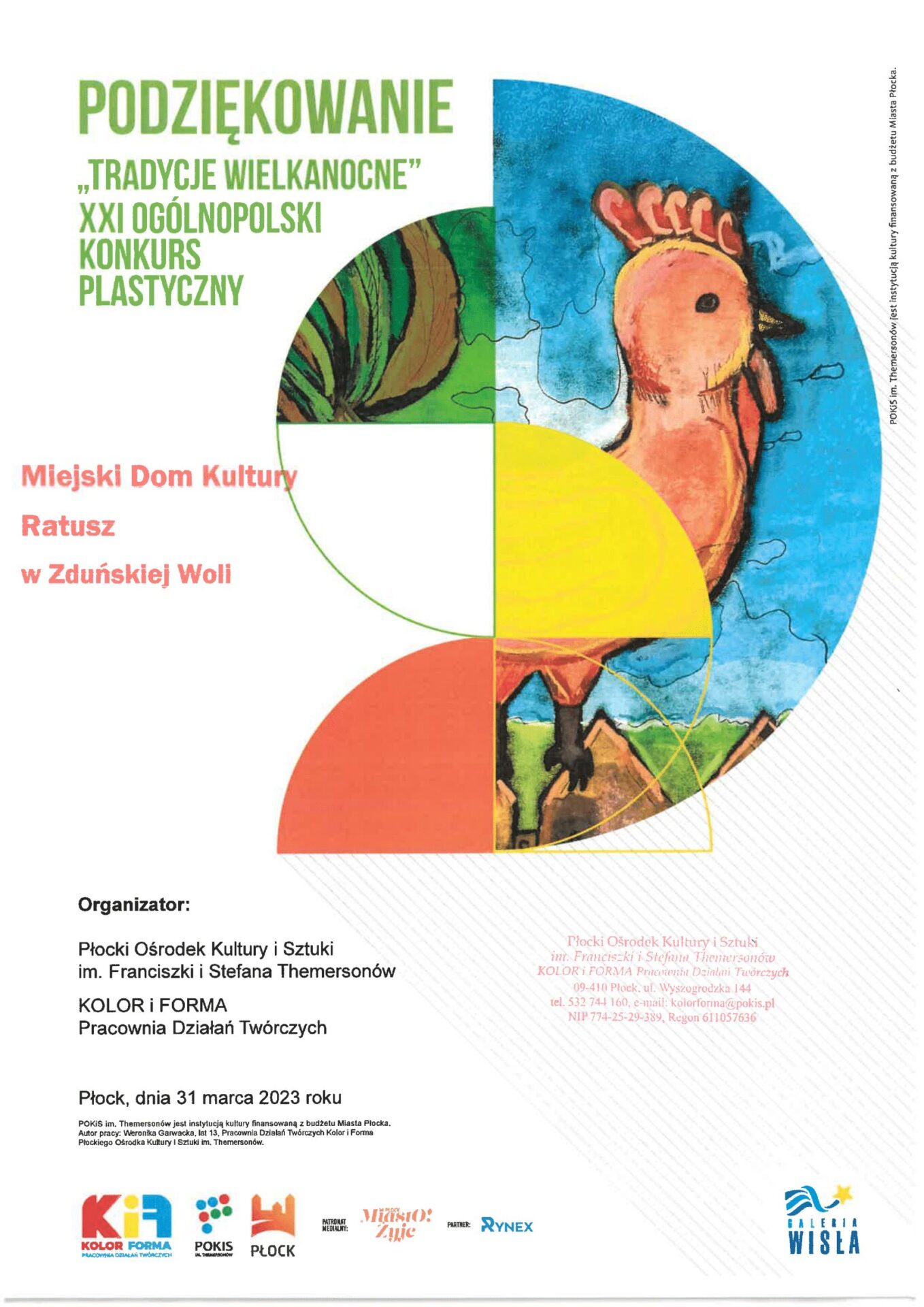 Uczestnicy wykazali się znajomością tradycji wielkanocnych, a także wielu różnorodnych technik plastycznych. Najczęstszym tematem prac konkursowych były chwile spędzone razem podczas przygotowań i świąt: wspólne gotowanie, święcenie pokarmów czy uroczyste śniadanie. Konkurs zorganizował Płocki Ośrodek Kultury i Sztuki im. Franciszki i Stefana Themersonów.