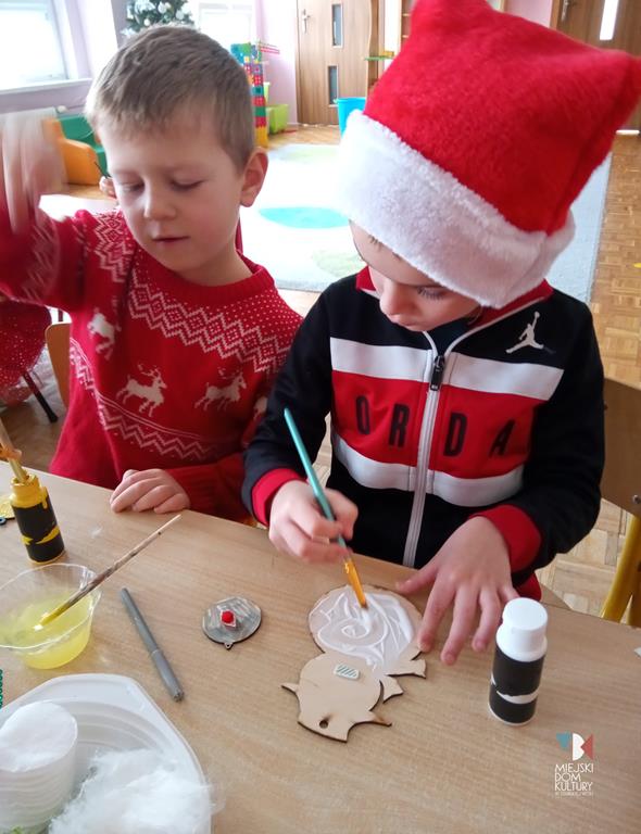 Wszyscy razem wspólnie wykonali ozdoby choinkowe.