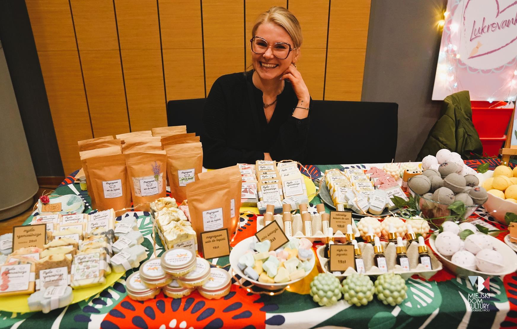Podobnie, jak w poprzednich latach można było kupić prawdziwe cudeńka wykonane wieloma technikami: dziergane na szydełku i na drutach, ze sznurka, malowane, filcowane, rzeźbione, prace florystyczne, wycinane, itp. Były ręcznie wykonane dekoracje, torby, poduszki w różnych kształtach, zabawki, chusty, serwety, obrusy. Można było kupić biżuterię wykonaną ze stali szlachetnej i naturalnych kamieni, ozdoby z makramy i dekoracje ze sznurka, lampy ze starych przedmiotów, świece sojowe, lawendowe woreczki, miody, naturalne kosmetyki, wielorazowe waciki i woreczki. Nie zabrakło oczywiście typowo świątecznych ozdób, stroików, mikołajów, śnieżynek, dekoracji z szyszek i na plastrach z drewna, wianków, choinek, bombek i personalizowanych pierników.