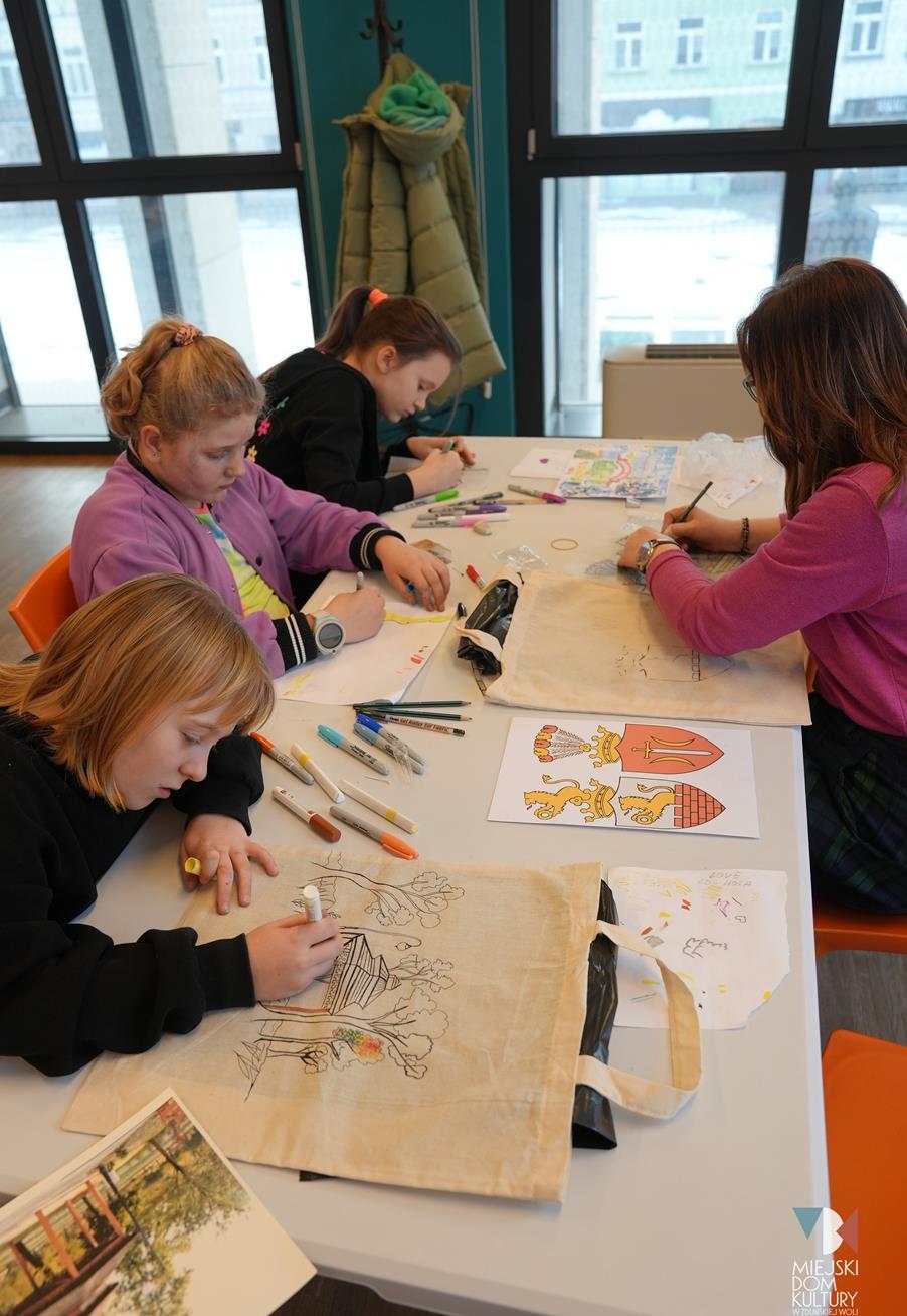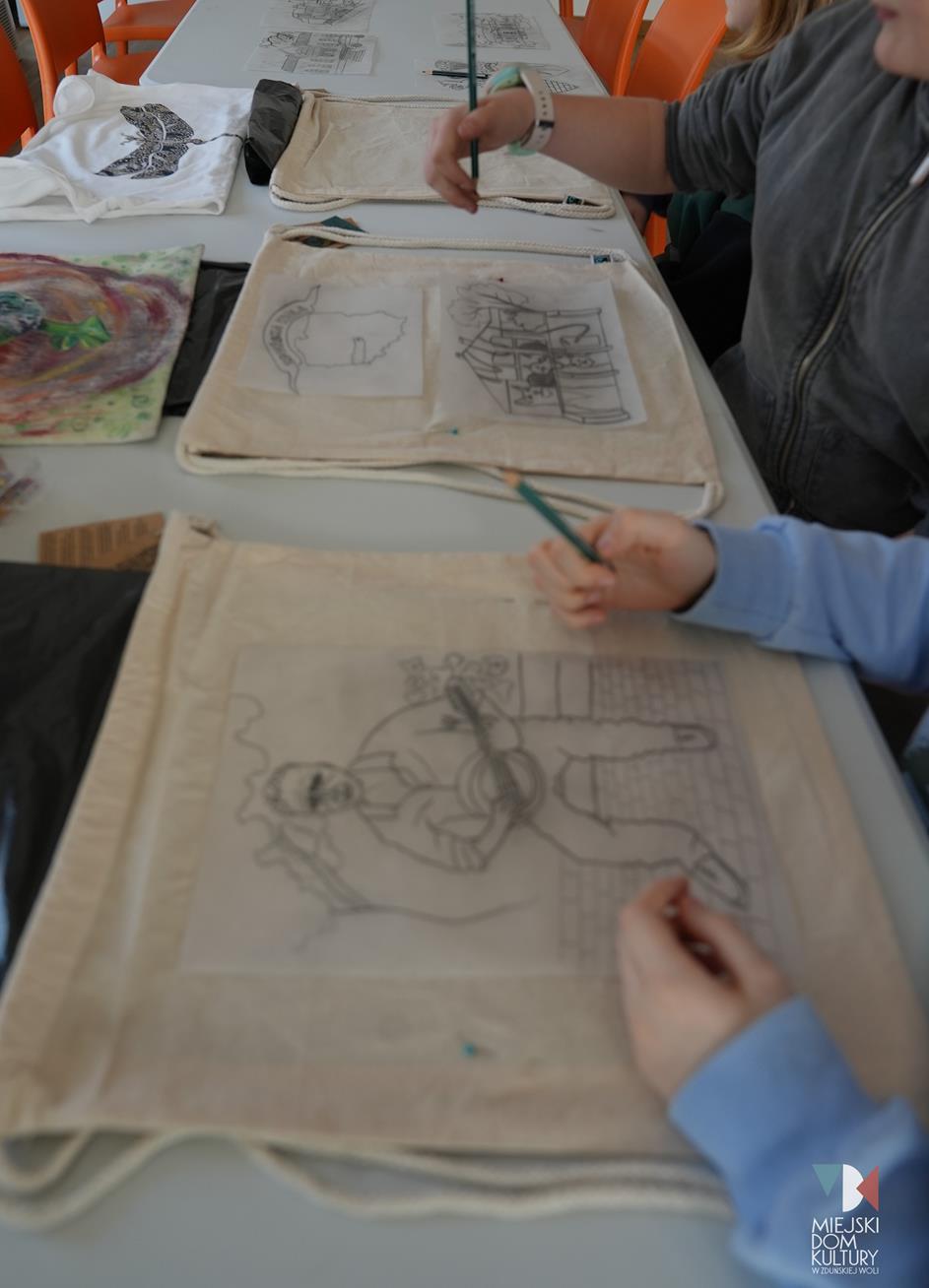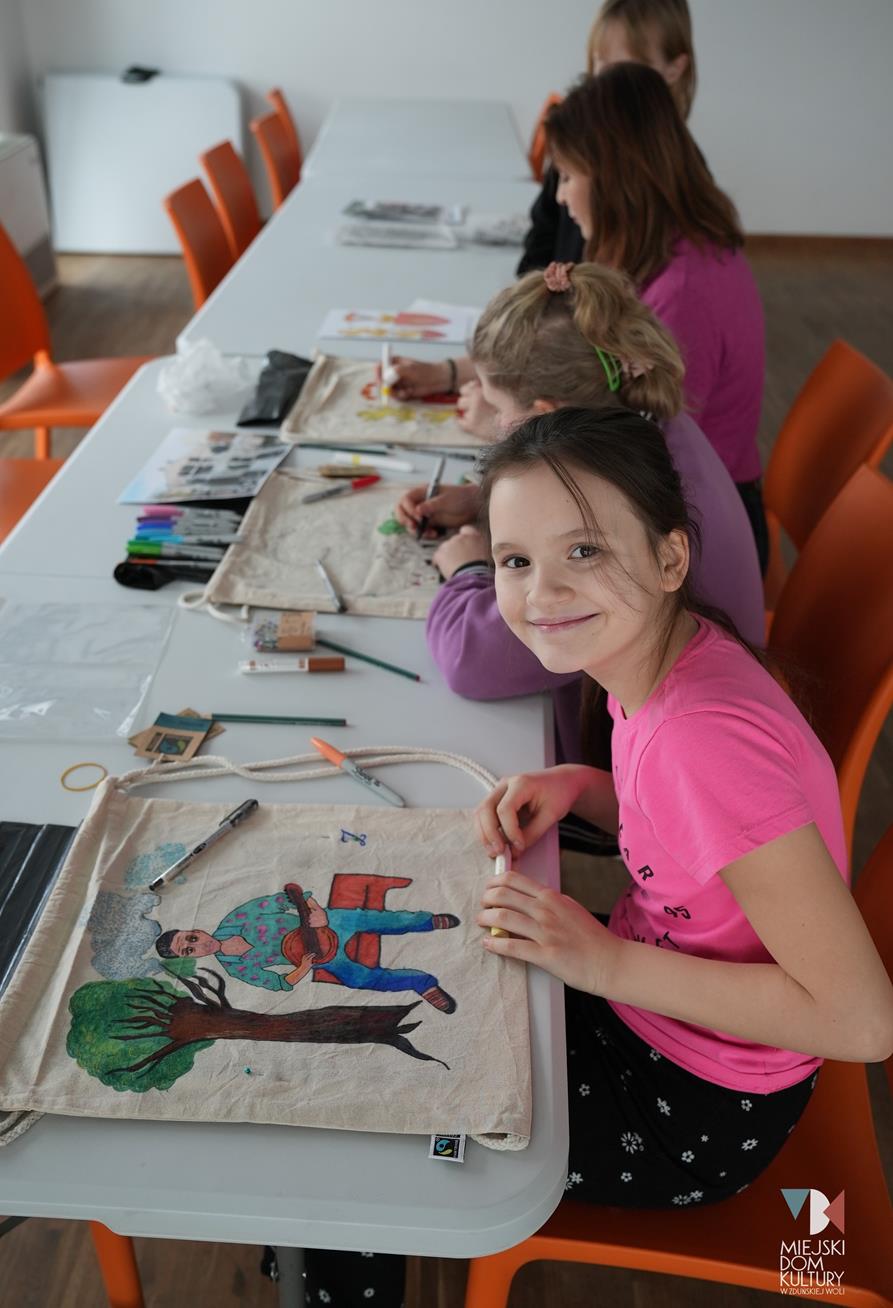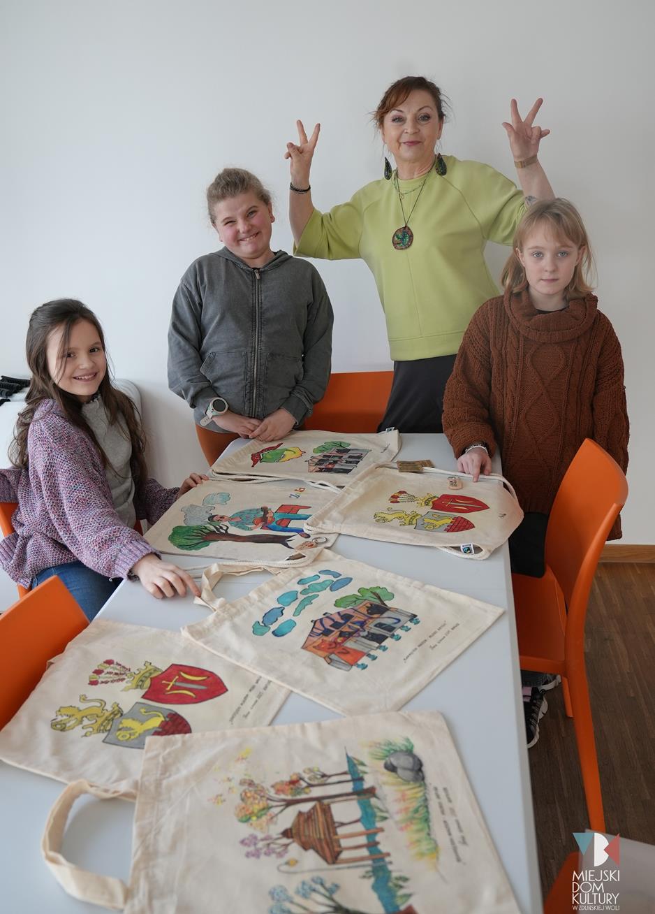 Podczas kreatywnych zajęć ,,Młodzi artyści” dzieci zamieniły się w projektantów-artystów i dekorowały miejskie torby motywami związanymi z miastem. Pojawił się herb Zduńskiej Woli, ławeczka Stanisława Klingera, Park Miejski z altaną i mural z figlarnymi kotami. Inspiracją do tych zajęć na pewno była wycieczka do zaprzyjaźnionego Muzeum Historii Miasta Zduńska Wola. Z tego miejsca serdecznie dziękujemy za gościnę i niezwykle ciekawe opowieści o historii miasta. Udekorowane torby dzieci podarowały także Panu Prezydentowi.