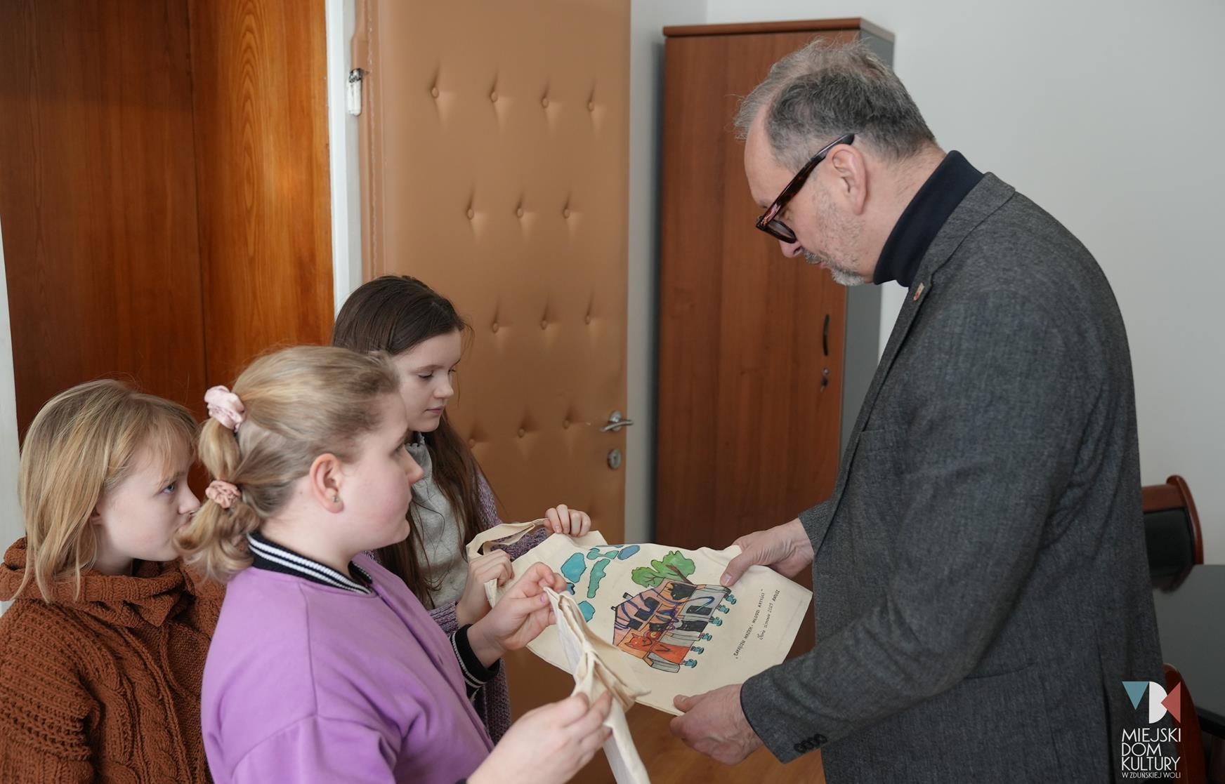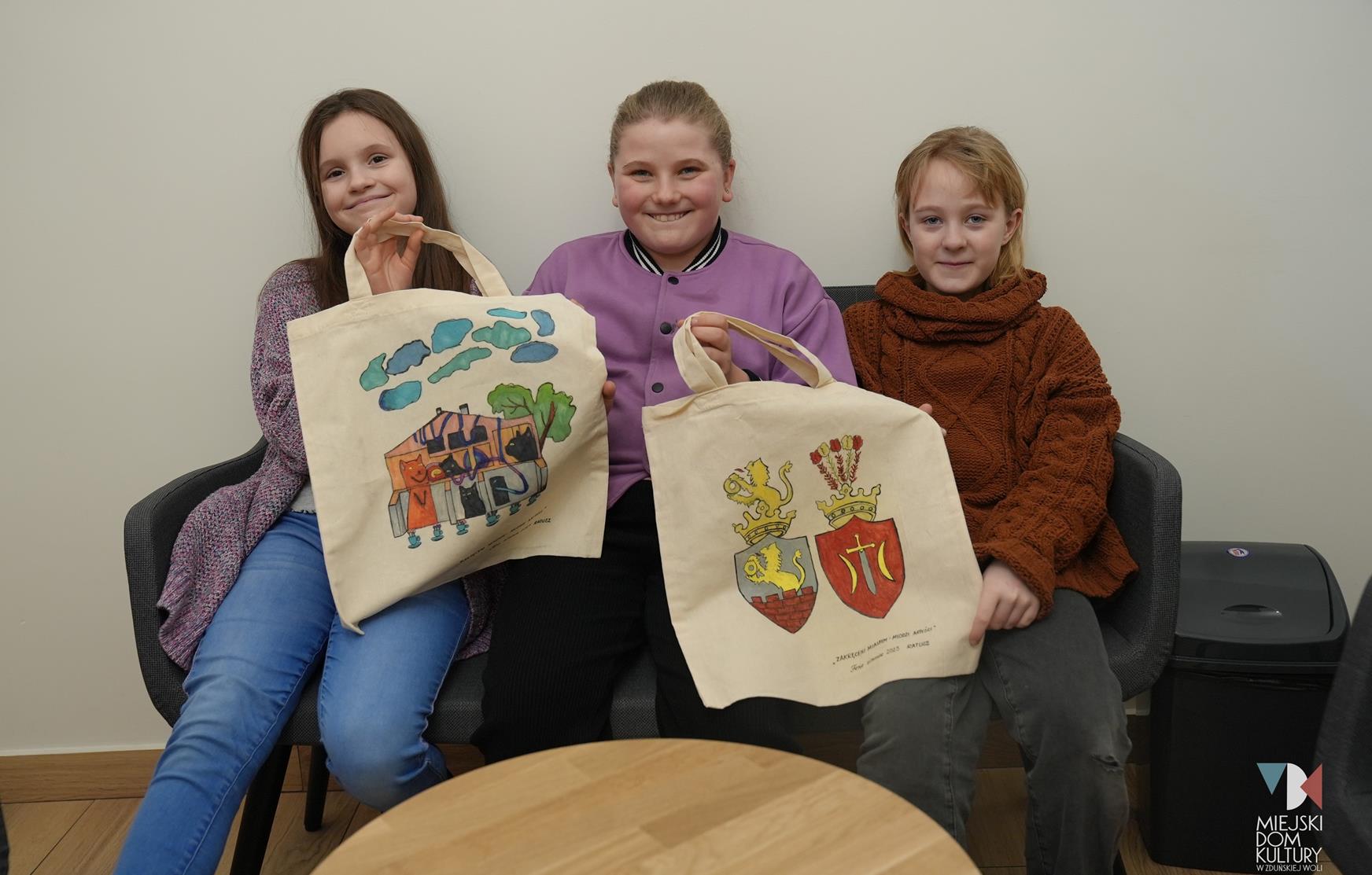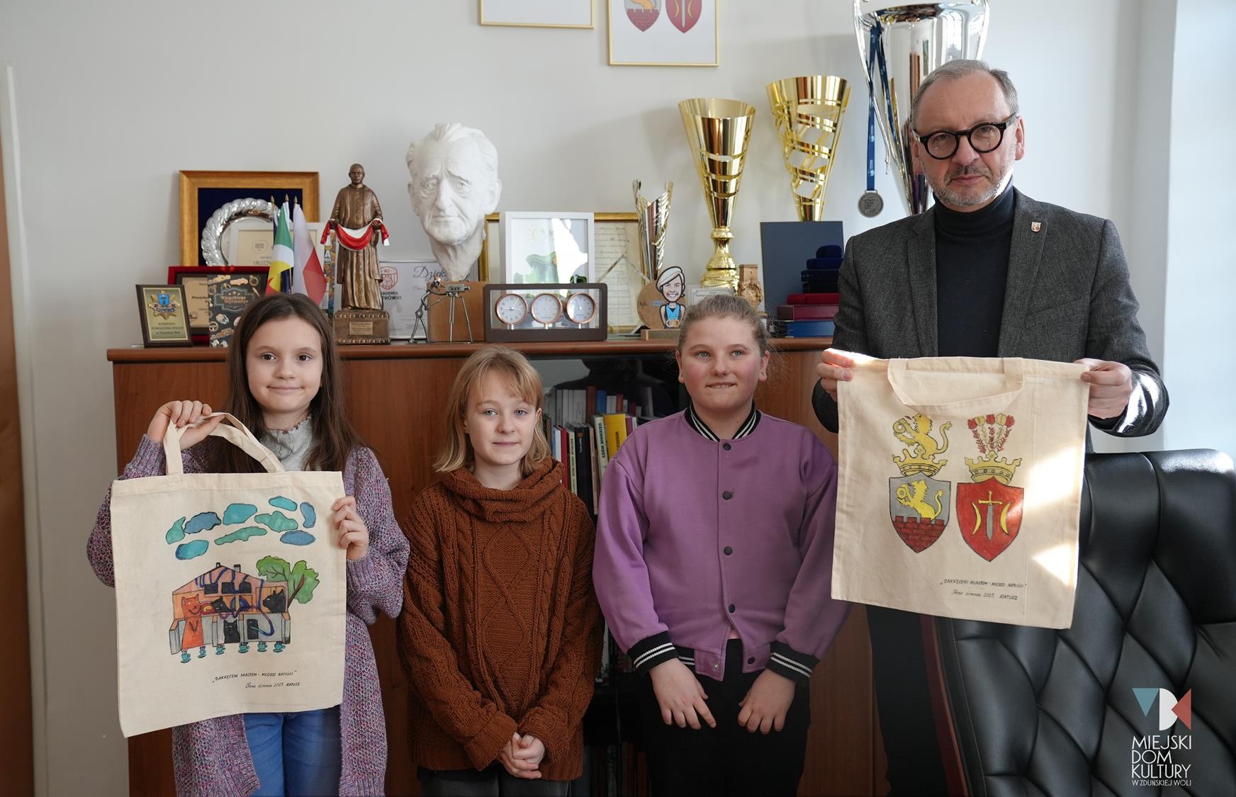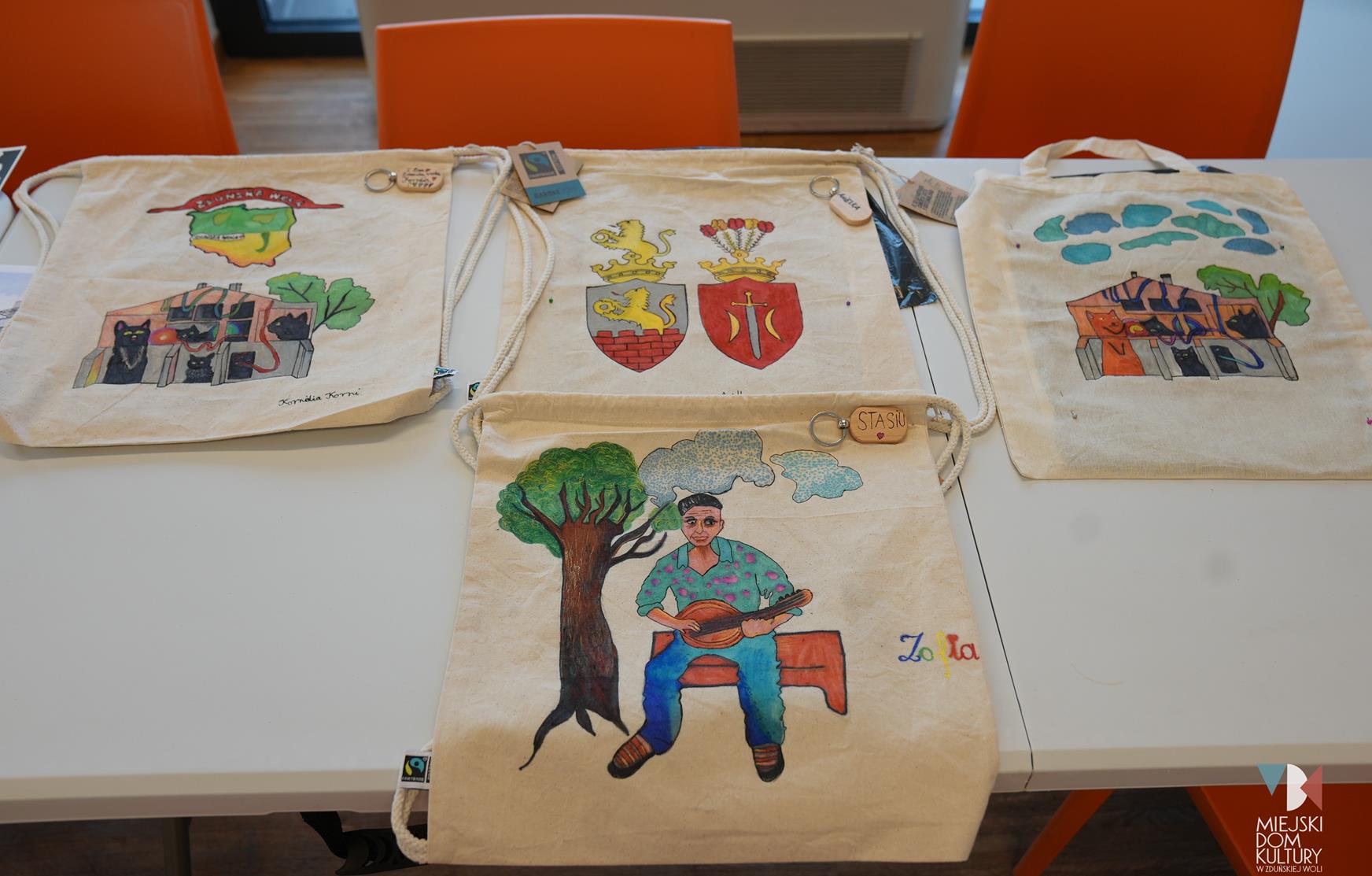 Podczas kreatywnych zajęć ,,Młodzi artyści” dzieci zamieniły się w projektantów-artystów i dekorowały miejskie torby motywami związanymi z miastem. Pojawił się herb Zduńskiej Woli, ławeczka Stanisława Klingera, Park Miejski z altaną i mural z figlarnymi kotami. Inspiracją do tych zajęć na pewno była wycieczka do zaprzyjaźnionego Muzeum Historii Miasta Zduńska Wola. Z tego miejsca serdecznie dziękujemy za gościnę i niezwykle ciekawe opowieści o historii miasta. Udekorowane torby dzieci podarowały także Panu Prezydentowi.