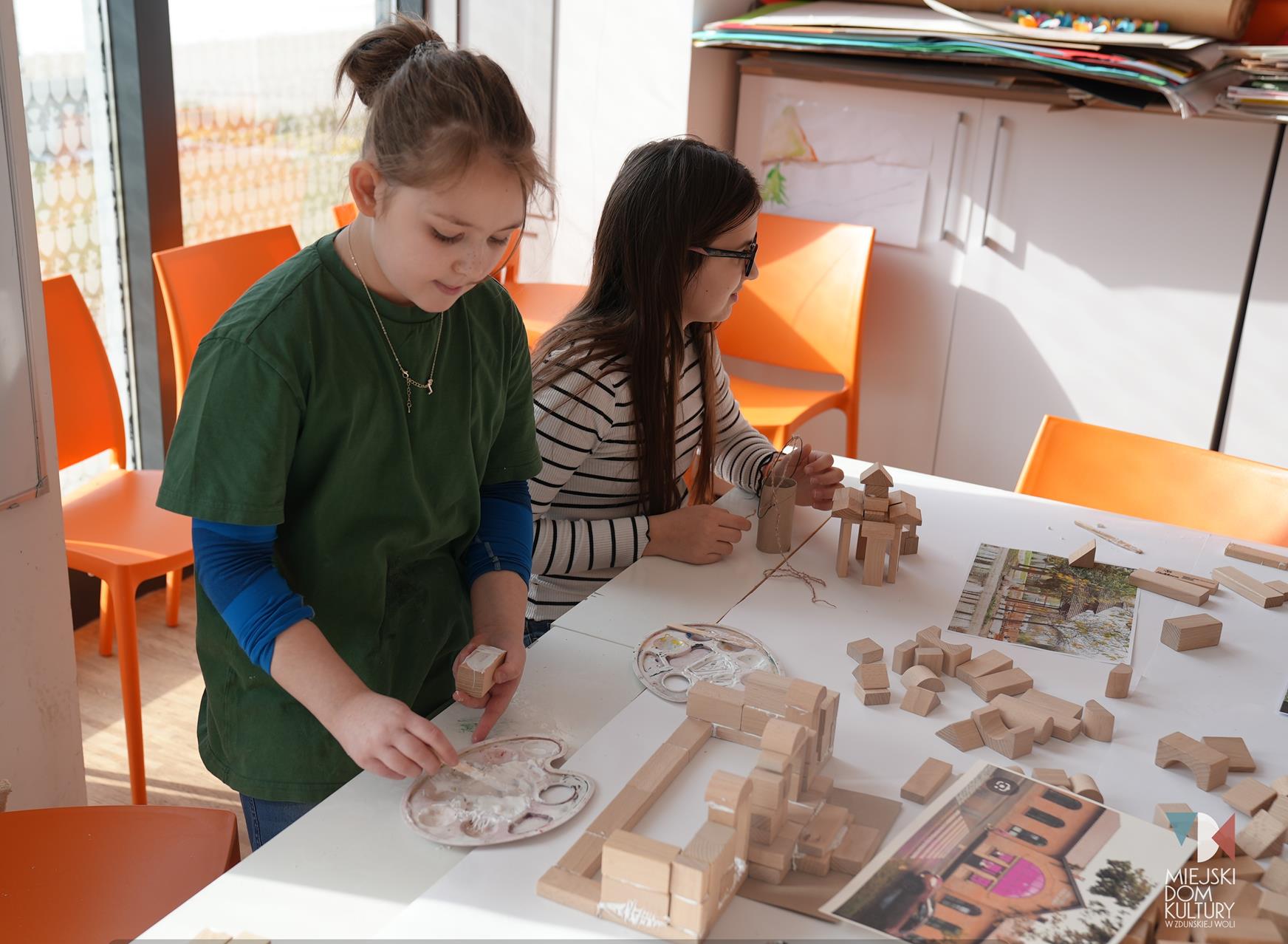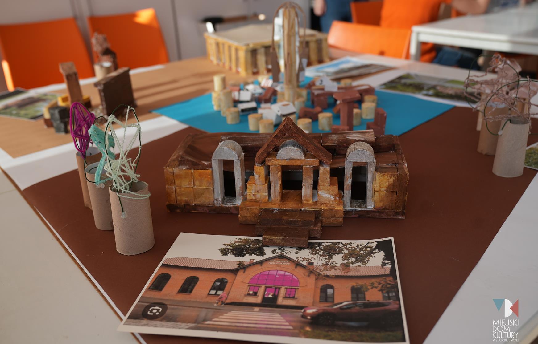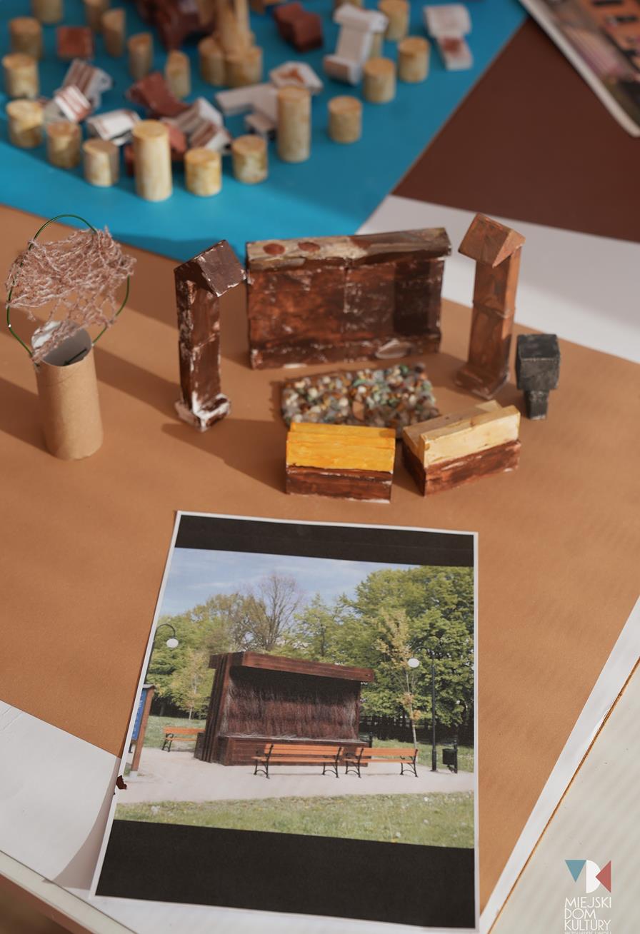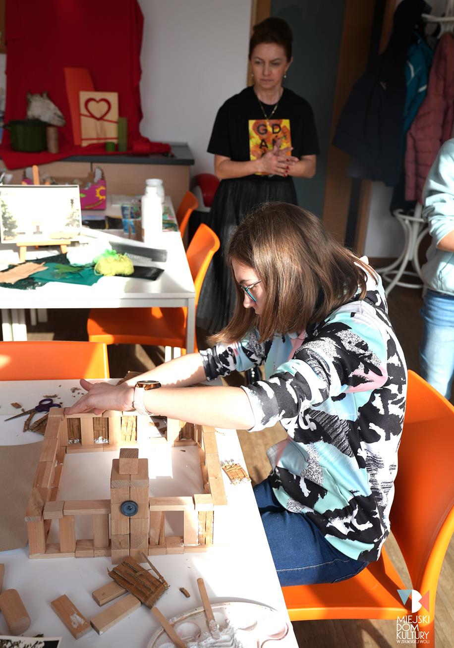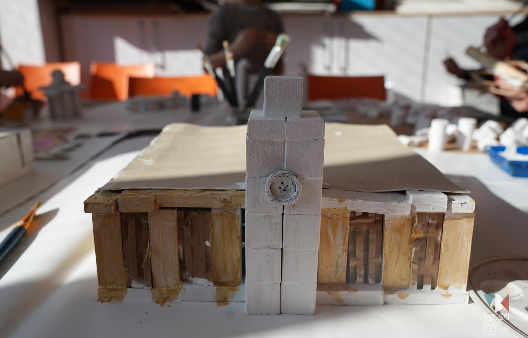 Przez dwa dni uczestnicy ferii pracowali również nad mentalną makietą miasta. Na warsztatach twórczych ,,Budujemy moje miasto” z drewna i papieru powstały projekty: Ratusza, dworca kolejowego, tężni w Parku Miejskim i Skweru im. Pawła Królikowskiego. Warsztaty bazowały na samodzielności, swobodzie twórczej i doświadczeniu sensorycznemu poprzez dotyk. Zajęcia przygotowała Arlena Przelazła-Matusiak, instruktor plastyki w MDK Ratusz.