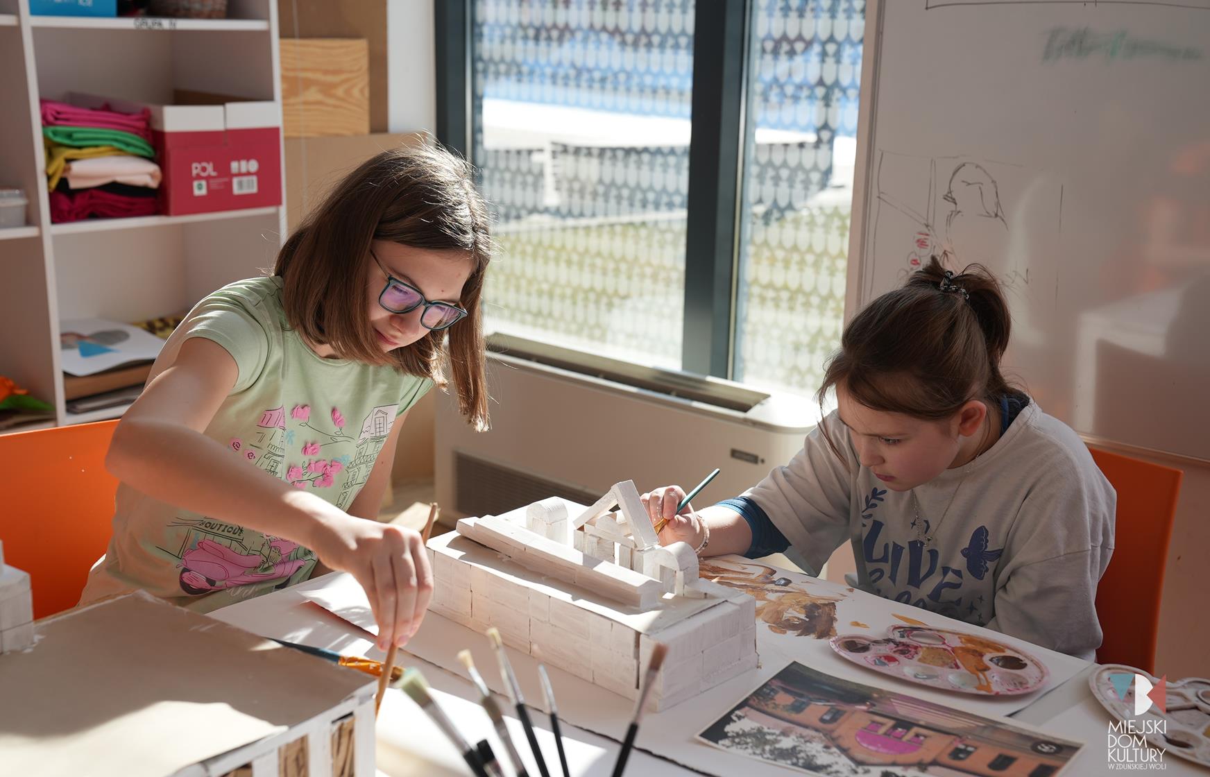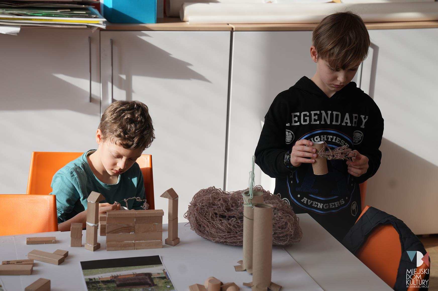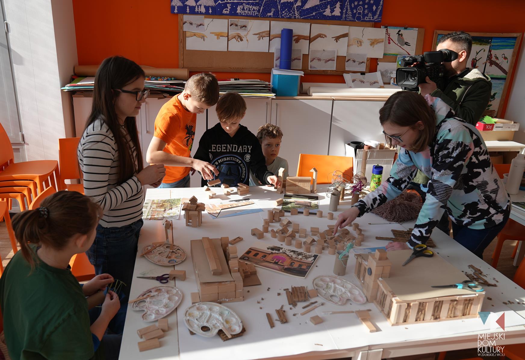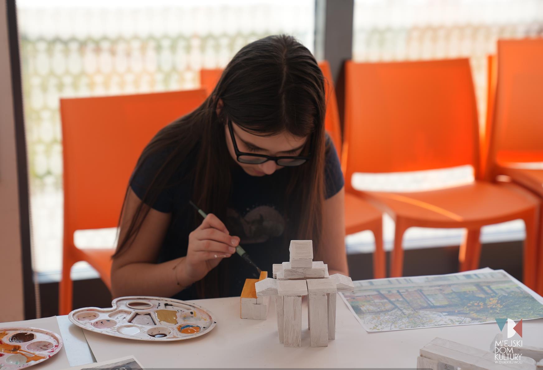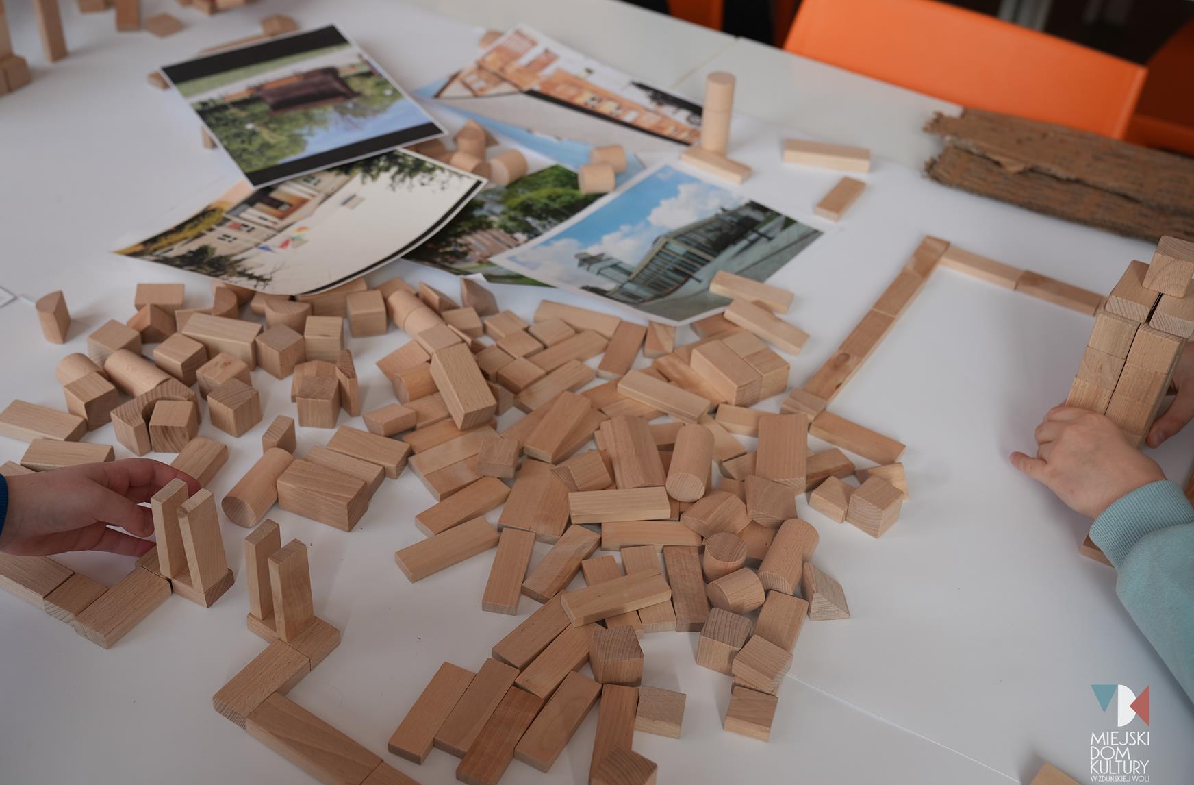 Przez dwa dni uczestnicy ferii pracowali również nad mentalną makietą miasta. Na warsztatach twórczych ,,Budujemy moje miasto” z drewna i papieru powstały projekty: Ratusza, dworca kolejowego, tężni w Parku Miejskim i Skweru im. Pawła Królikowskiego. Warsztaty bazowały na samodzielności, swobodzie twórczej i doświadczeniu sensorycznemu poprzez dotyk. Zajęcia przygotowała Arlena Przelazła-Matusiak, instruktor plastyki w MDK Ratusz.