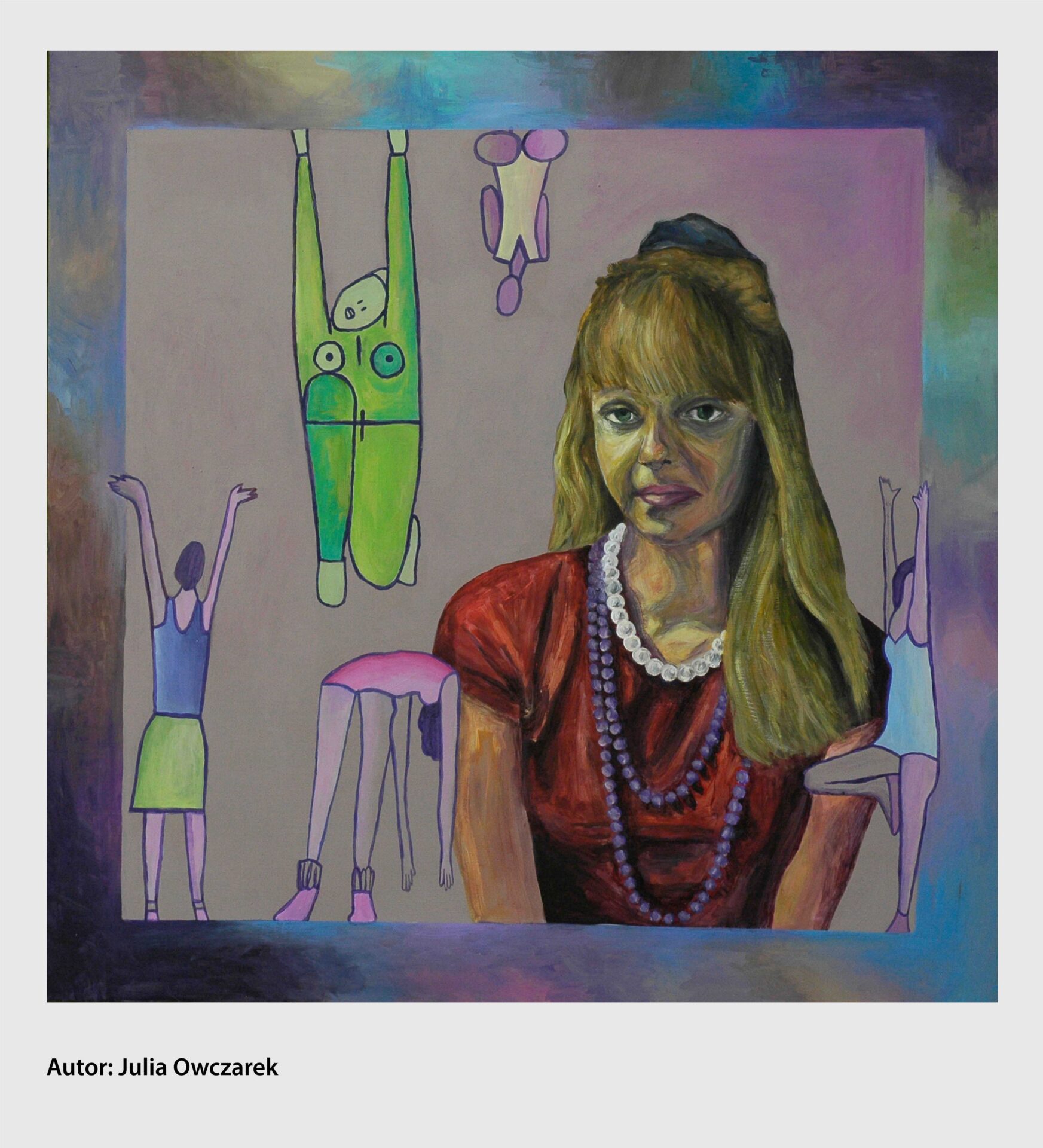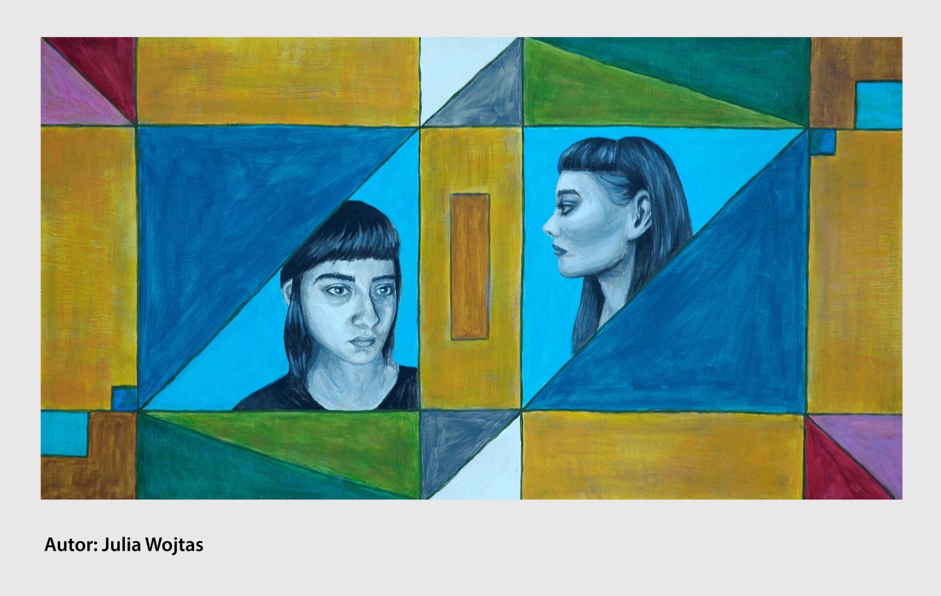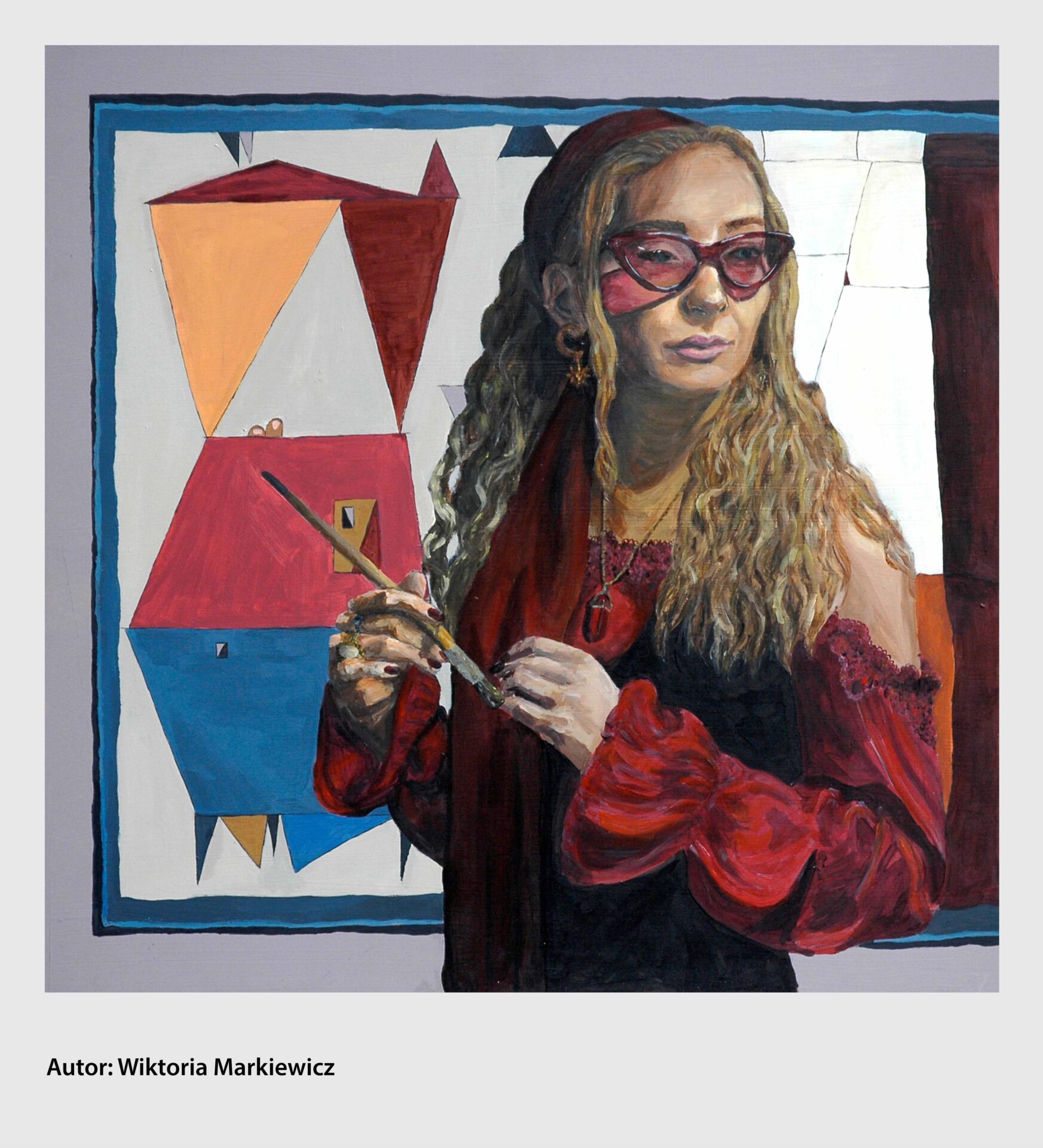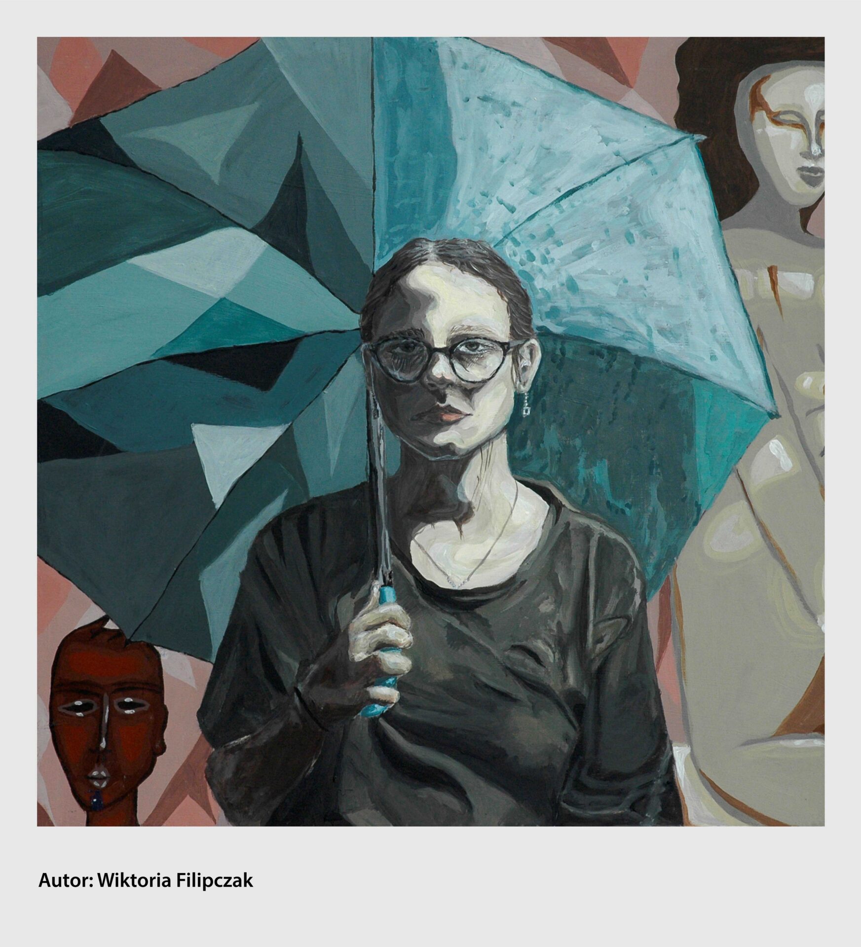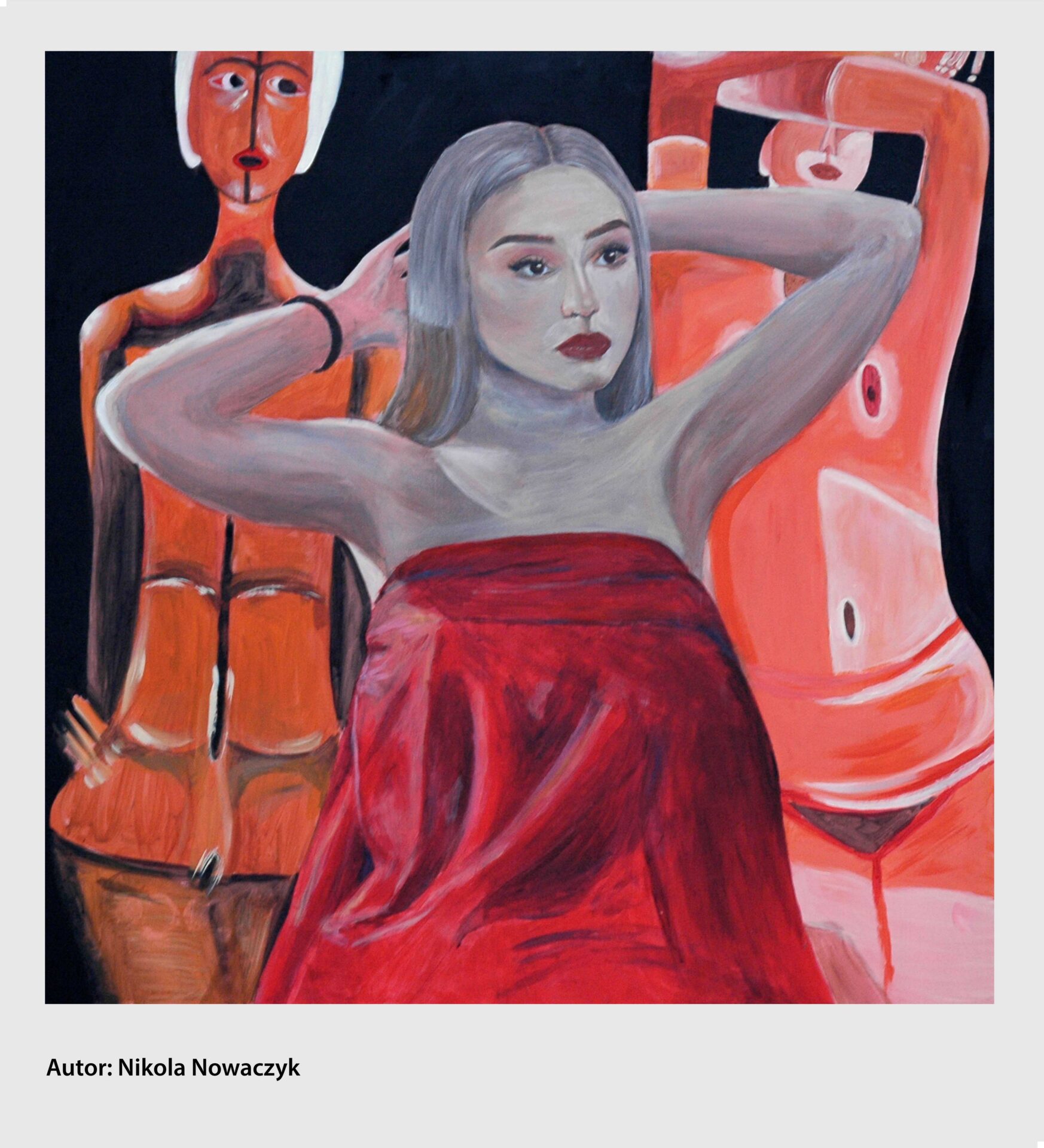 2. cykl „Kompozycje malarskie inspirowane twórczością Jerzego Nowosielskiego” autorstwa uczniów klasy IV. Prace pochodzą z roku szkolnego 2022/ 2023, powstały pod kierunkiem Angeliki Brzostowskiej – Pociechy, nauczycielki rysunku i malarstwa,