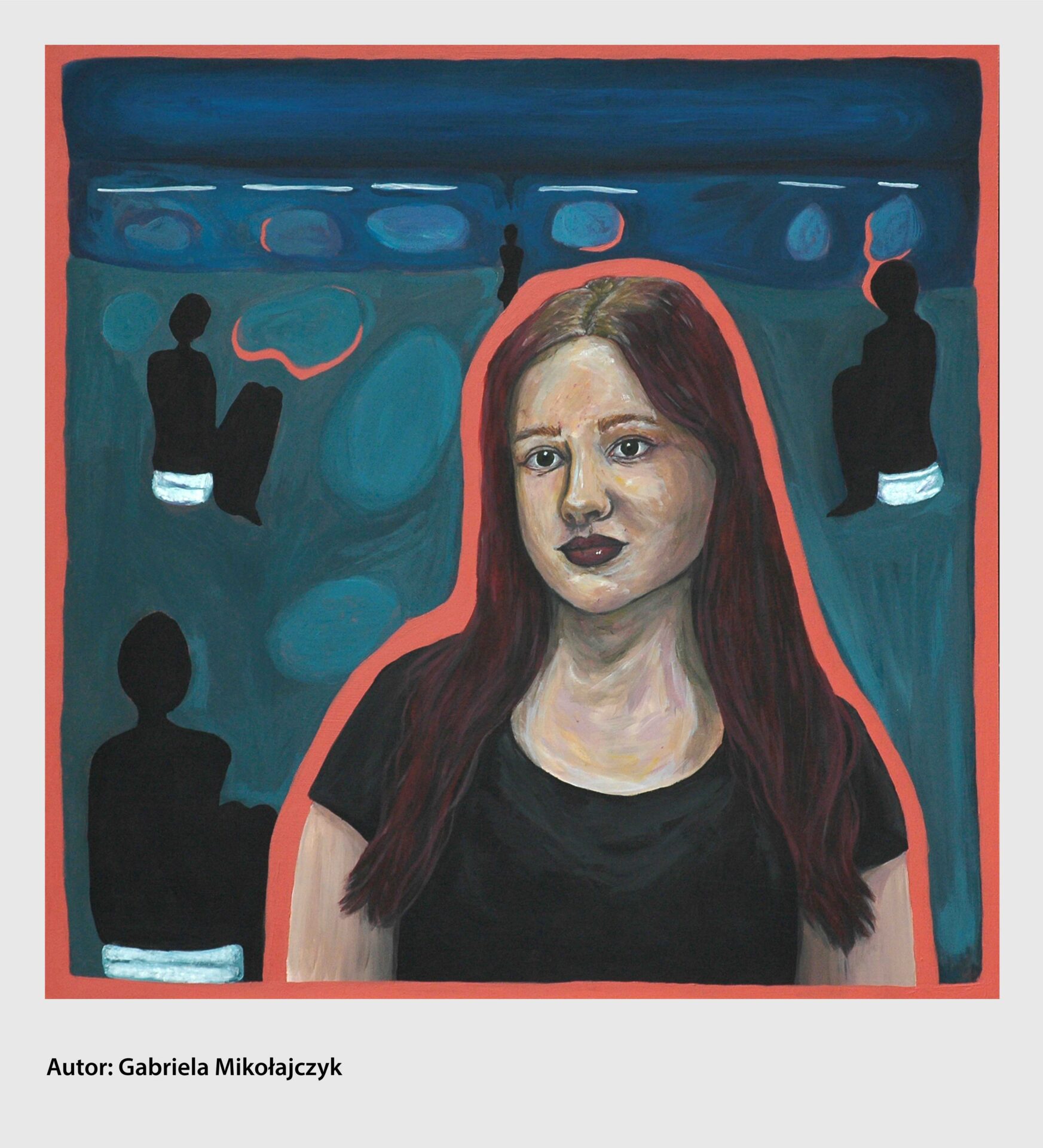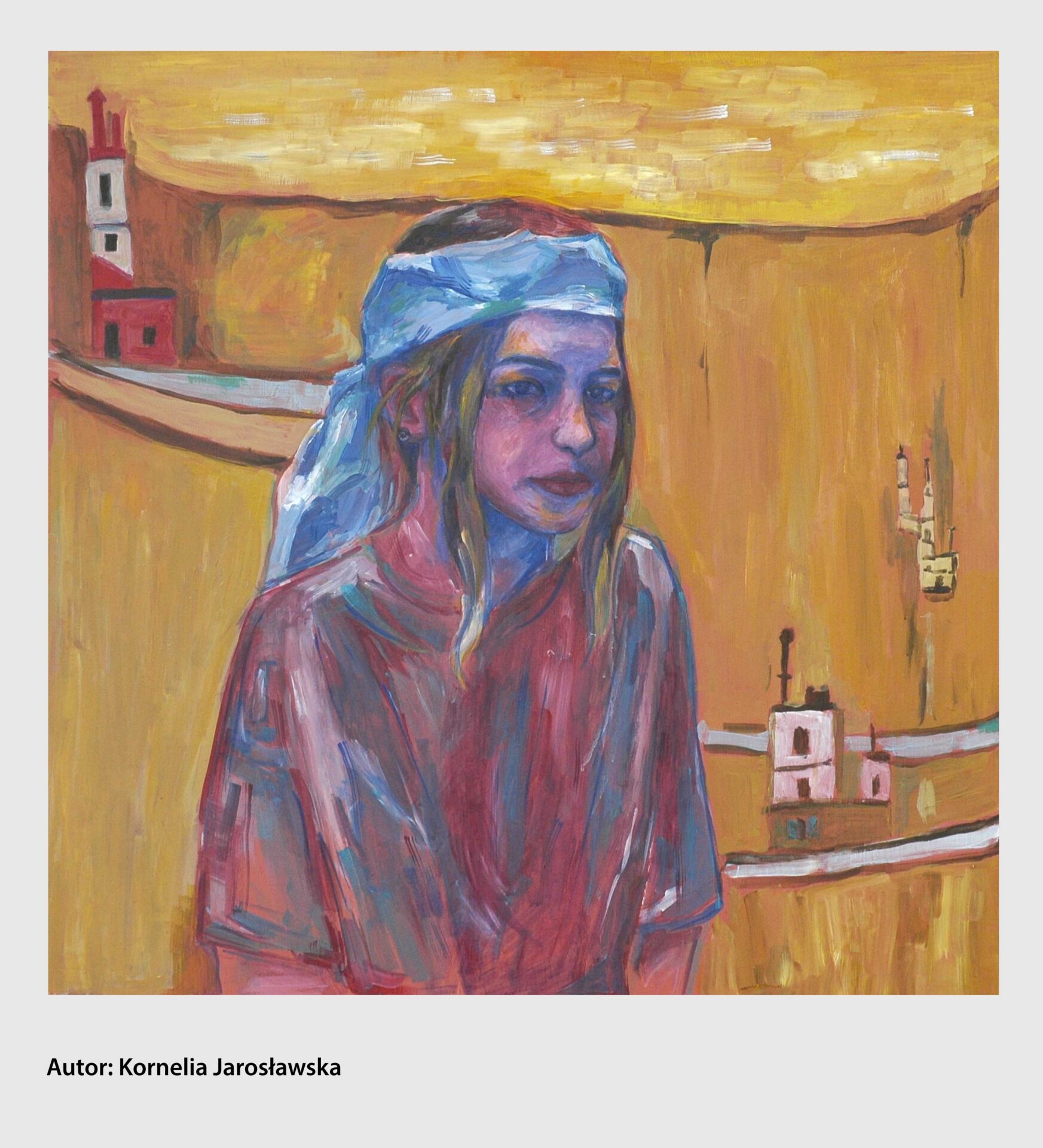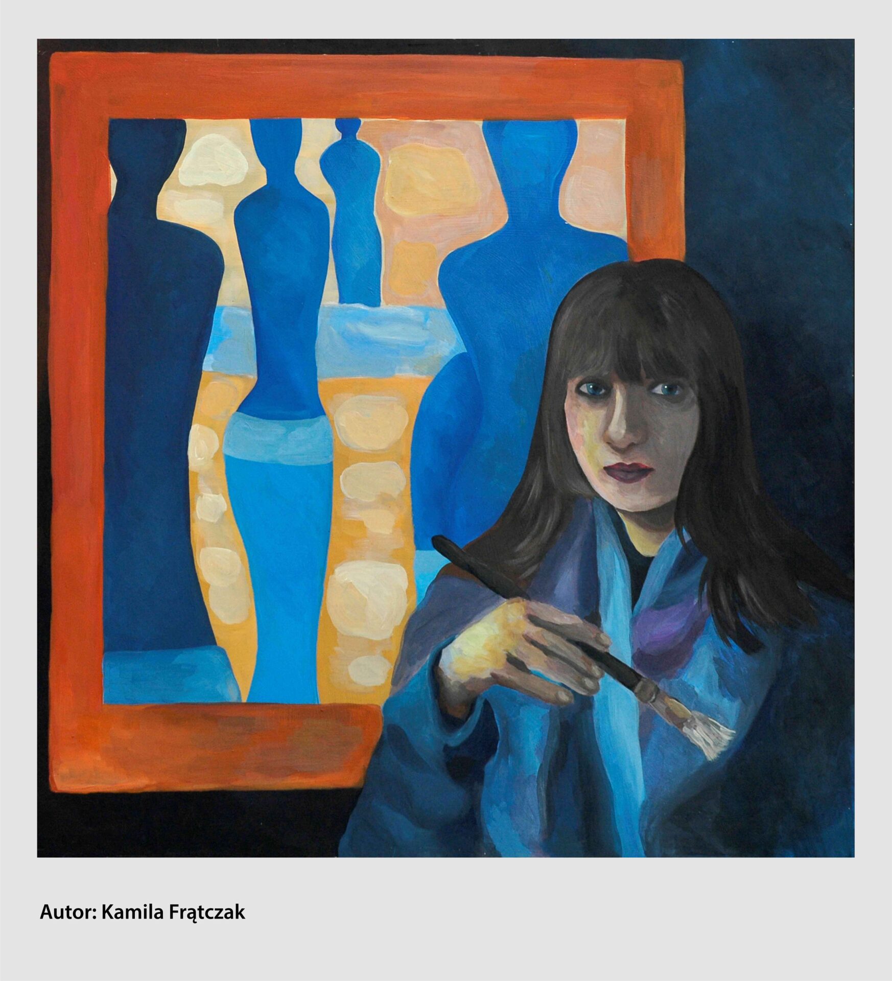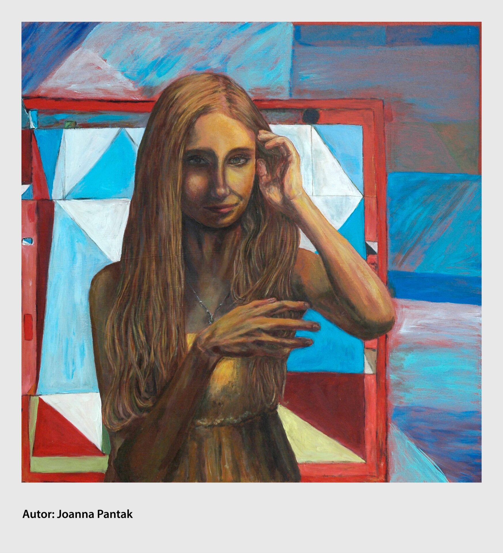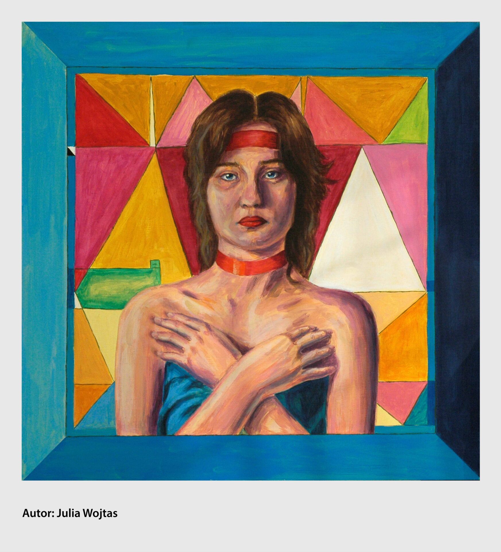 2. cykl „Kompozycje malarskie inspirowane twórczością Jerzego Nowosielskiego” autorstwa uczniów klasy IV. Prace pochodzą z roku szkolnego 2022/ 2023, powstały pod kierunkiem Angeliki Brzostowskiej – Pociechy, nauczycielki rysunku i malarstwa,