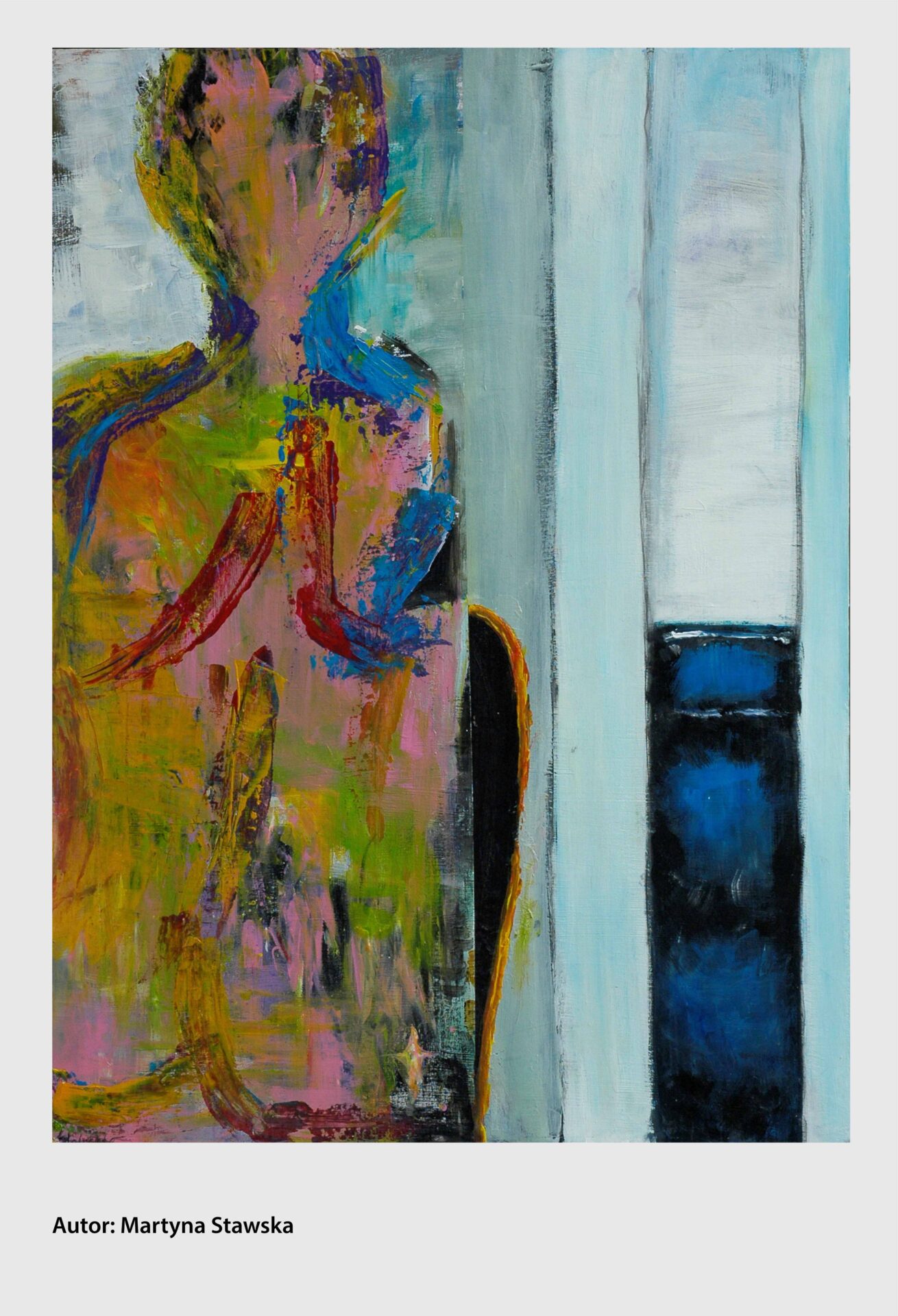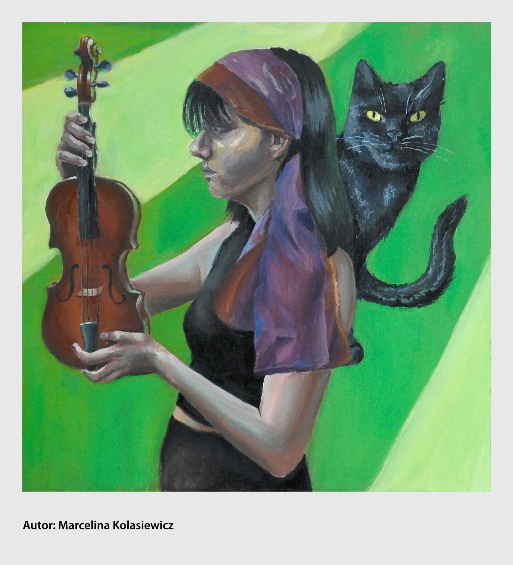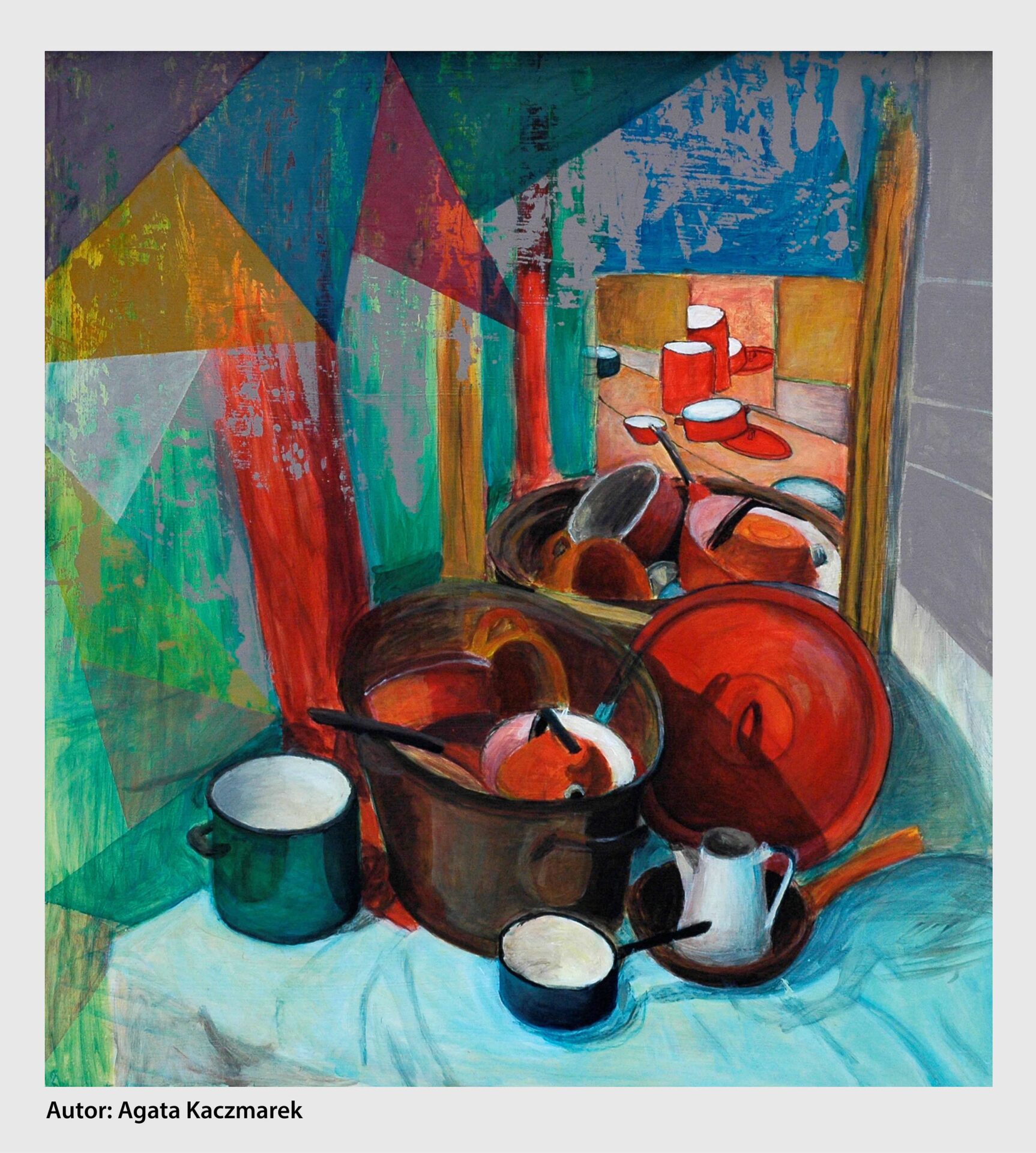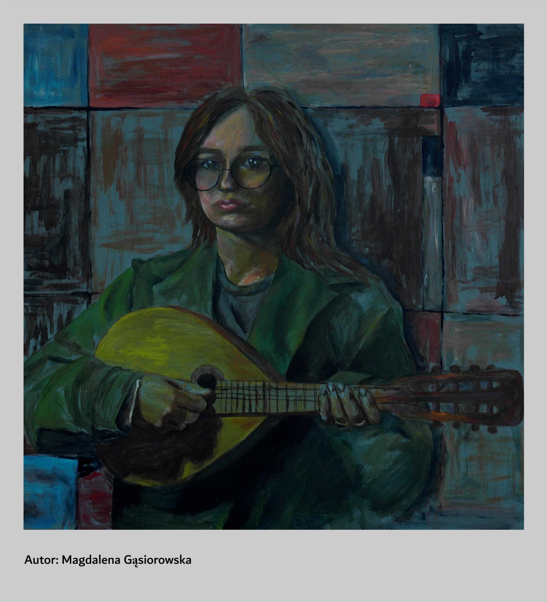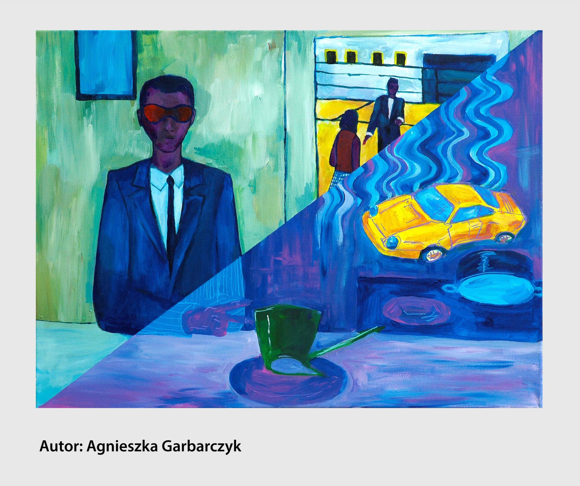 2. cykl „Kompozycje malarskie inspirowane twórczością Jerzego Nowosielskiego” autorstwa uczniów klasy IV. Prace pochodzą z roku szkolnego 2022/ 2023, powstały pod kierunkiem Angeliki Brzostowskiej – Pociechy, nauczycielki rysunku i malarstwa,