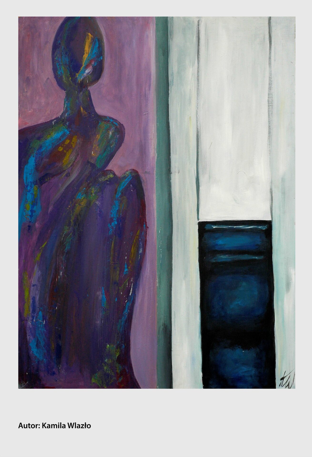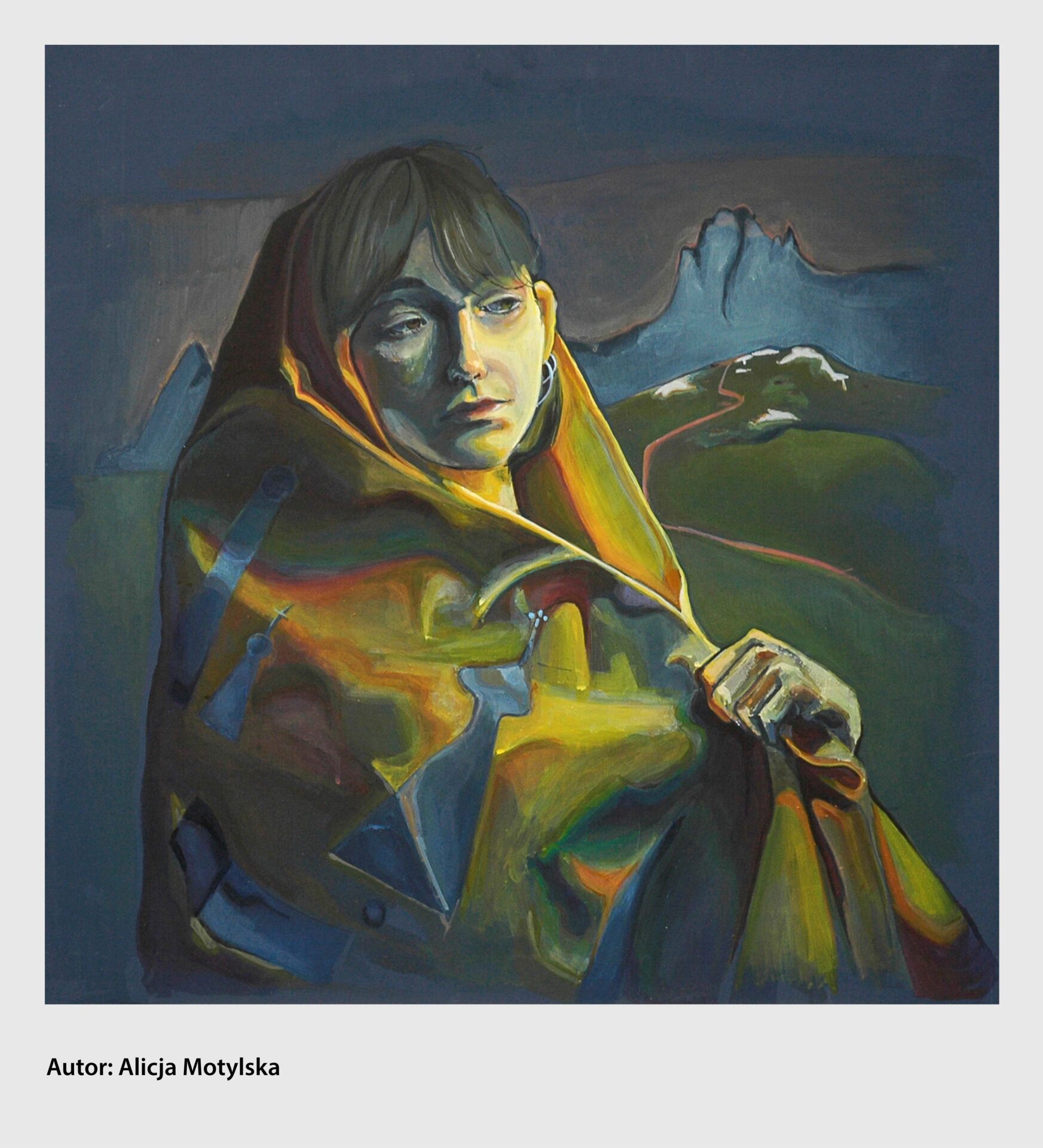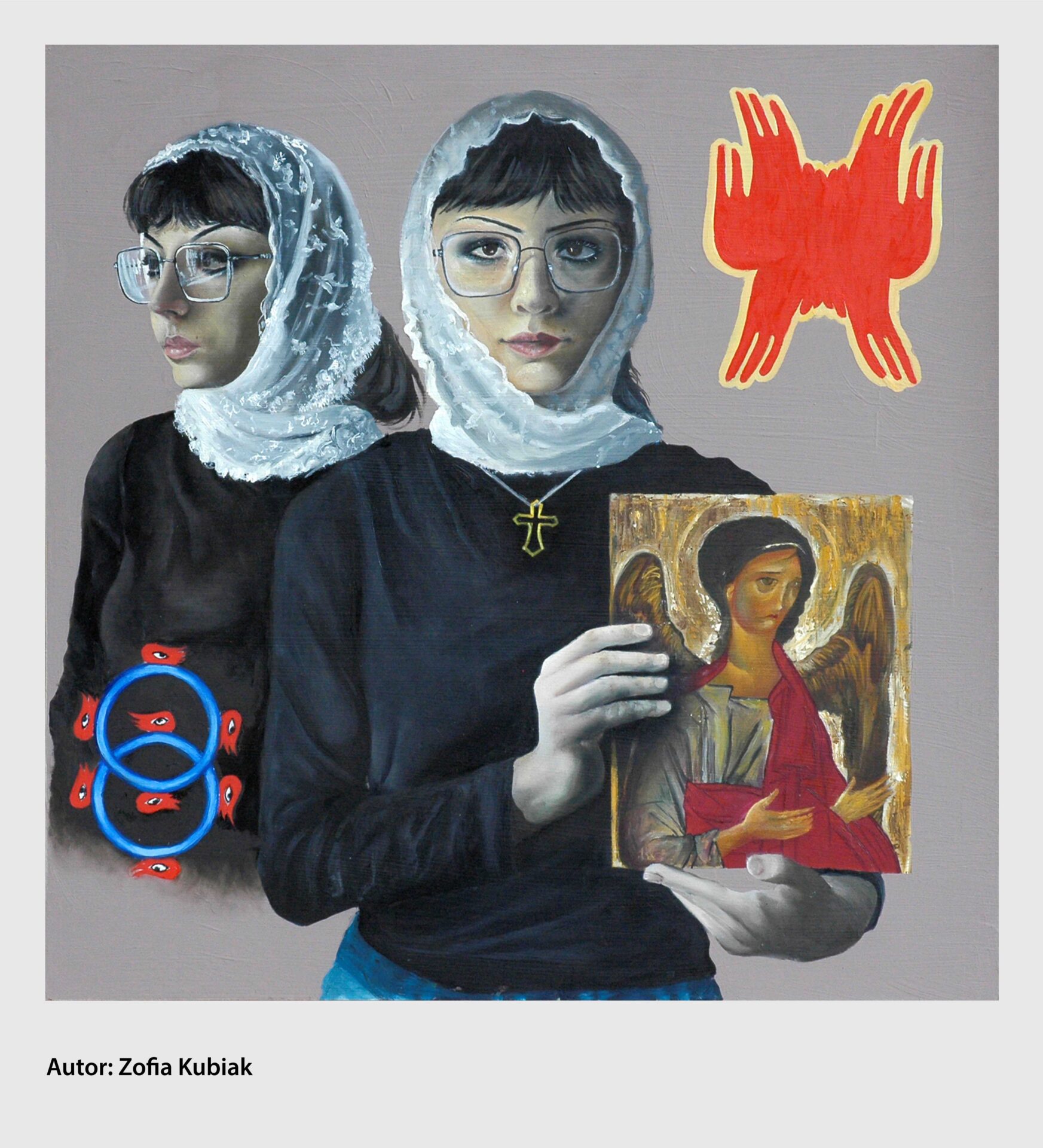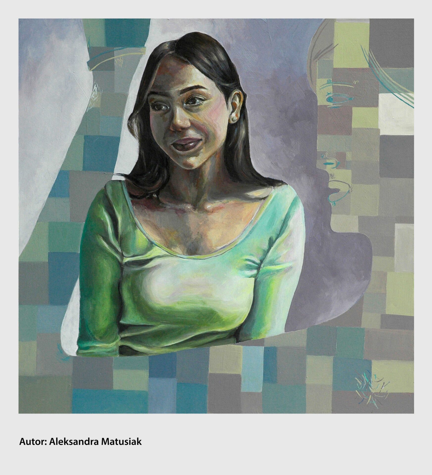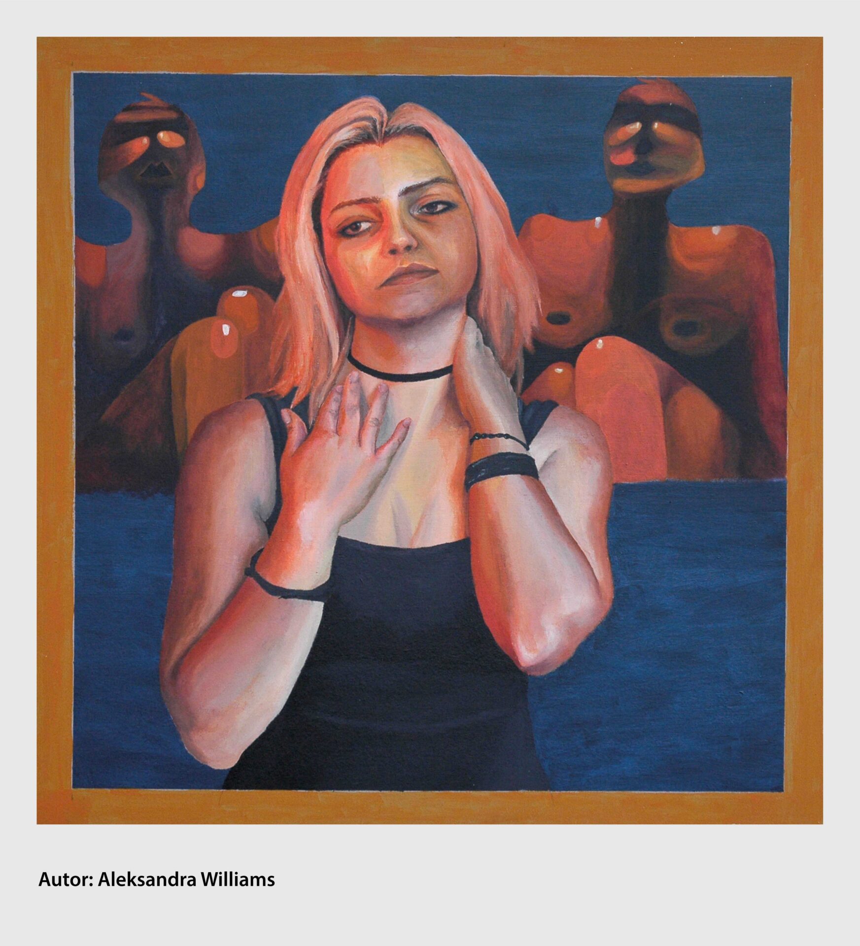 2. cykl „Kompozycje malarskie inspirowane twórczością Jerzego Nowosielskiego” autorstwa uczniów klasy IV. Prace pochodzą z roku szkolnego 2022/ 2023, powstały pod kierunkiem Angeliki Brzostowskiej – Pociechy, nauczycielki rysunku i malarstwa,