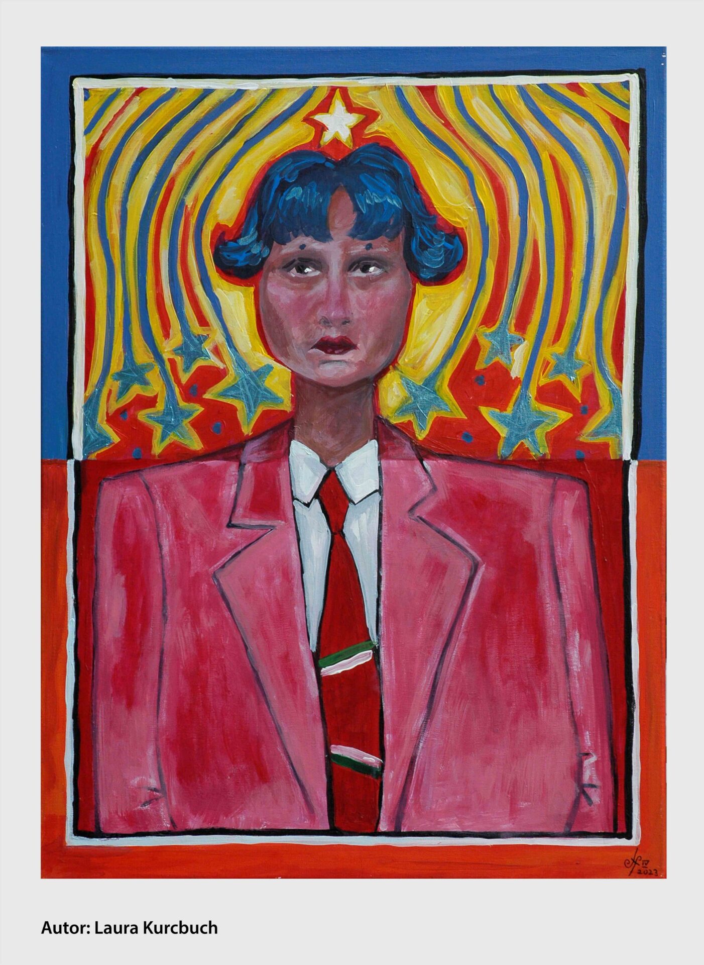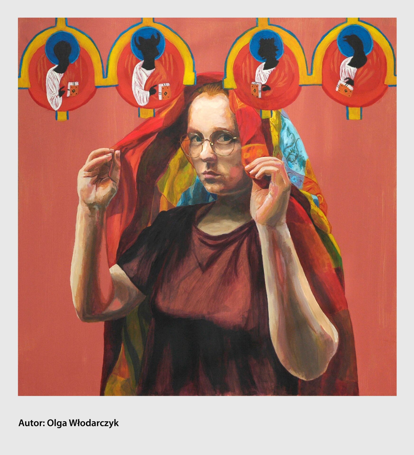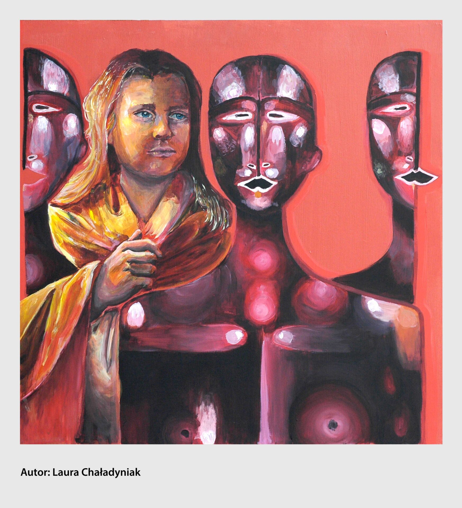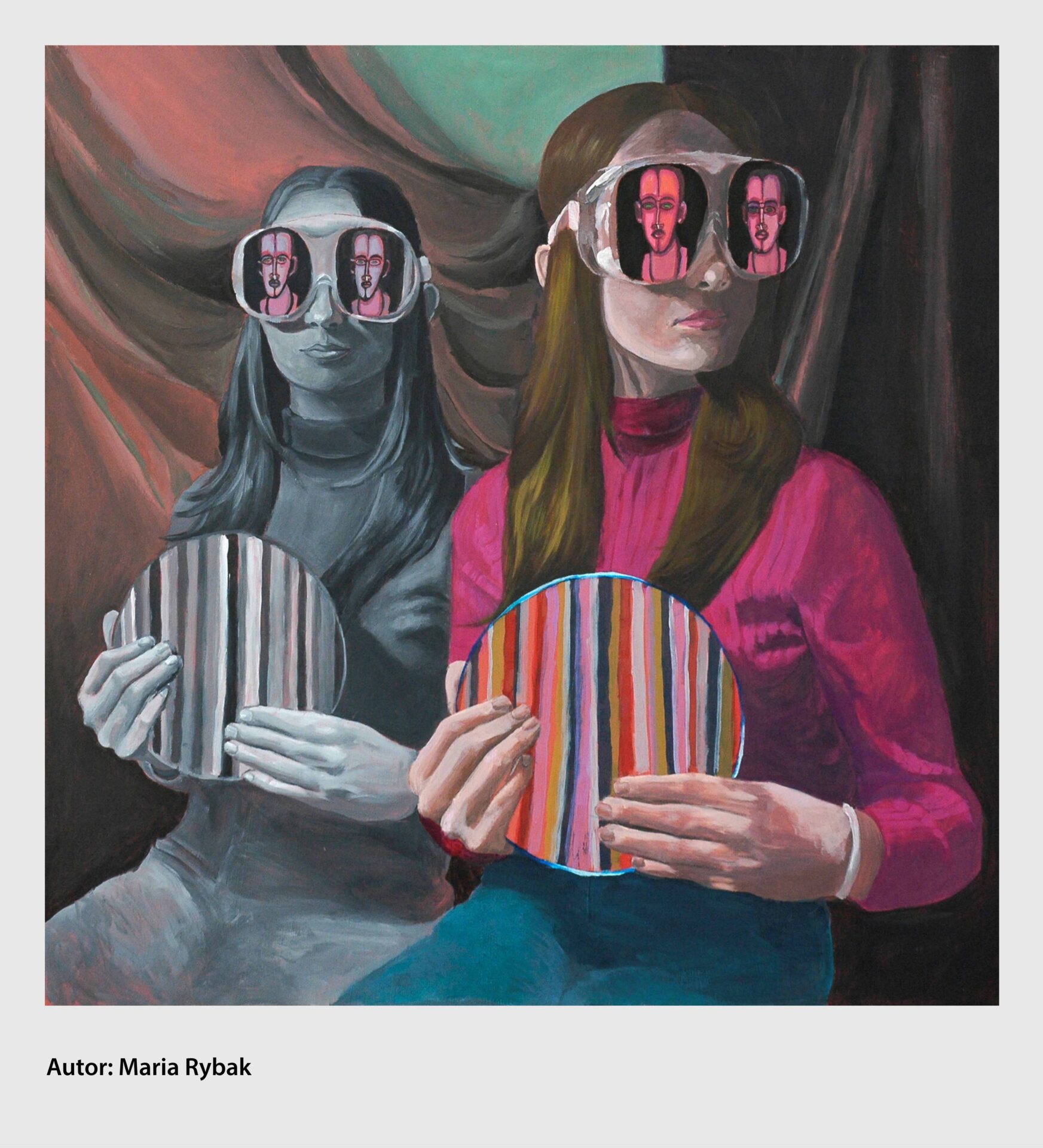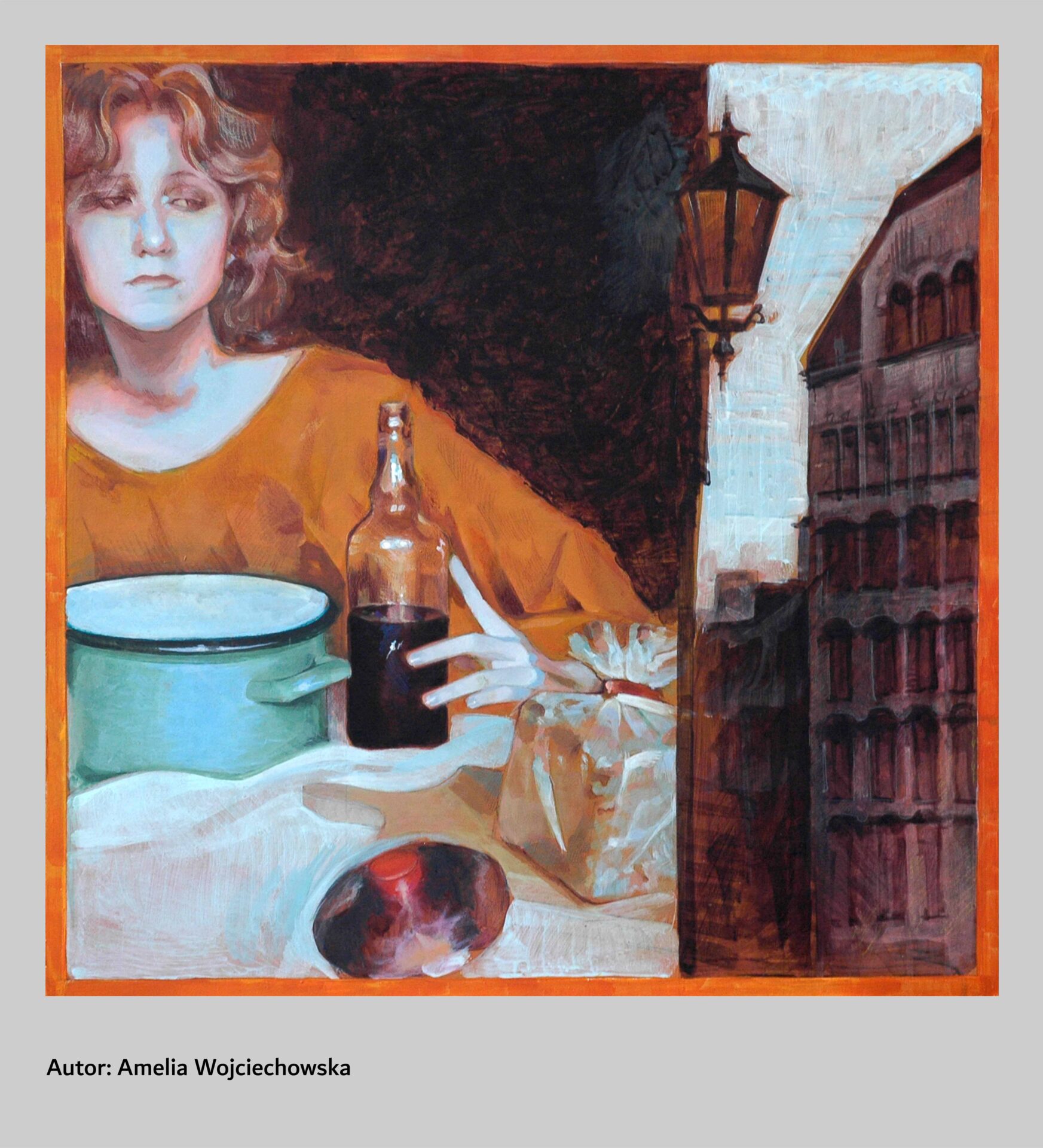 2. cykl „Kompozycje malarskie inspirowane twórczością Jerzego Nowosielskiego” autorstwa uczniów klasy IV. Prace pochodzą z roku szkolnego 2022/ 2023, powstały pod kierunkiem Angeliki Brzostowskiej – Pociechy, nauczycielki rysunku i malarstwa,