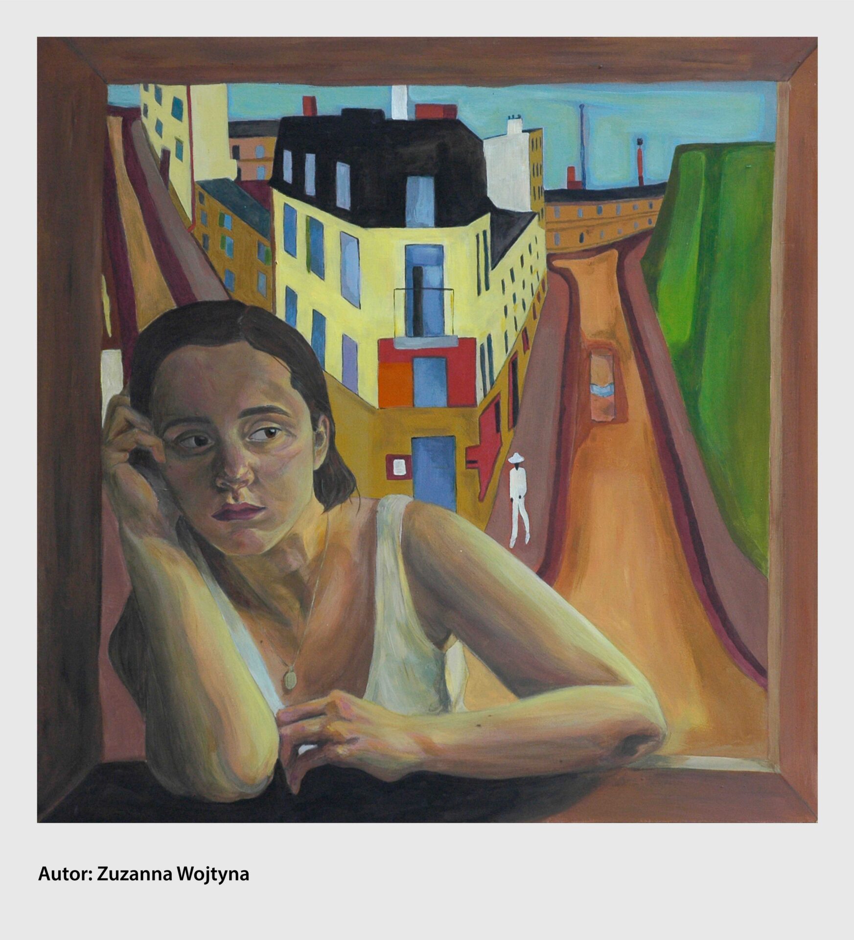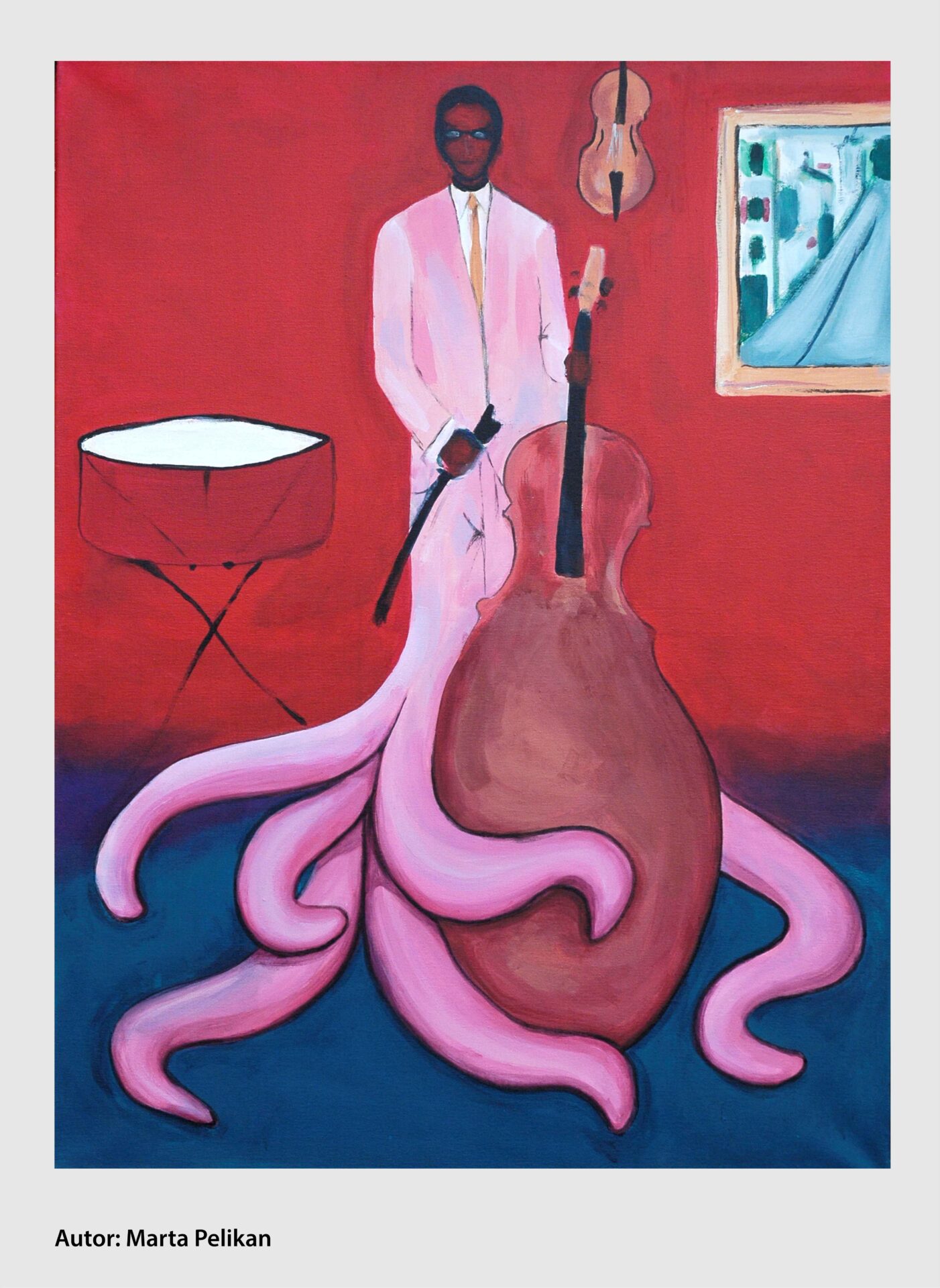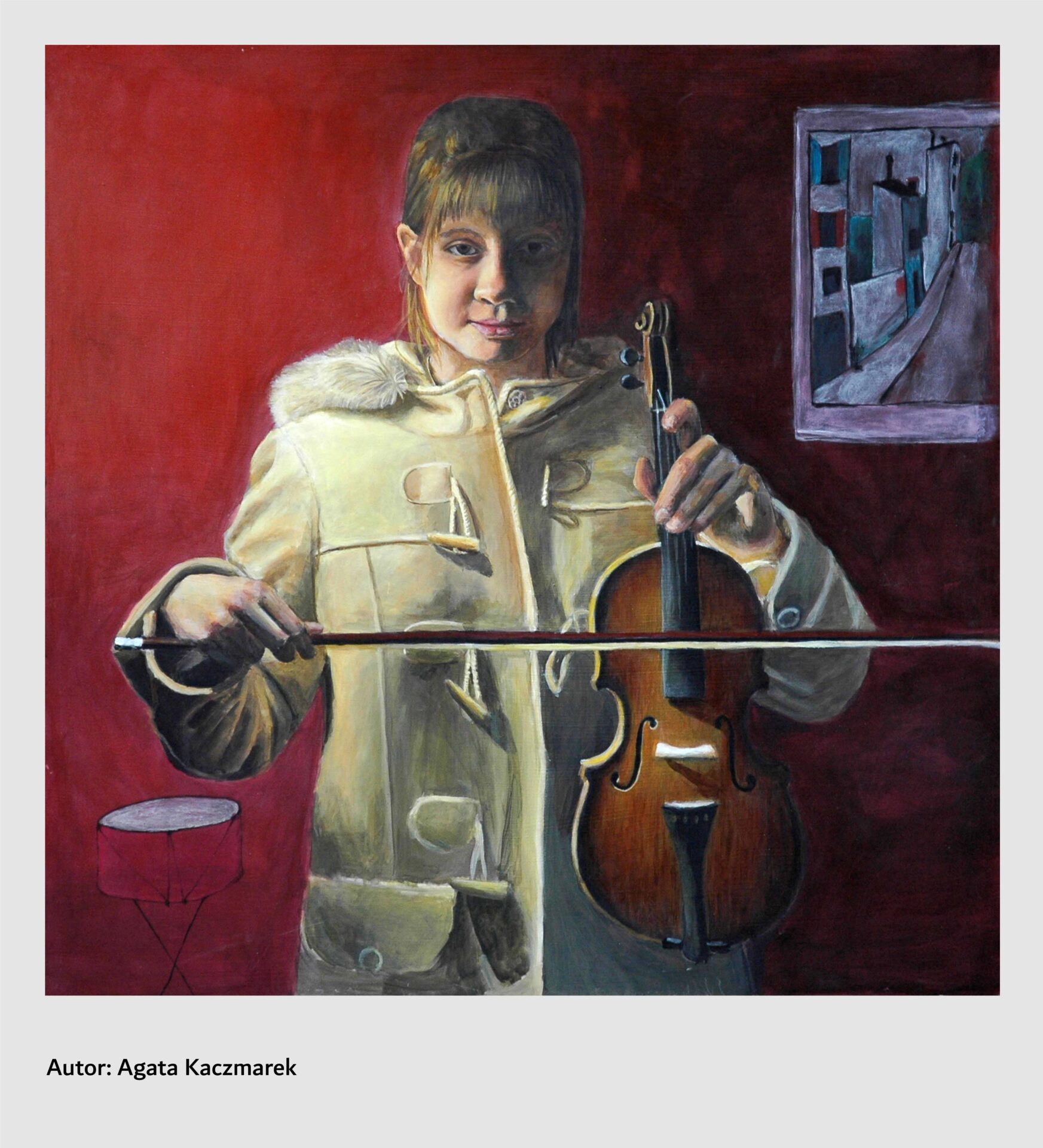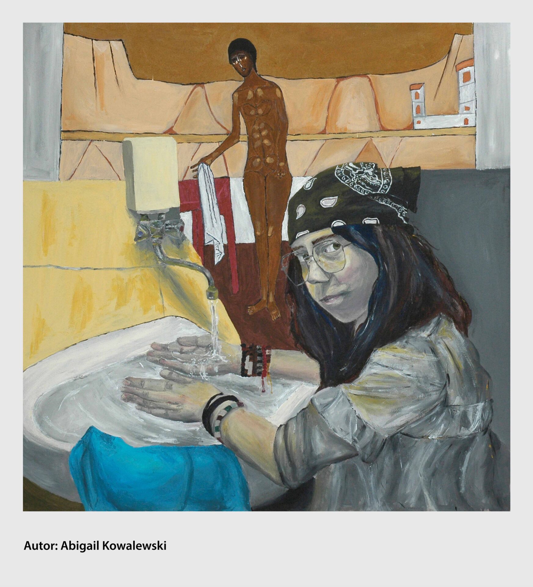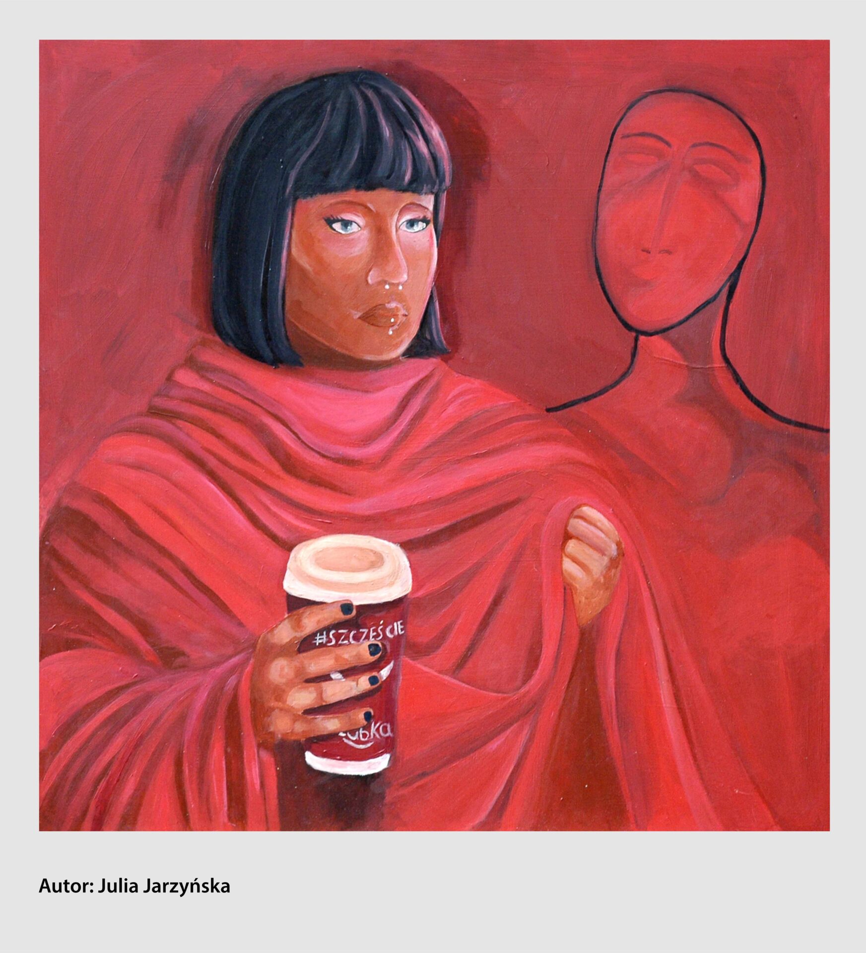 2. cykl „Kompozycje malarskie inspirowane twórczością Jerzego Nowosielskiego” autorstwa uczniów klasy IV. Prace pochodzą z roku szkolnego 2022/ 2023, powstały pod kierunkiem Angeliki Brzostowskiej – Pociechy, nauczycielki rysunku i malarstwa,