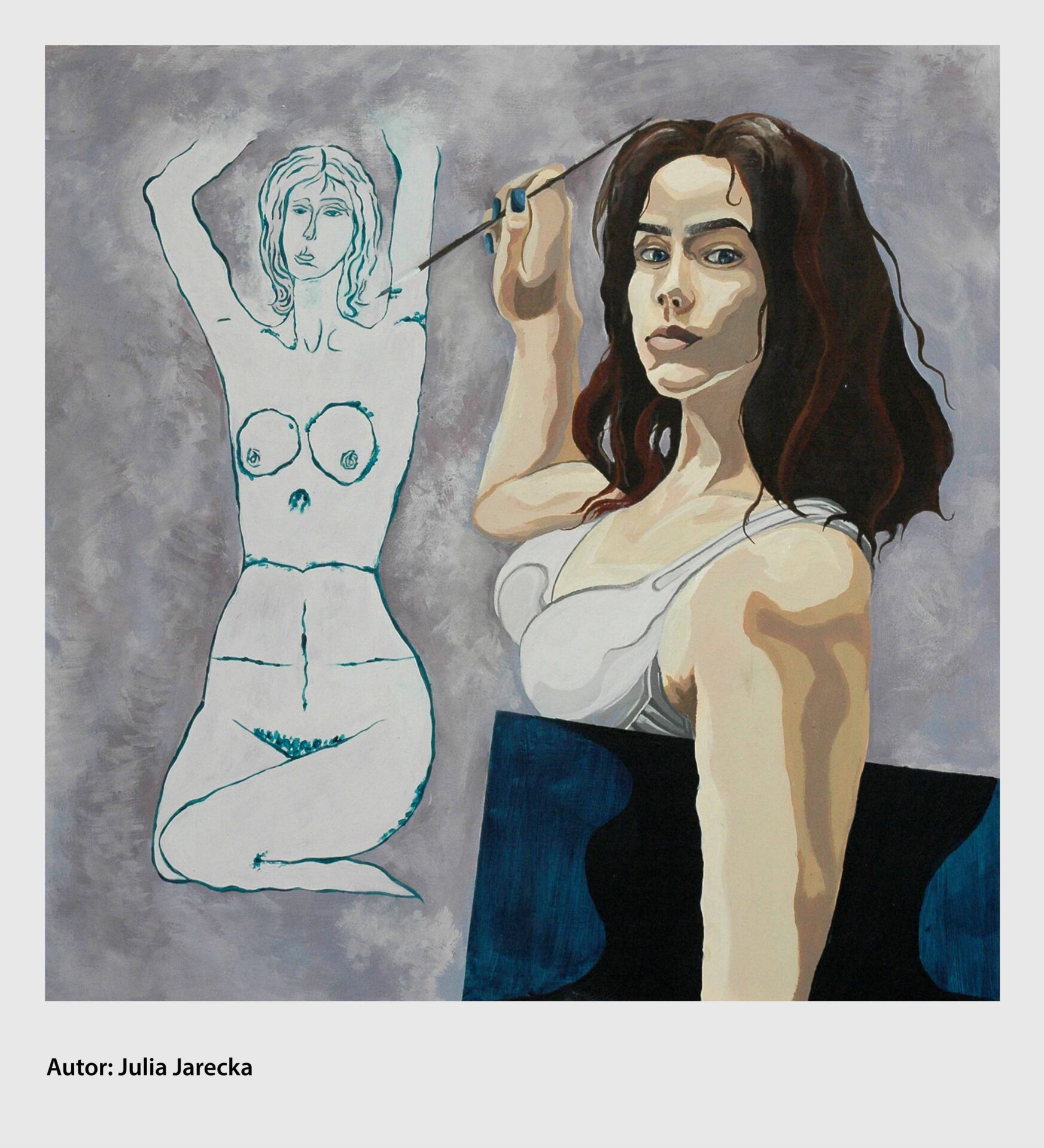 1. cykl „Autoportret inspirowany twórczością Jerzego Nowosielskiego” autorstwa uczniów klasy III i IV. Poza autoportretami prezentowane są również dwie inne prace: „Martwa natura” i „Abstrakcja z portretami”. Prace powstały pod kierunkiem Marzeny Sroczyńskiej – Gudajczyk, nauczycielki rysunku i malarstwa, pomysłodawczyni i koordynatorki działań „NOWE I SIELSKIE KLIMATY”,