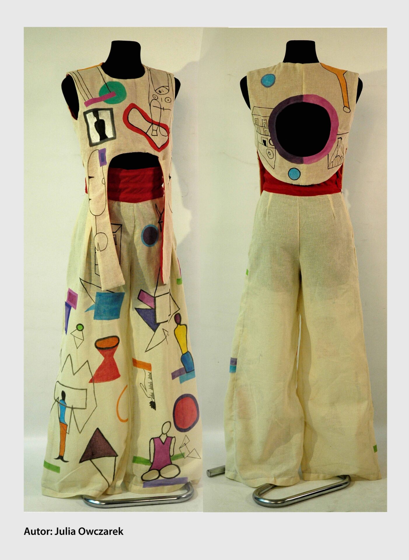 3. cykl ,,Kolekcja ubiorów inspirowanych twórczością Jerzego Nowosielskiego” autorstwa uczniów klasy III. Prace powstały pod kierunkiem Agnieszki Świstek, nauczycielki projektowania ubioru.