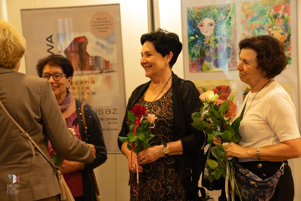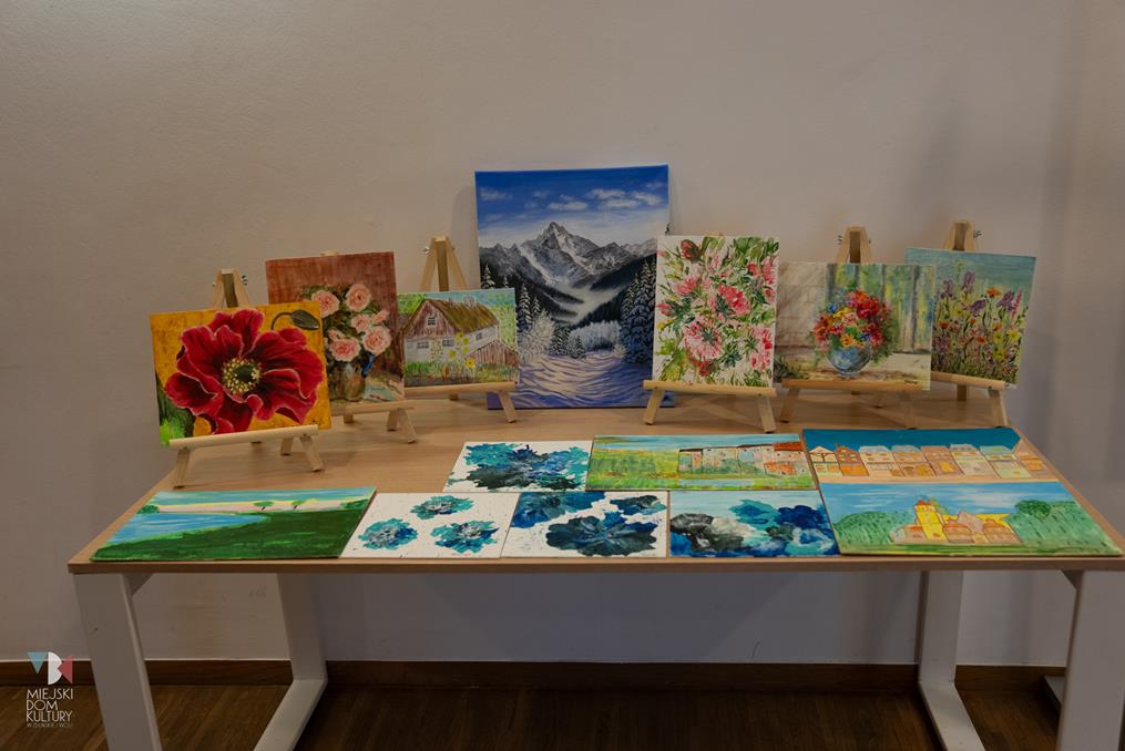 Krystyna Poradzińska, Anna Regulska, Irena Świątkowska, Jadwiga Ziółkowska, Krystyna Łuczak, Maria Marglewska, Danuta Stolarczyk, Barbara Tosik-Kubiak. Prace powstały pod kierunkiem instruktora Elżbiety Woźniak, a wystawa jest podsumowaniem, tego, co udało się zrealizować na zajęciach w pracowni plastycznej MDK w sezonie 2023/2024.