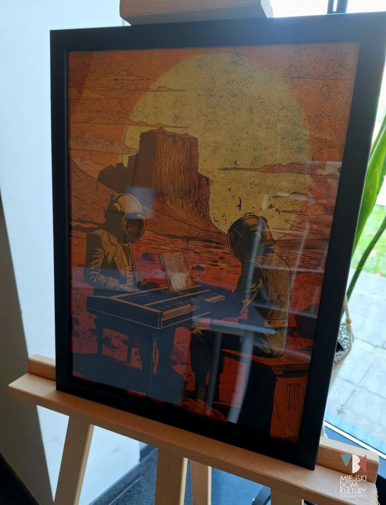 Na wystawie zobaczyć można nawiązania do magazynów pulpowych czy złotej ery komiksu. Jest wyrazista kreska i ciepła kolorystyka, wszystko okraszone rastrem przywołującym na myśl sitodruki.