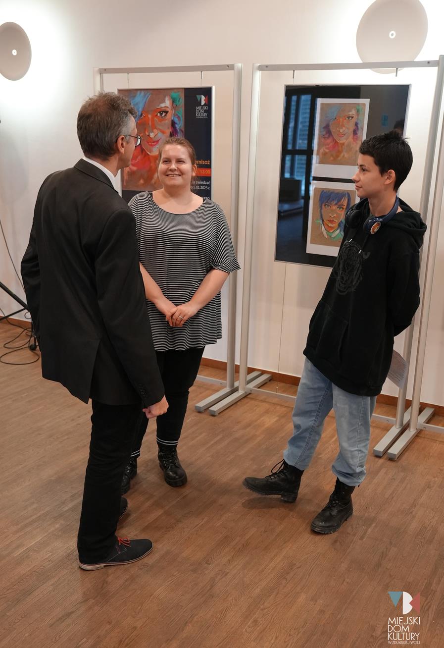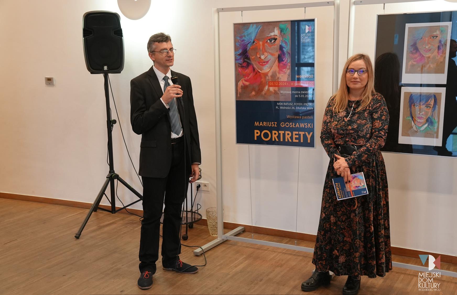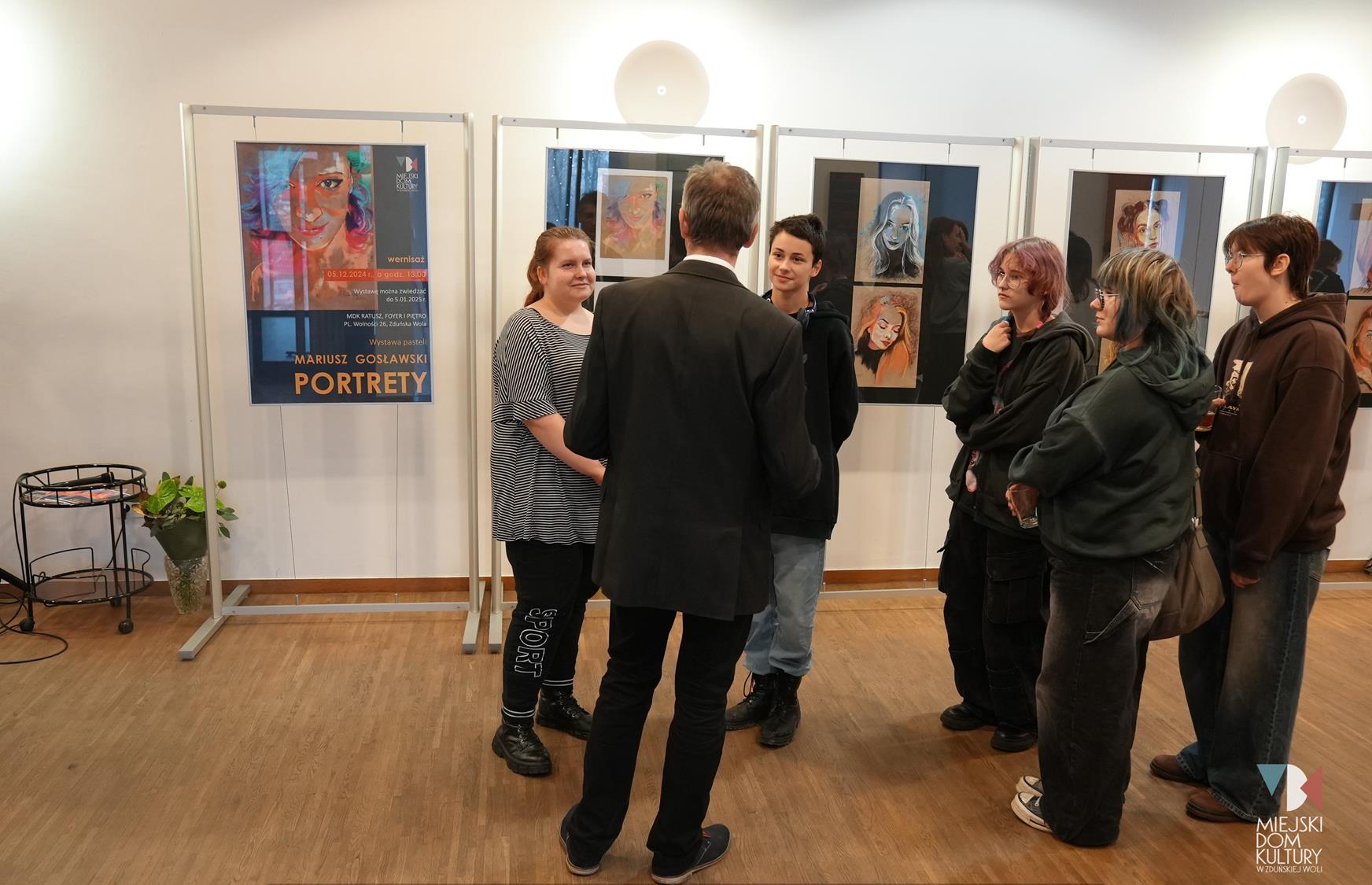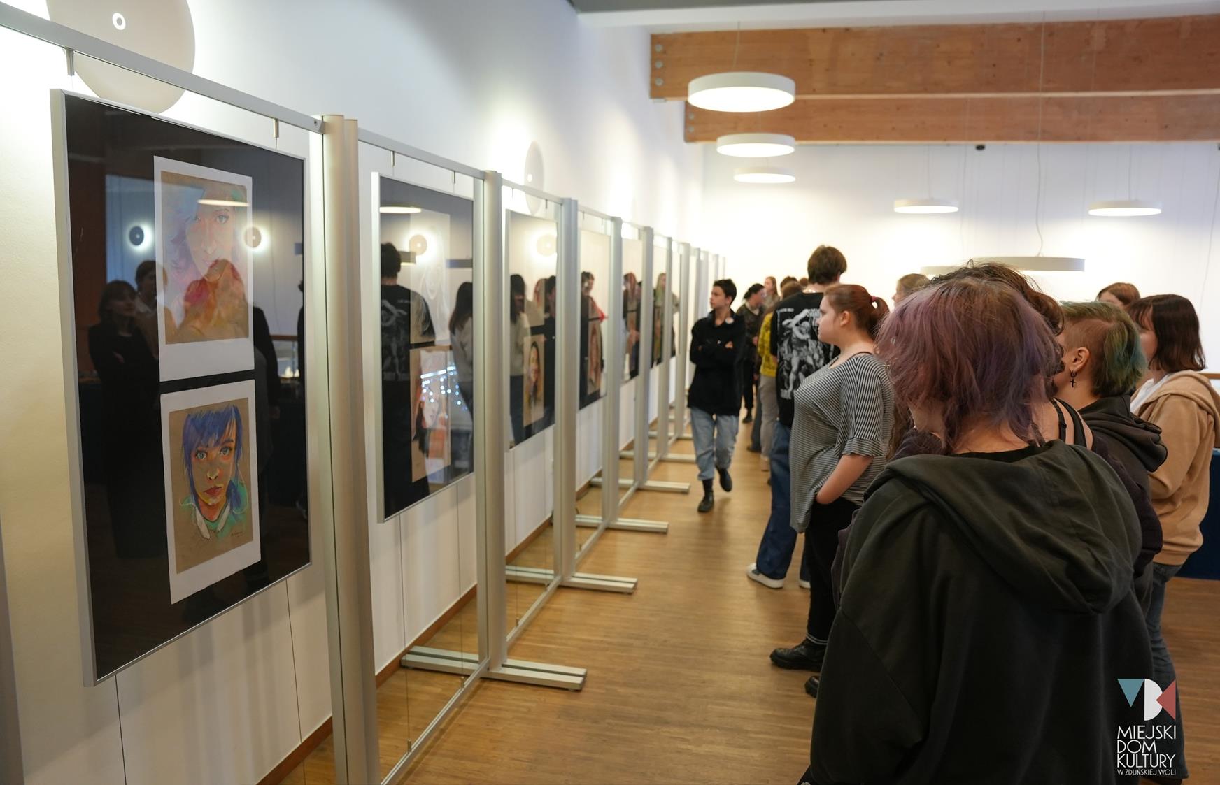 Na wystawie oglądać można ,,Portrety”, wykonane głównie za pomocą suchych pasteli, energetyczne, kolorowe, pełne ekspresji i emocji, tworzone plamą, kreską, oddające charakter portretowanych osób.