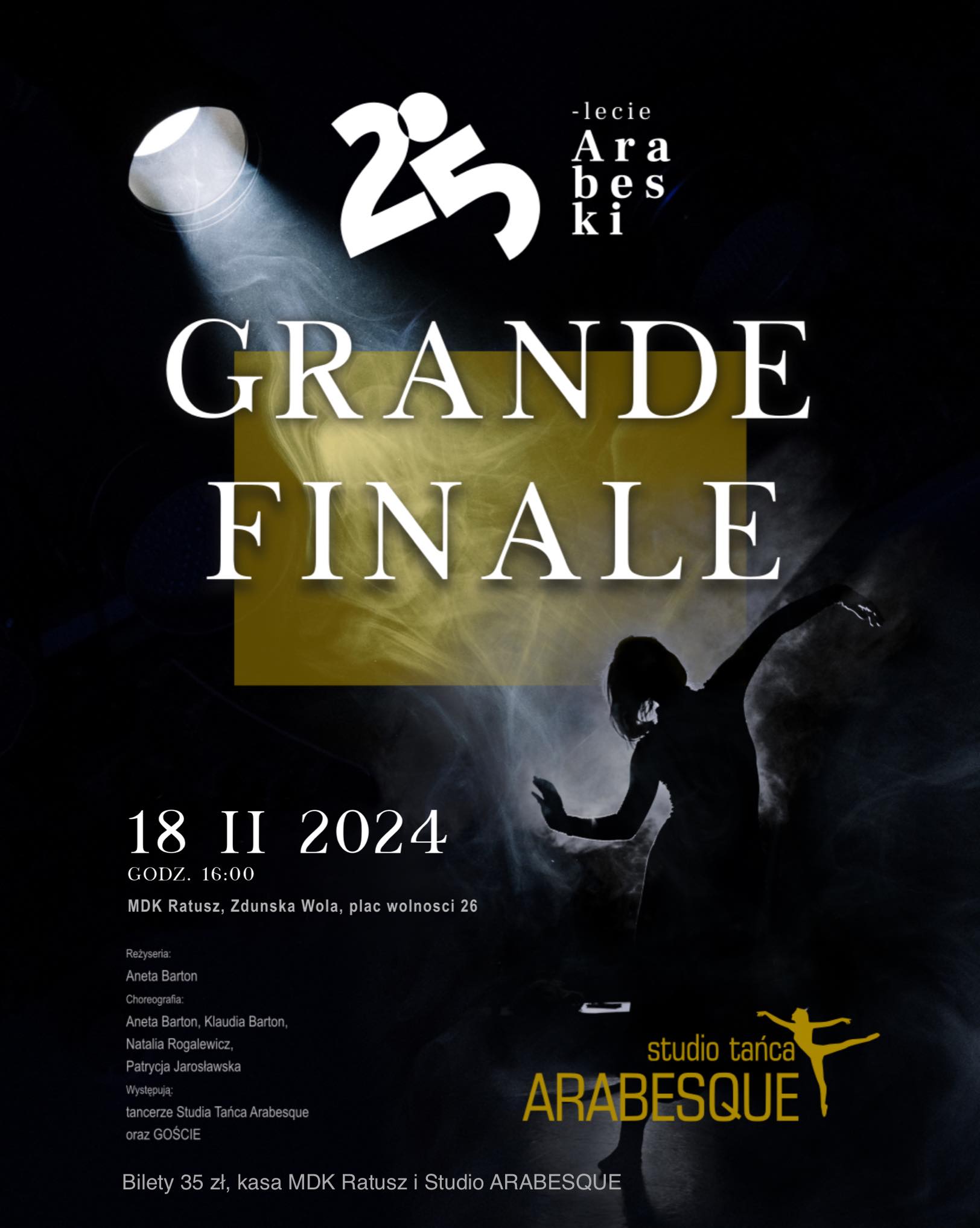 – W programie GRANDE FINALE zatańczymy dla Was zupełnie nowe choreografie, nie zabraknie także uwielbianych przez Was Arabeskowych hitów. Na scenie zaprezentuje się ponad 100 tancerzy. Dodatkowych wrażeń dostarczą Wam wizualizacje oprawione w wyjątkową choreografię do starannie wybranej muzyki. Abyście w pełni mogli poczuć wyjątkowy klimat, przygotowaliśmy dla tancerzy setki cudownych kostiumów – mówi Aneta Barton, choreografka, właścicielka Studia Tańca ARABESQUE .
