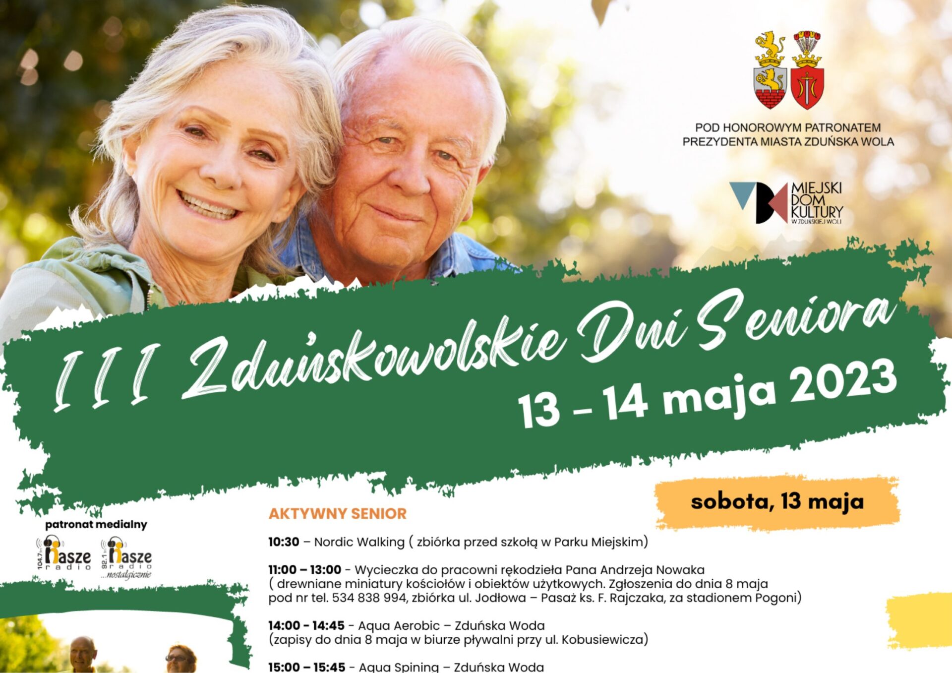 Zduńskowolskie Dni Seniora rozpoczną się 13 maja (sobota) od aktywności sportowych. Będą zajęcia nordic walking, aqua aerobic i wycieczka do pracowni Andrzeja Nowaka. Na wydarzenia zapraszamy wspólnie z kompleksem basenowym Zduńska Woda.