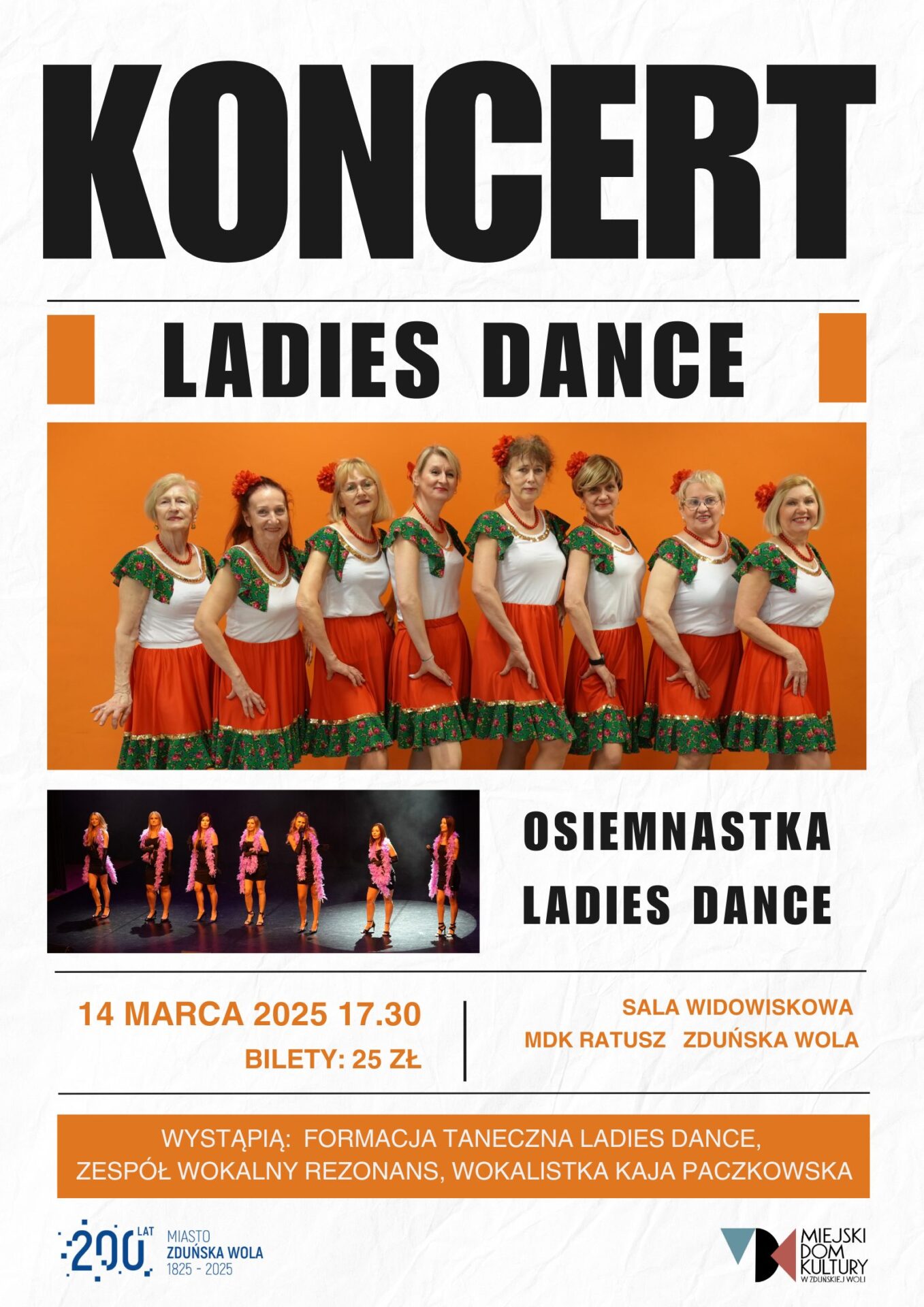 Zespół Ladies Dance powstał w 2007 r. z inicjatywy Haliny Hesse (dyrygentki chóru ,,Złota Jasień ” ) i Lubomiły Chmielewskiej-Szymczak. Początkowo grupa spotykała się na zasadzie zajęć ruchowo-tanecznych. Z czasem przeobraziła się w zespół. Do zespołu na początku należało 20 pań, ale niektóre z powodu wieku, stanu zdrowia odeszły i przez te wszystkie lata skład wielokrotnie się zmieniał. Obecnie formacja liczy 8 pań. Choreografem prawie wszystkich tańców jest nasza kochana Lusia. Od września 2024 grupę prowadzi jedna z pań tańczących w zespole – Katarzyna Jasek.