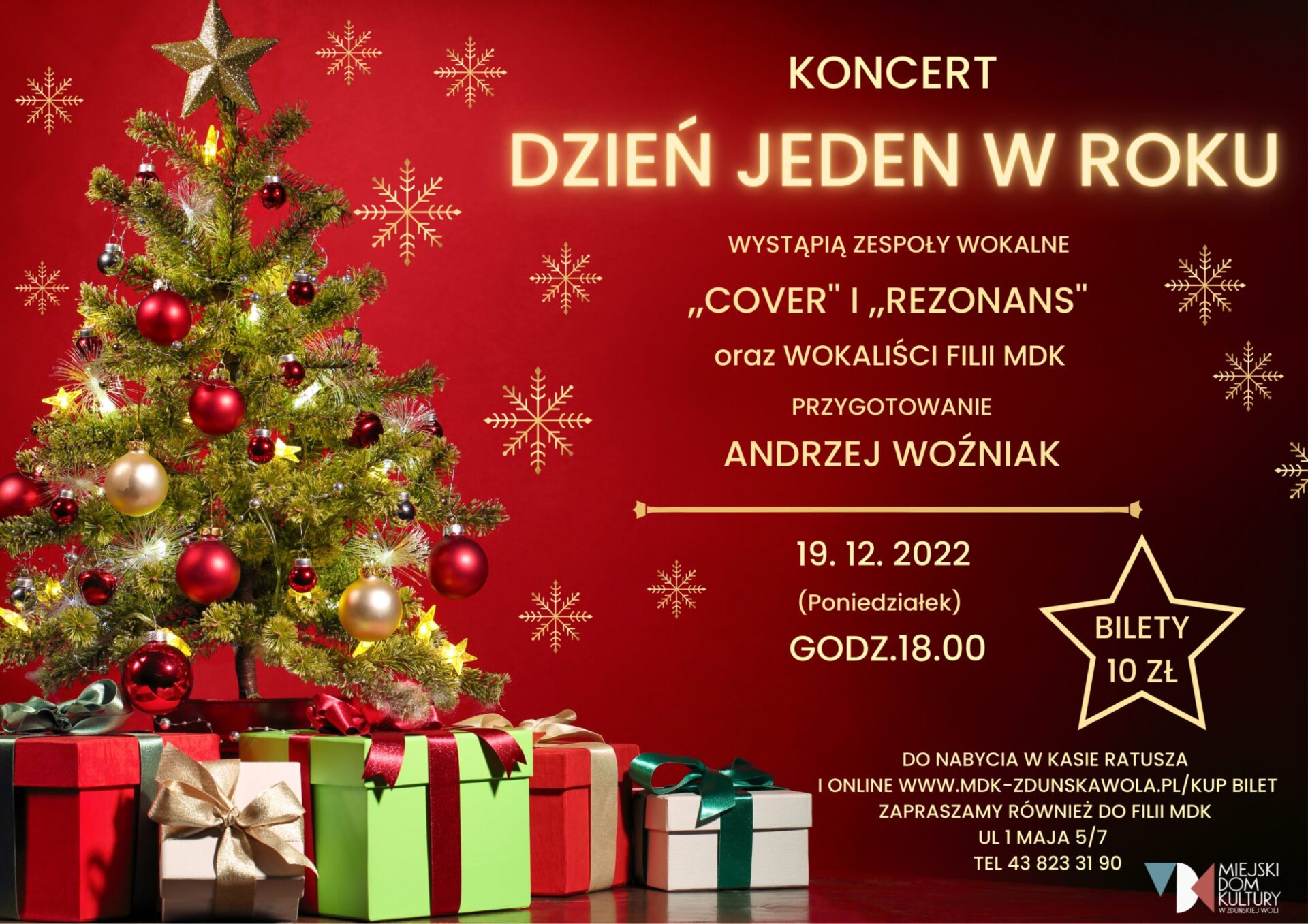 Jeśli chcielibyście na chwilę przed świętami zaznać bożonarodzeniowej, rodzinnej atmosfery, zapraszamy na koncert „Dzień jeden w roku”.
