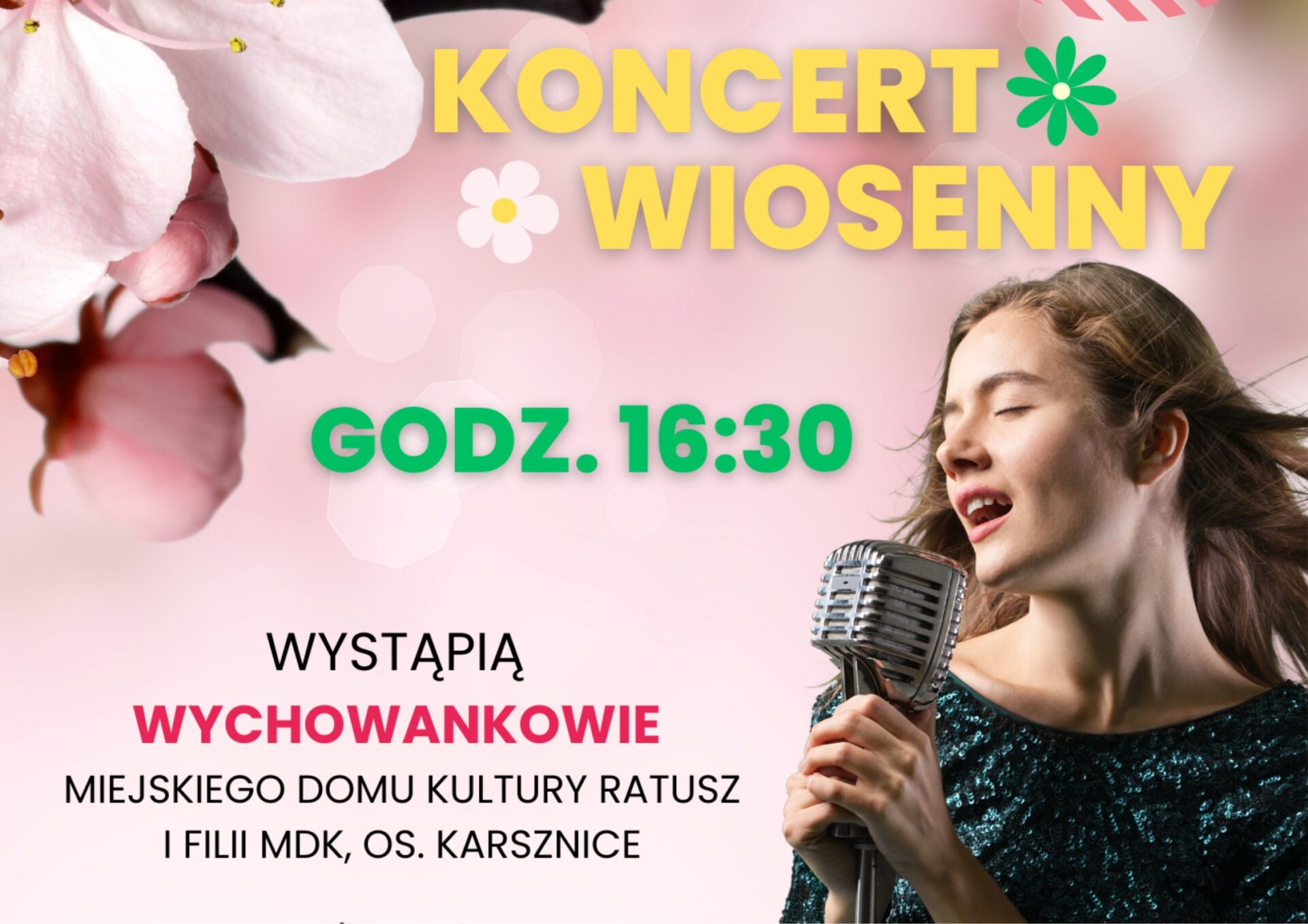 Zapraszamy na koncert z udziałem wychowanków MDK Ratusz i Filii MDK, os. Karsznice – 27 kwietnia, godz. 16:30.