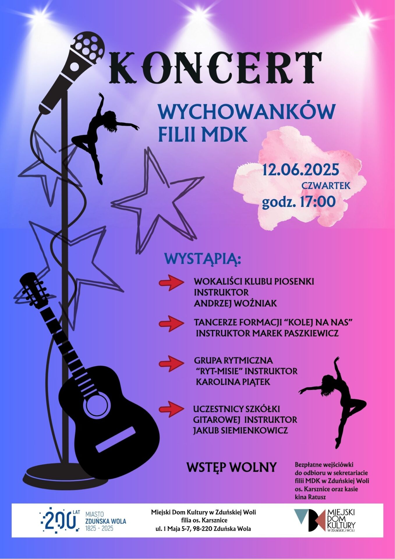 Zapraszamy na koncert uczestników zajęć artystycznych prowadzonych przez instruktorów: