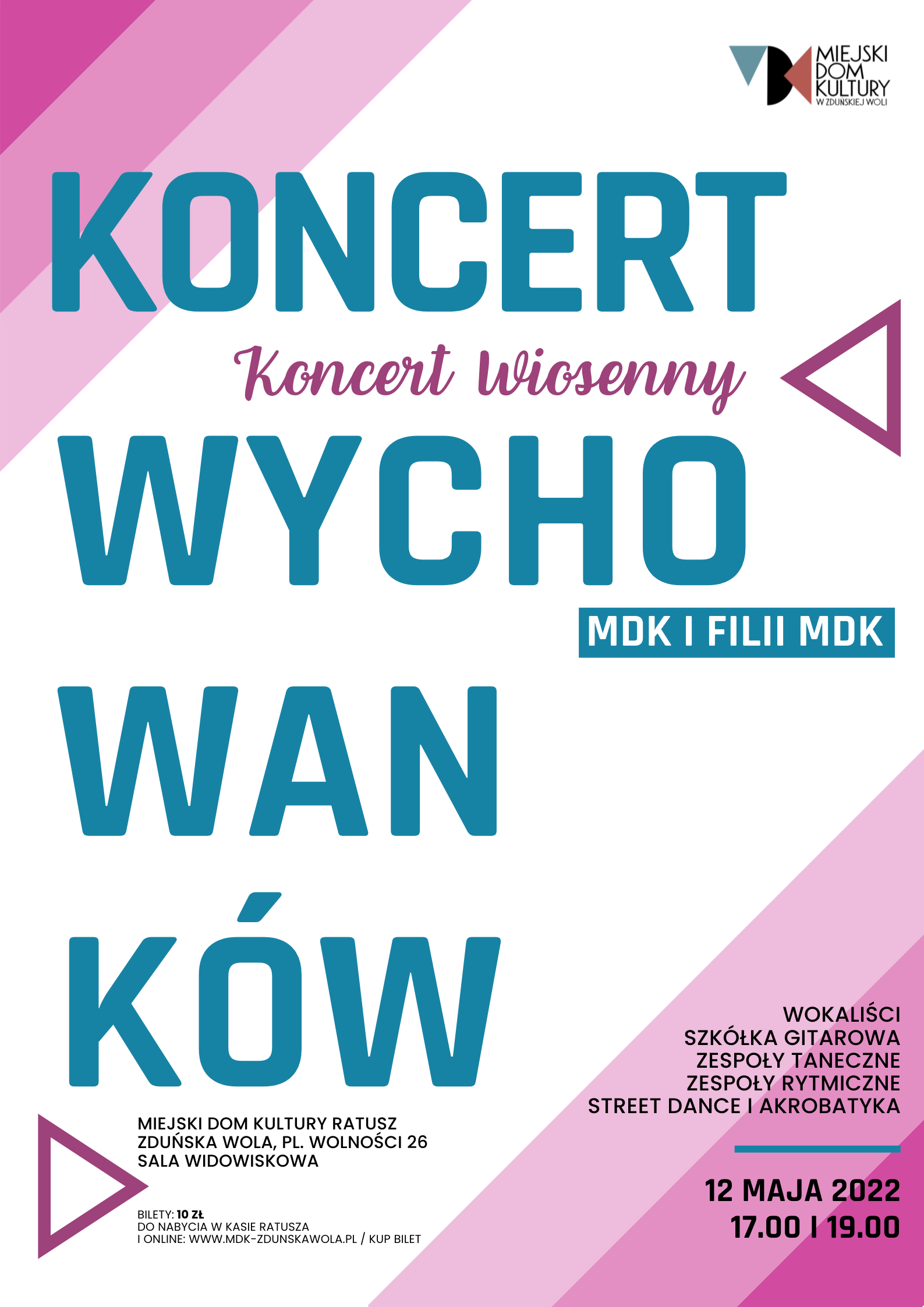 Zapraszamy na dwa koncerty wychowanków naszego domu kultury, 12 maja o godzinie 17.00 i 19.00.