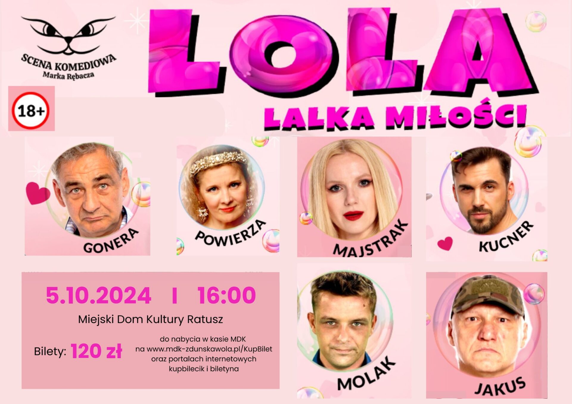 „Lola” to najnowsza komedia Marka Rębacza, autora wielu teatralnych przebojów (Dwie morgi utrapienia czyli Zróbmy sobie wnuka, Atrakcyjny pozna panią, Wieruszka, Ciemno, Jaskiniowcy, Basia sama w domu i inne). Ta nowa produkcja niesie jeszcze jeden zaskakujący i zupełnie nowy w teatrze element: jest eksperymentalnym połączeniem dwóch scenicznych form – spektaklu i stand-upu.