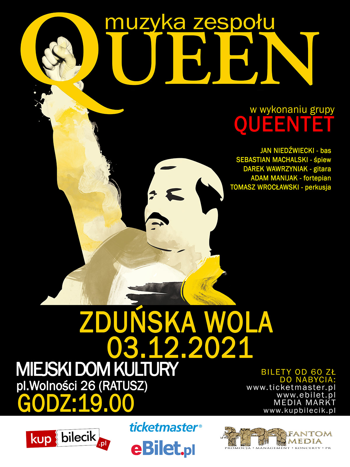 Skład 5-osobowej grupy ,,Queentet” tworzą muzycy, którzy od 10 lat lat wykonują piosenki ,,Queen” z towarzyszeniem orkiestry symfonicznej. Jest to gwarancja rozrywki na najwyższym poziomie przy kompozycjach, które na stałe weszły do kanonu rocka.