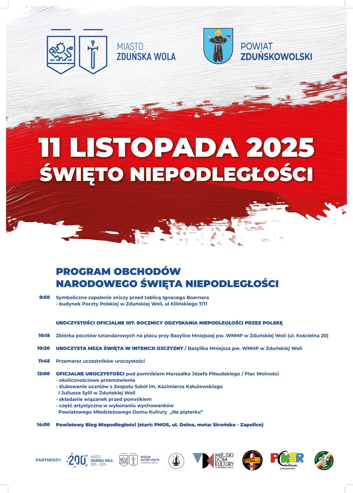 Godz. 14 – rozpoczęcie XI Powiatowego Biegu Niepodległości na dystansie 10 km. Start Powiatowego Międzyszkolnego Ośrodka Sportowego przy ulicy Dolnej 41 w Zduńskiej Woli. Meta przy cmentarzu w Strońsku.