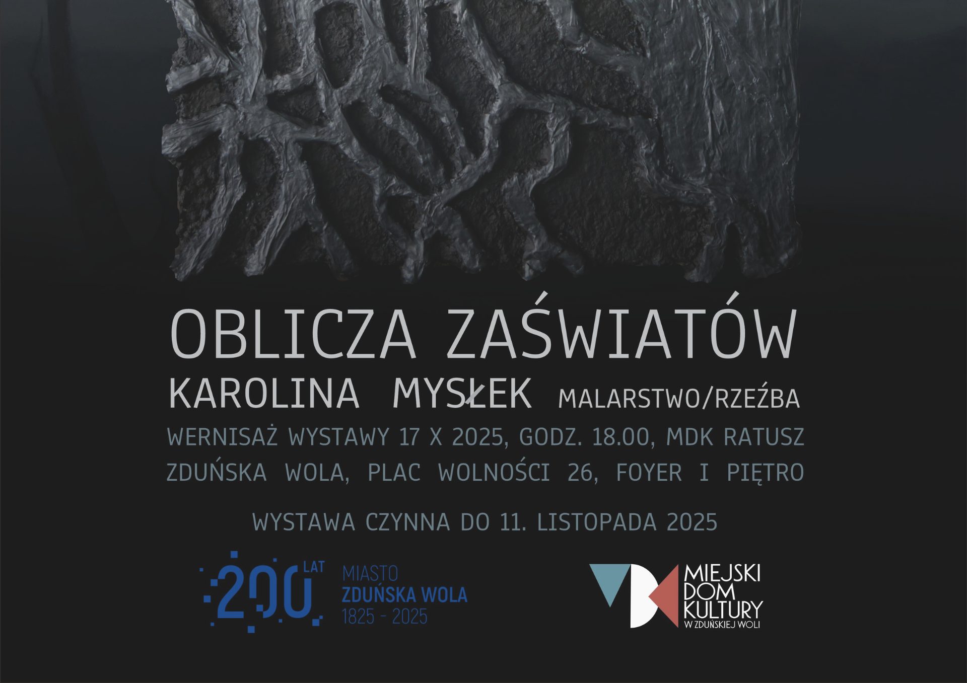 Na wernisaż Karoliny Mysłek pt. „Oblicza zaświatów” zapraszamy 17 października o godz. 18.00, foyer MDK Ratusz, I piętro.