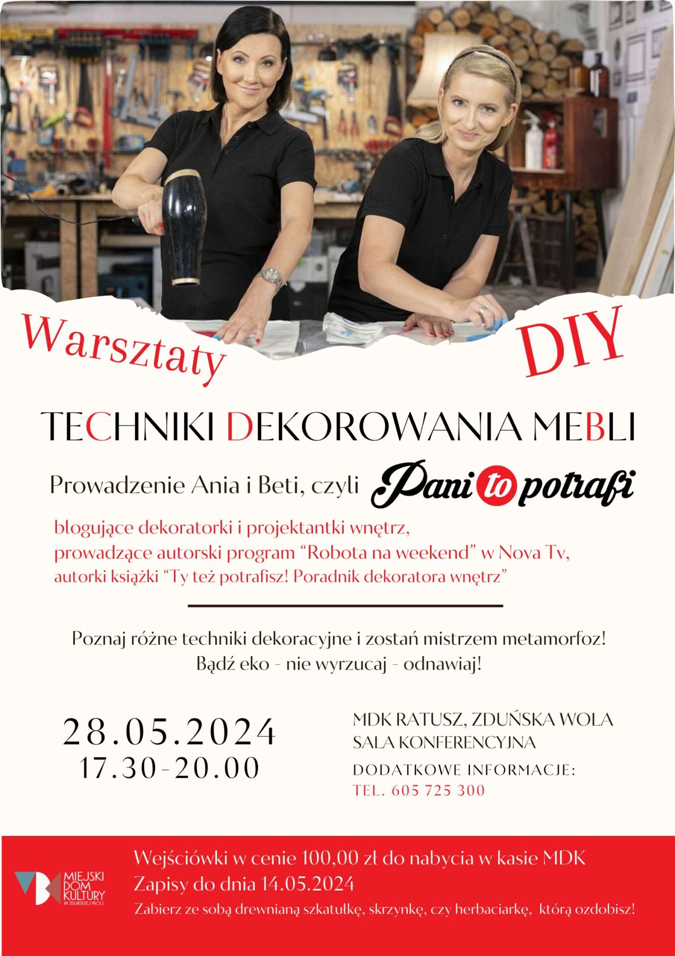 Warsztaty odbędą się 28 maja (wtorek) w godz. 17.30 – 20.00 w sali konferencyjnej MDK Ratusz.