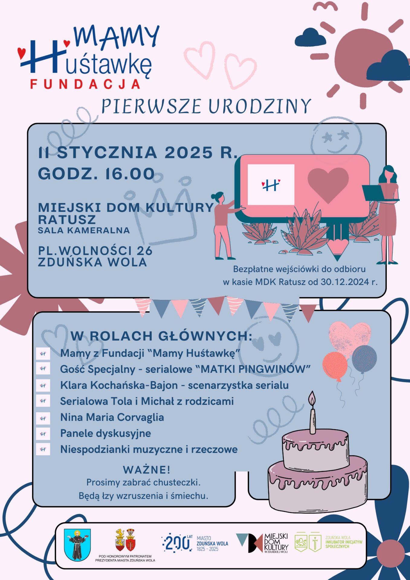 Magda Kołodziejska i Kasia Siuta, założycielki FUNDACJI „MAMY Huśtawkę” pragną świętować jej pierwszo-drugie urodziny w Waszym wspaniałym towarzystwie.